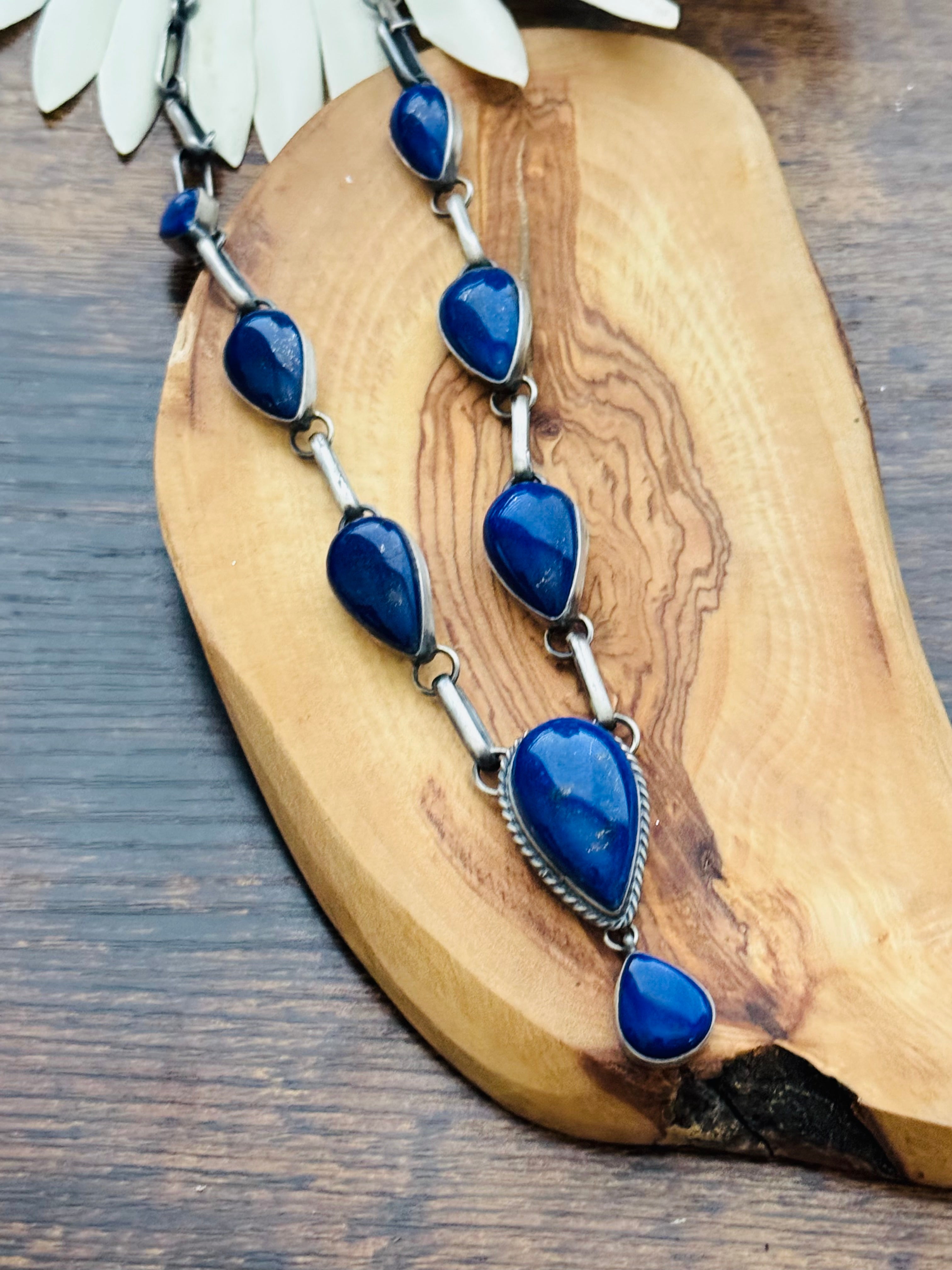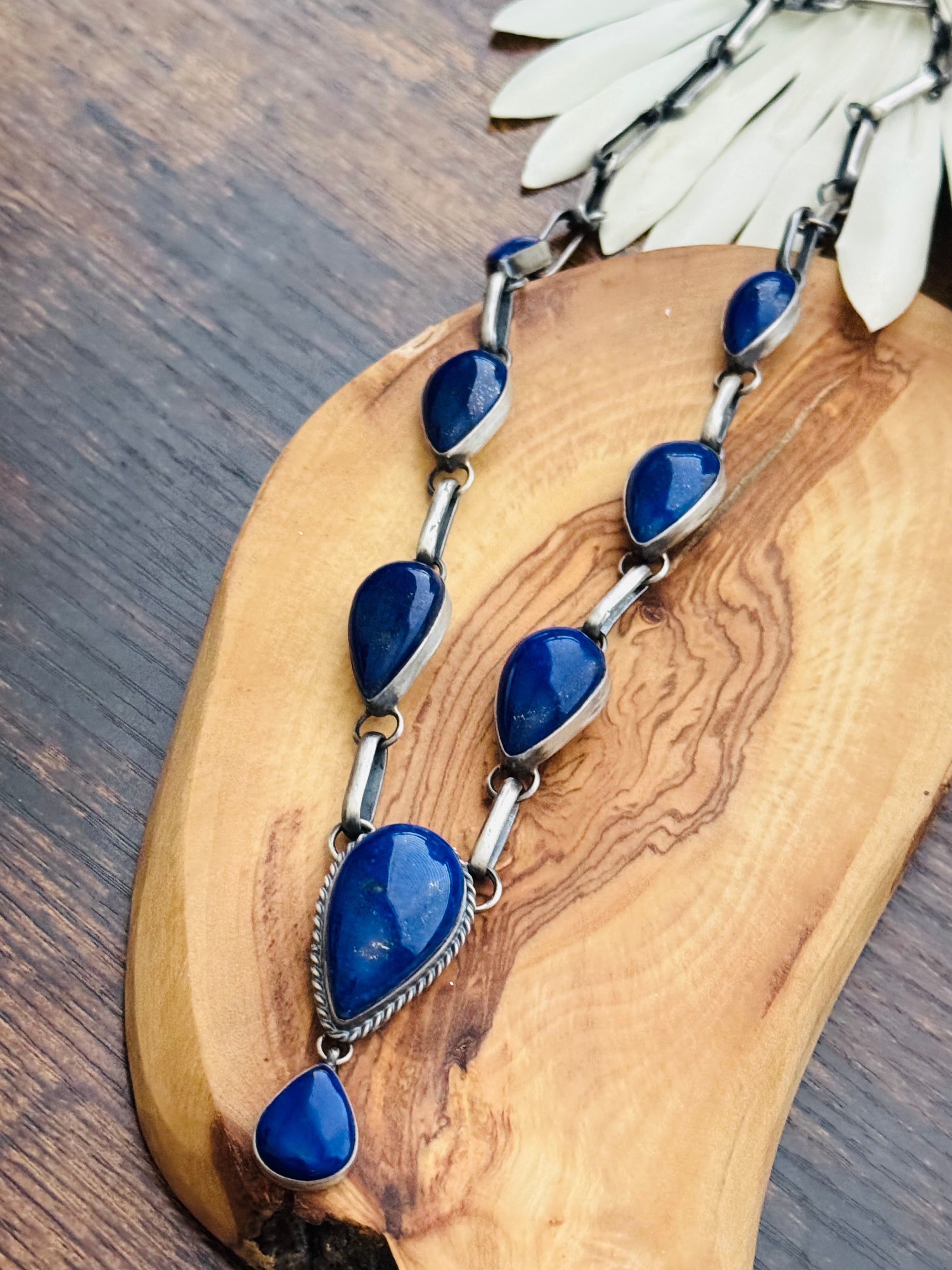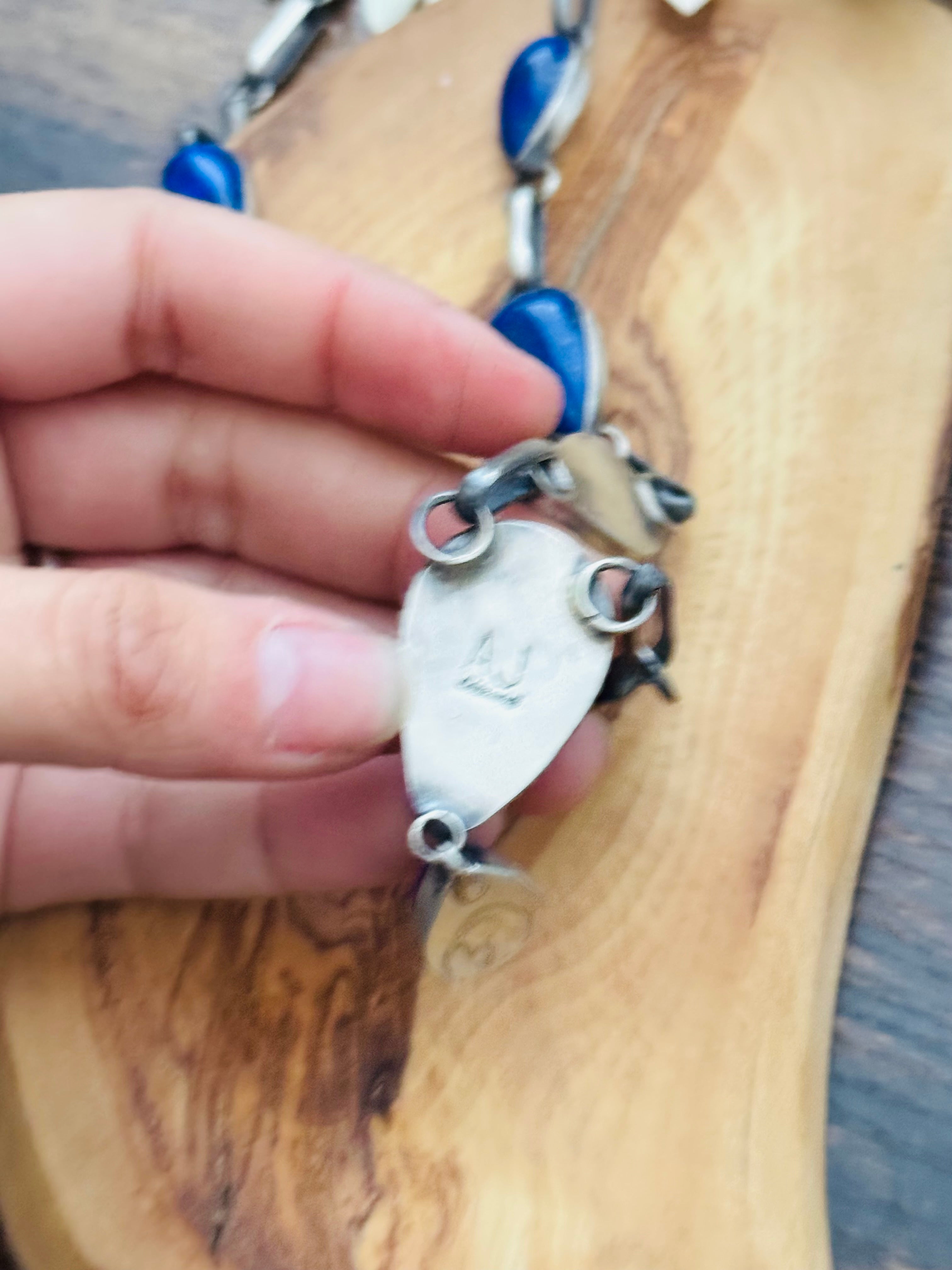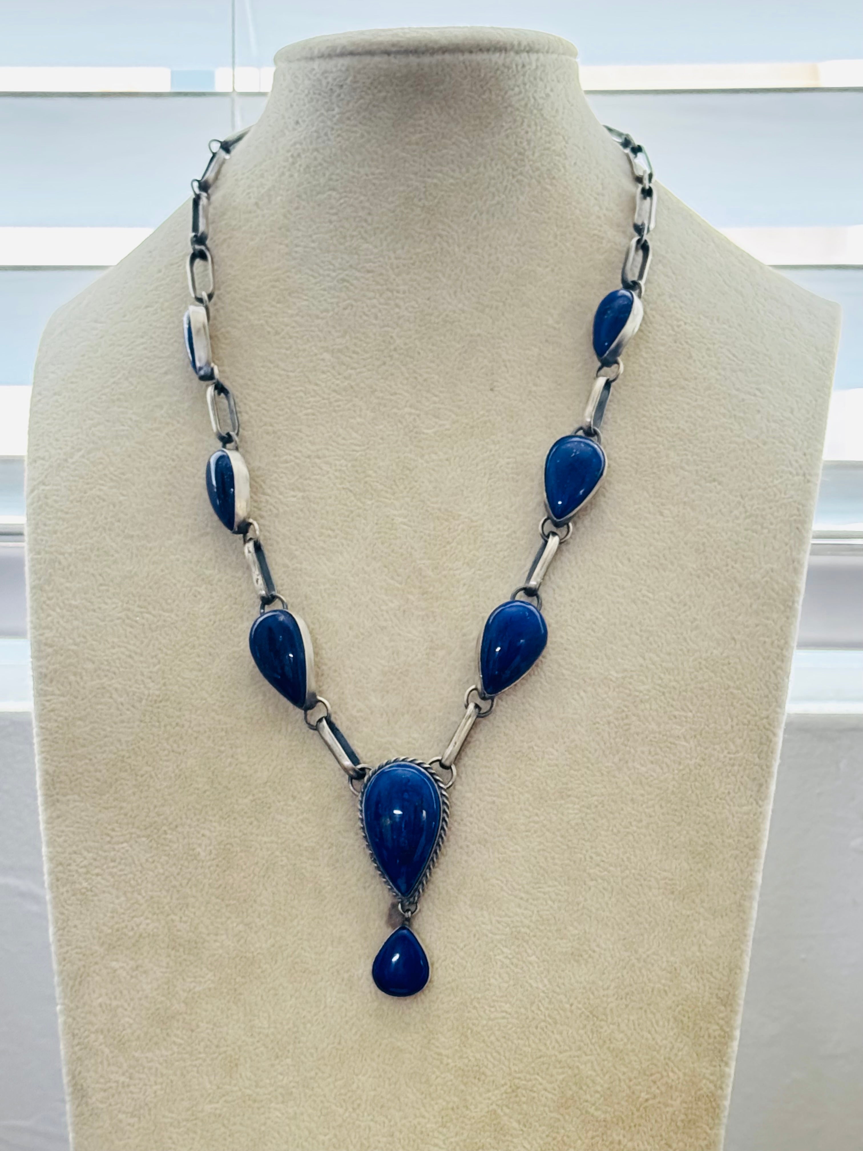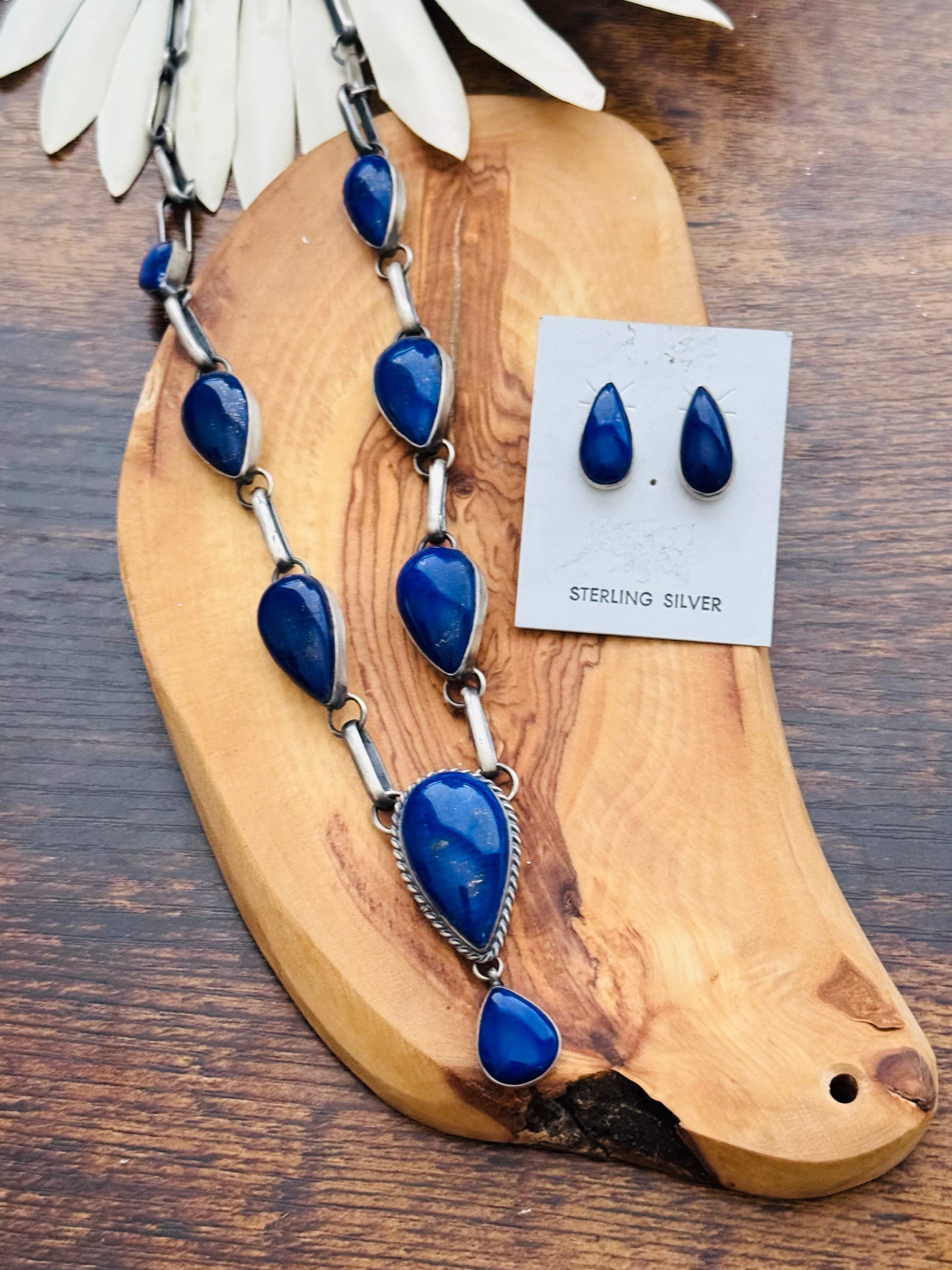 Navajo Made Lapis & Sterling Silver Necklace Set