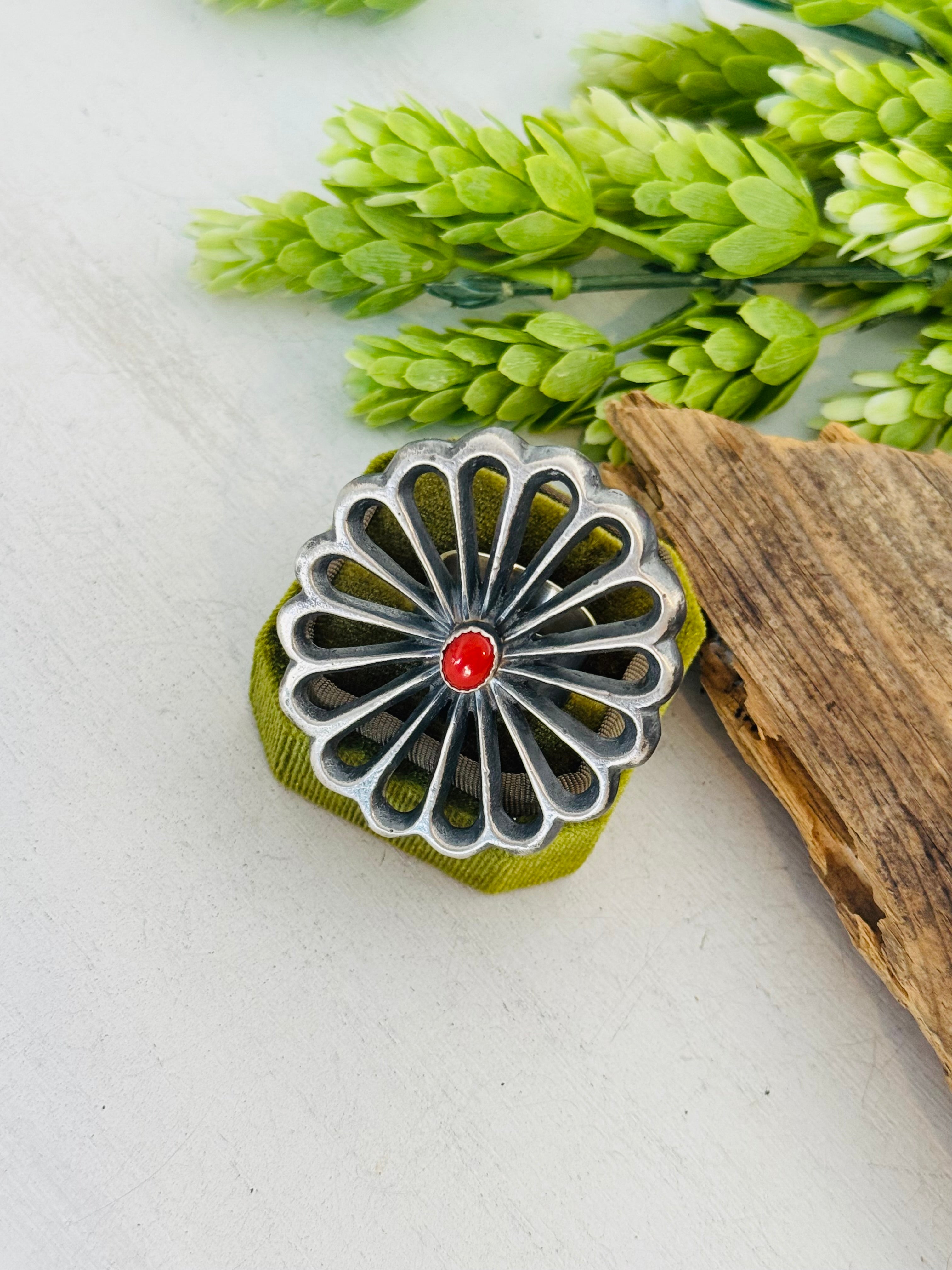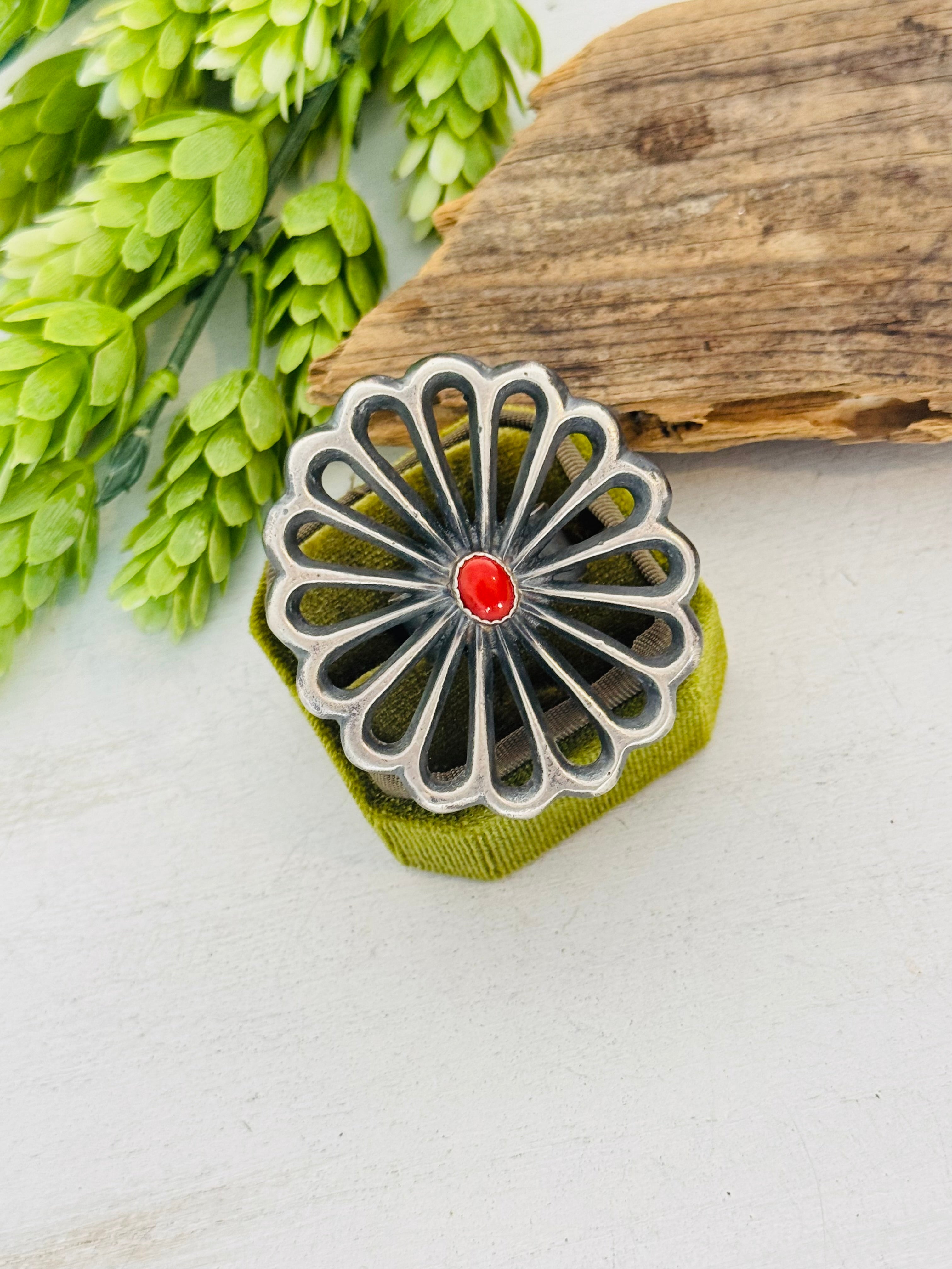 Navajo Made Mediterranean Coral & Sterling Sliver Adjustable Ring