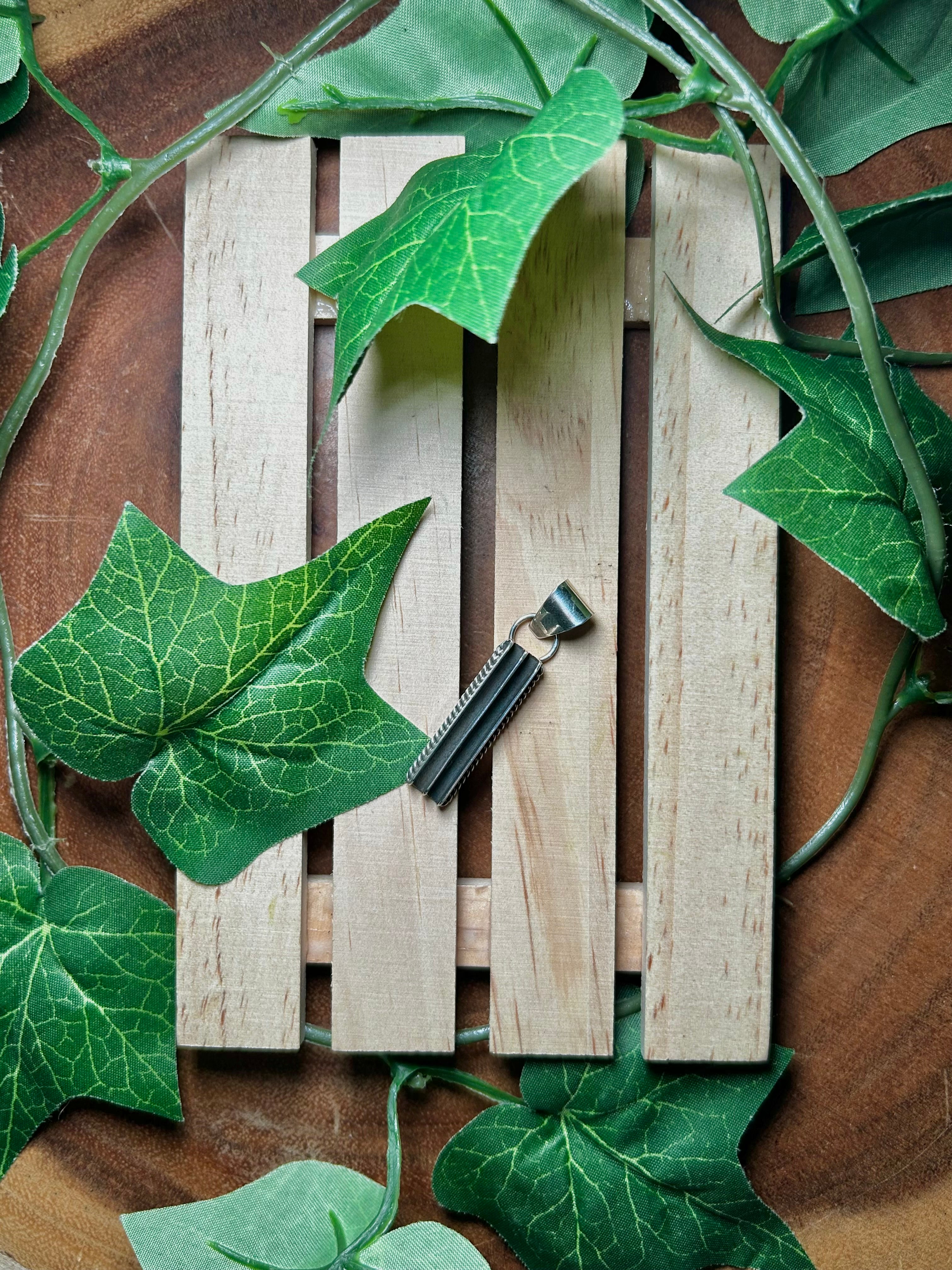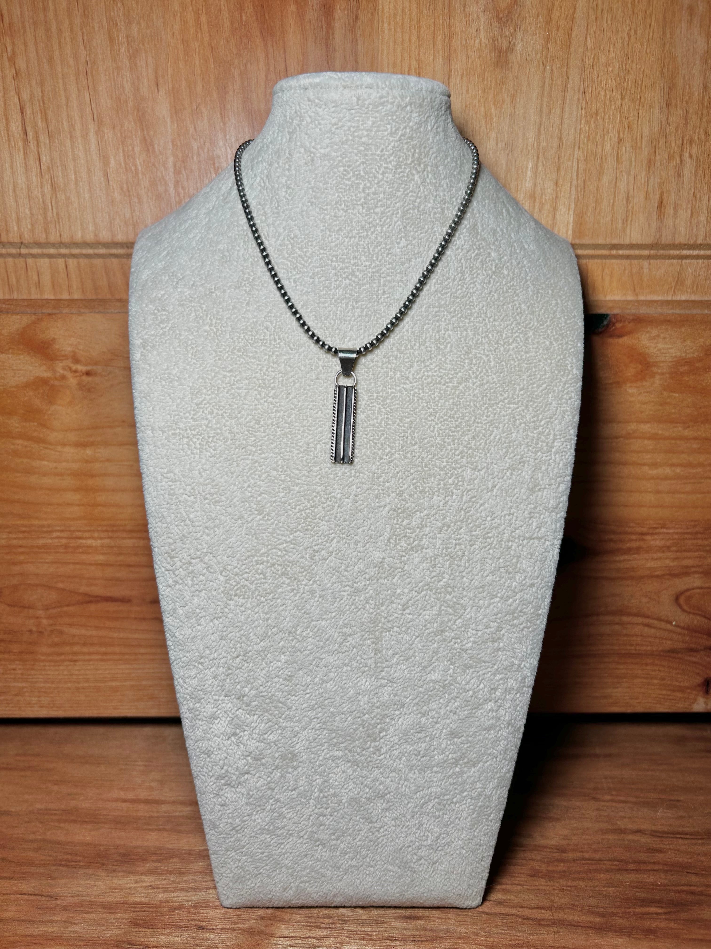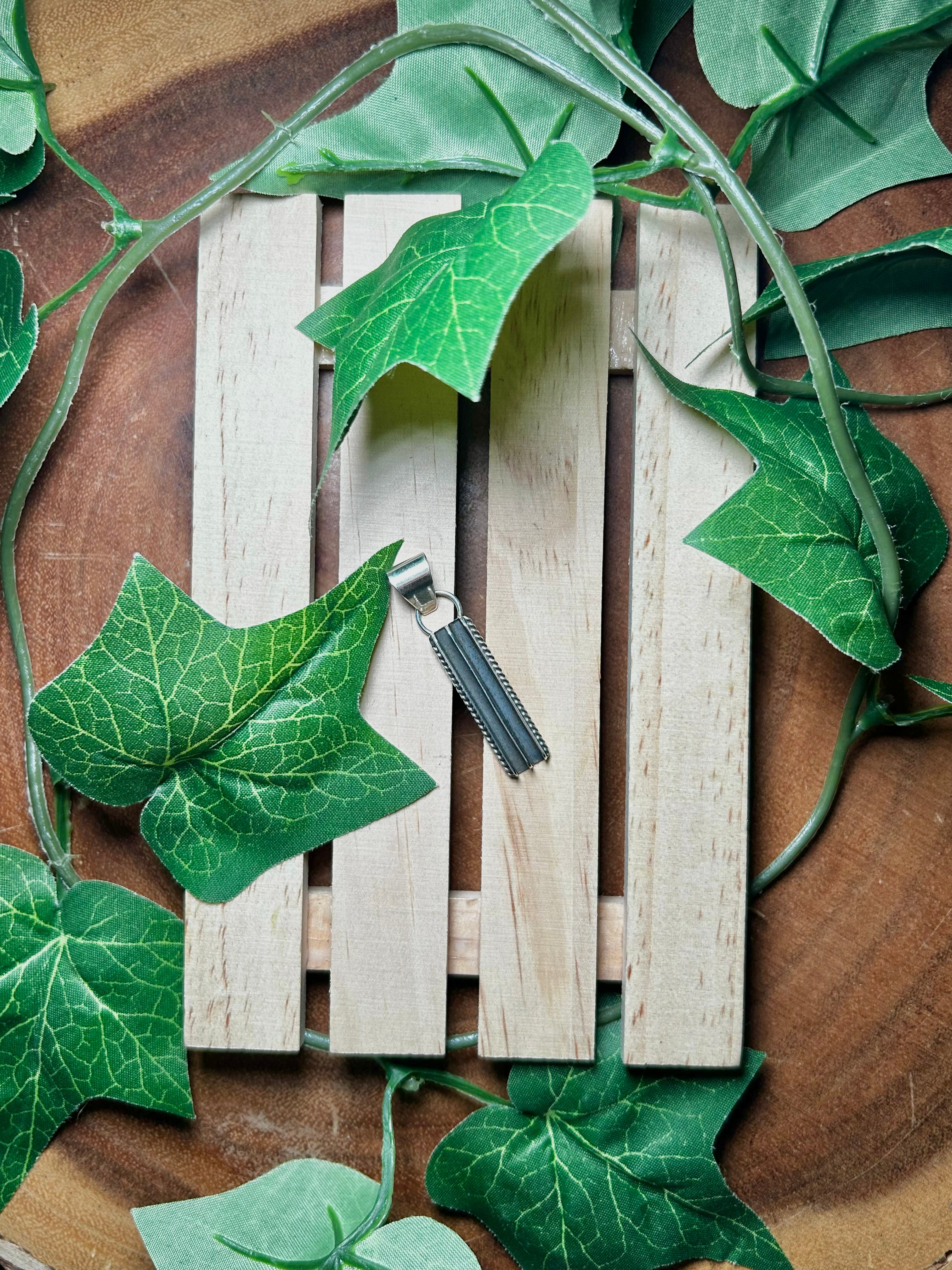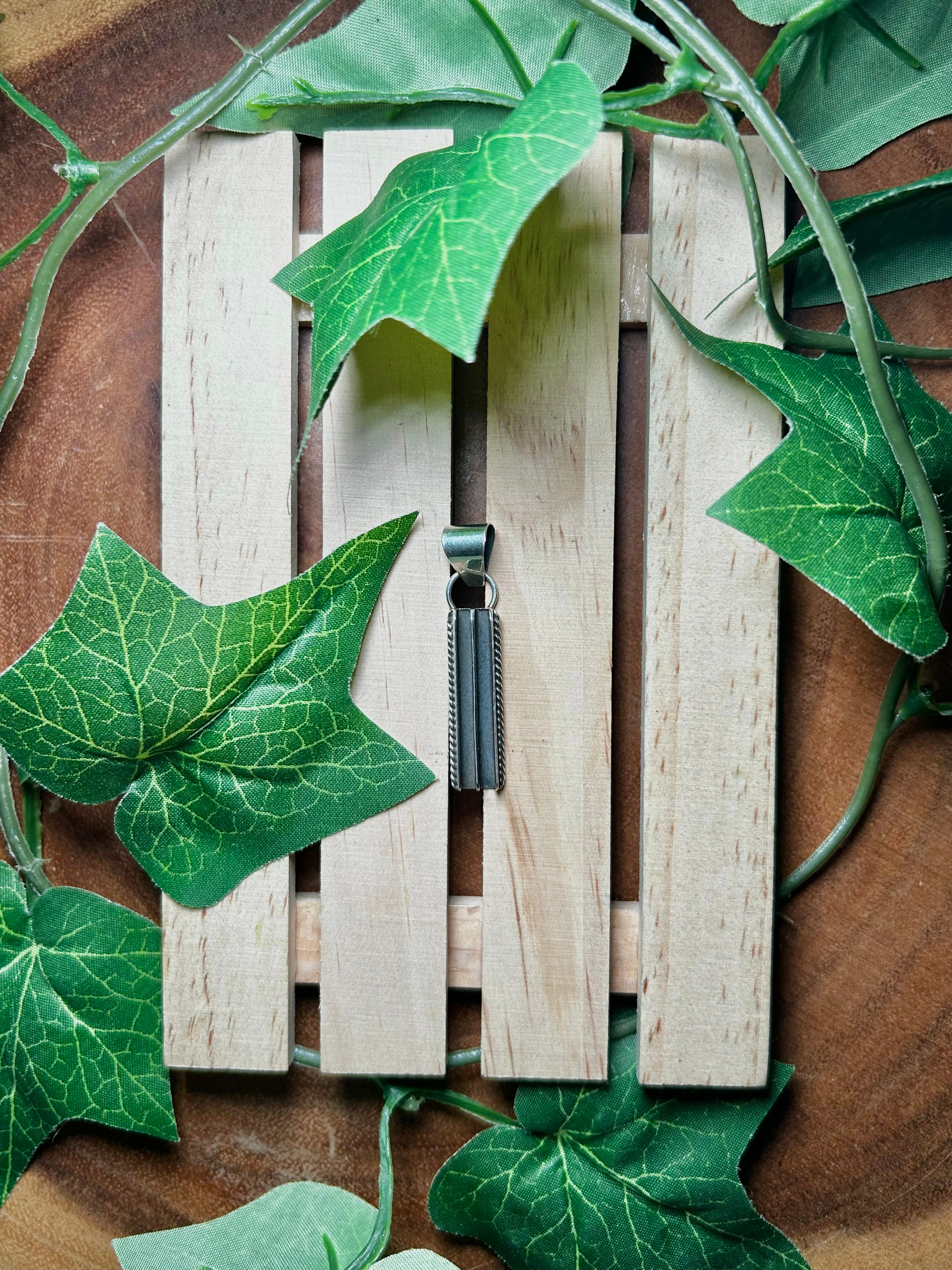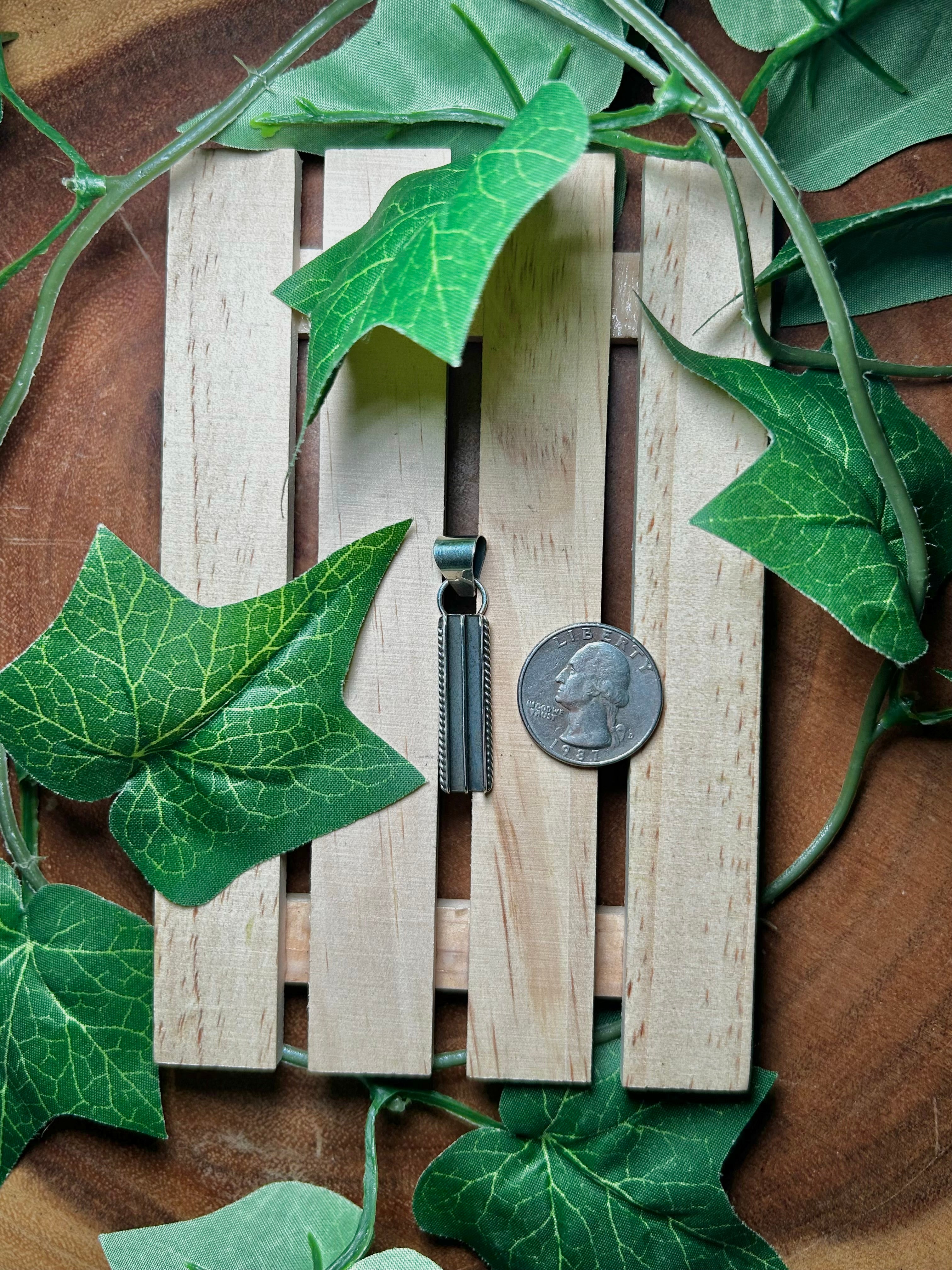 Navajo Made Sterling Silver Pendant. It measures 1 3/4 inches long and 3/8 of an inch wide. Pendant Only!! Signed by the artist and stamped sterling silver.