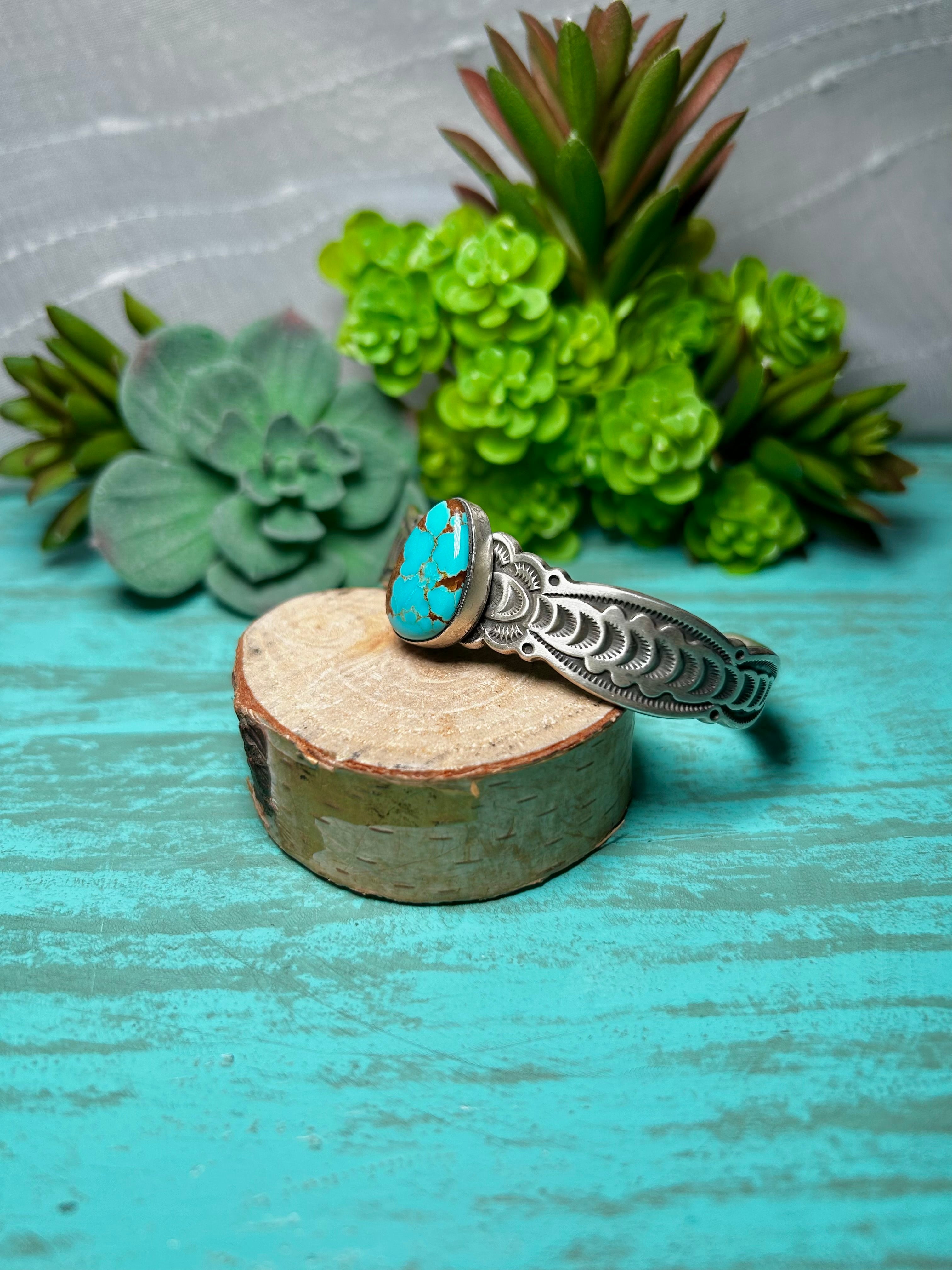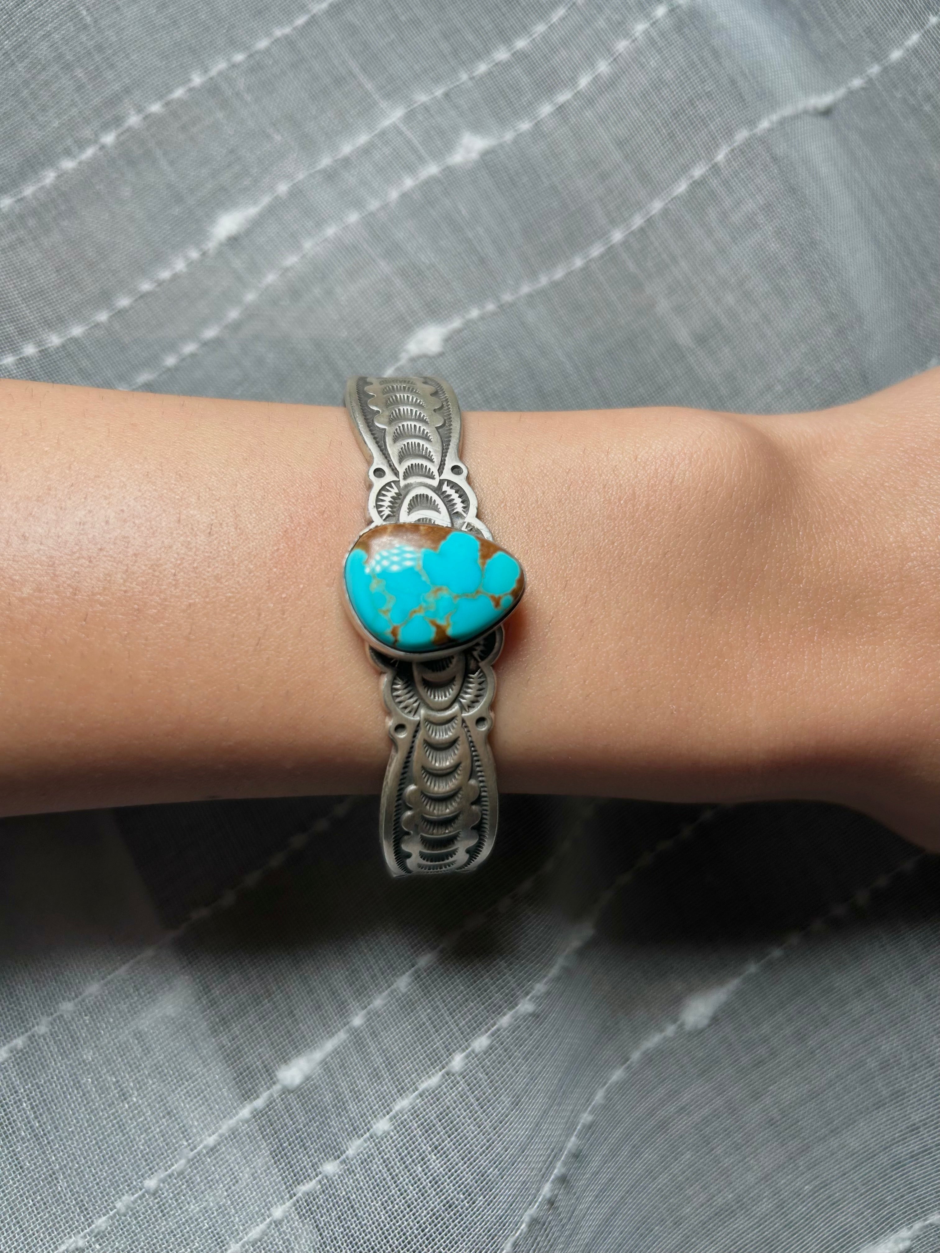 Navajo Made Kingman Turquoise & Sterling Silver Cuff Bracelet