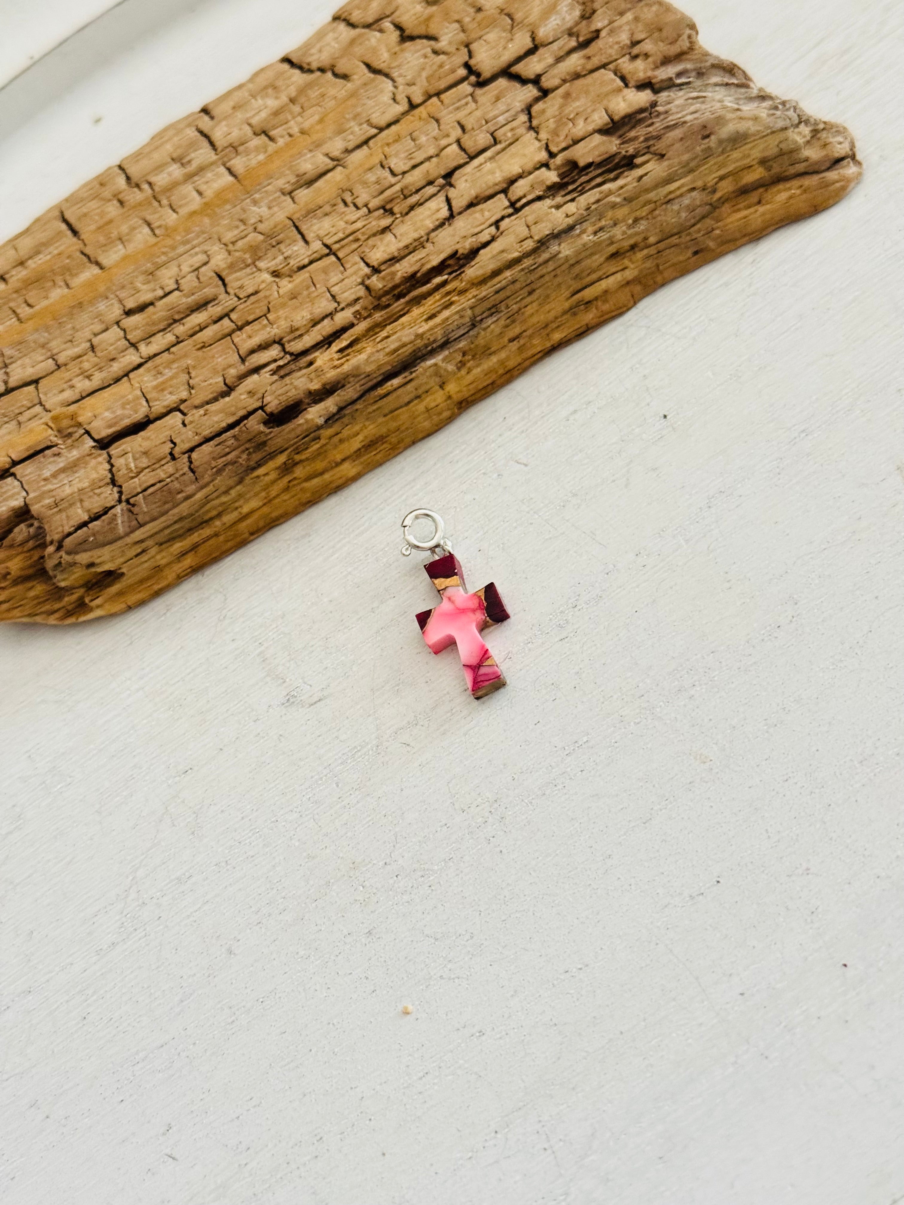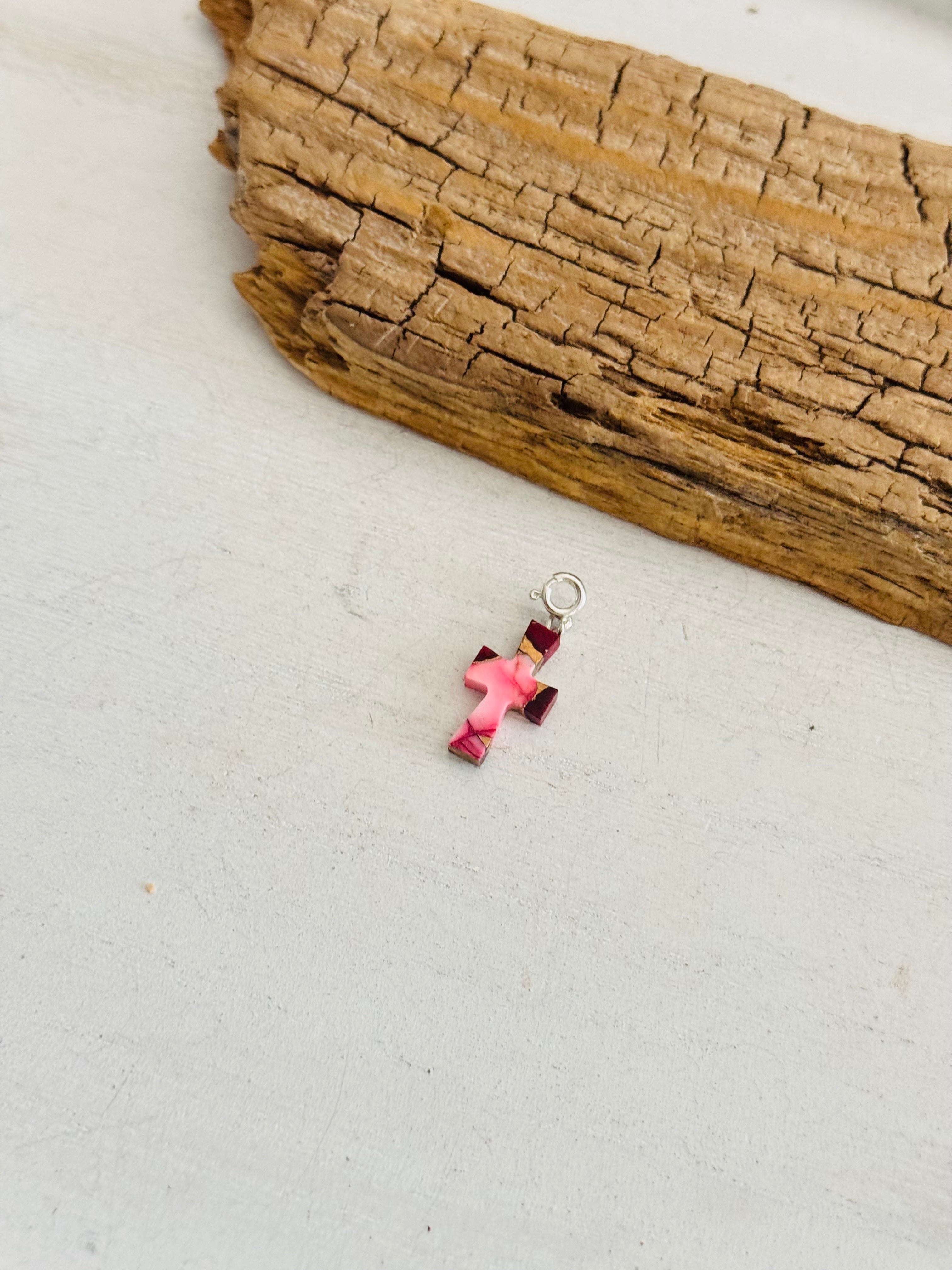 Navajo Made Rose Dahlia & Sterling Silver Cross Charms