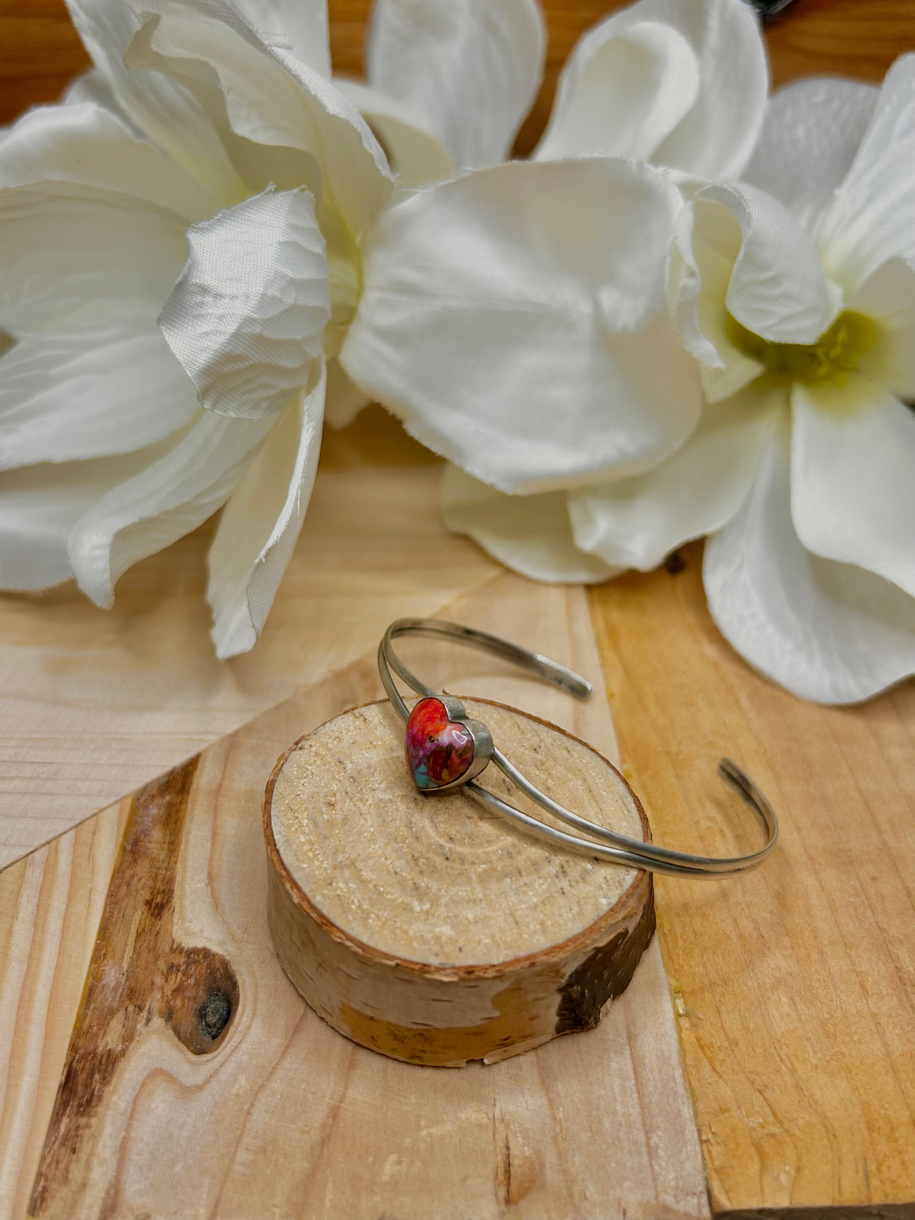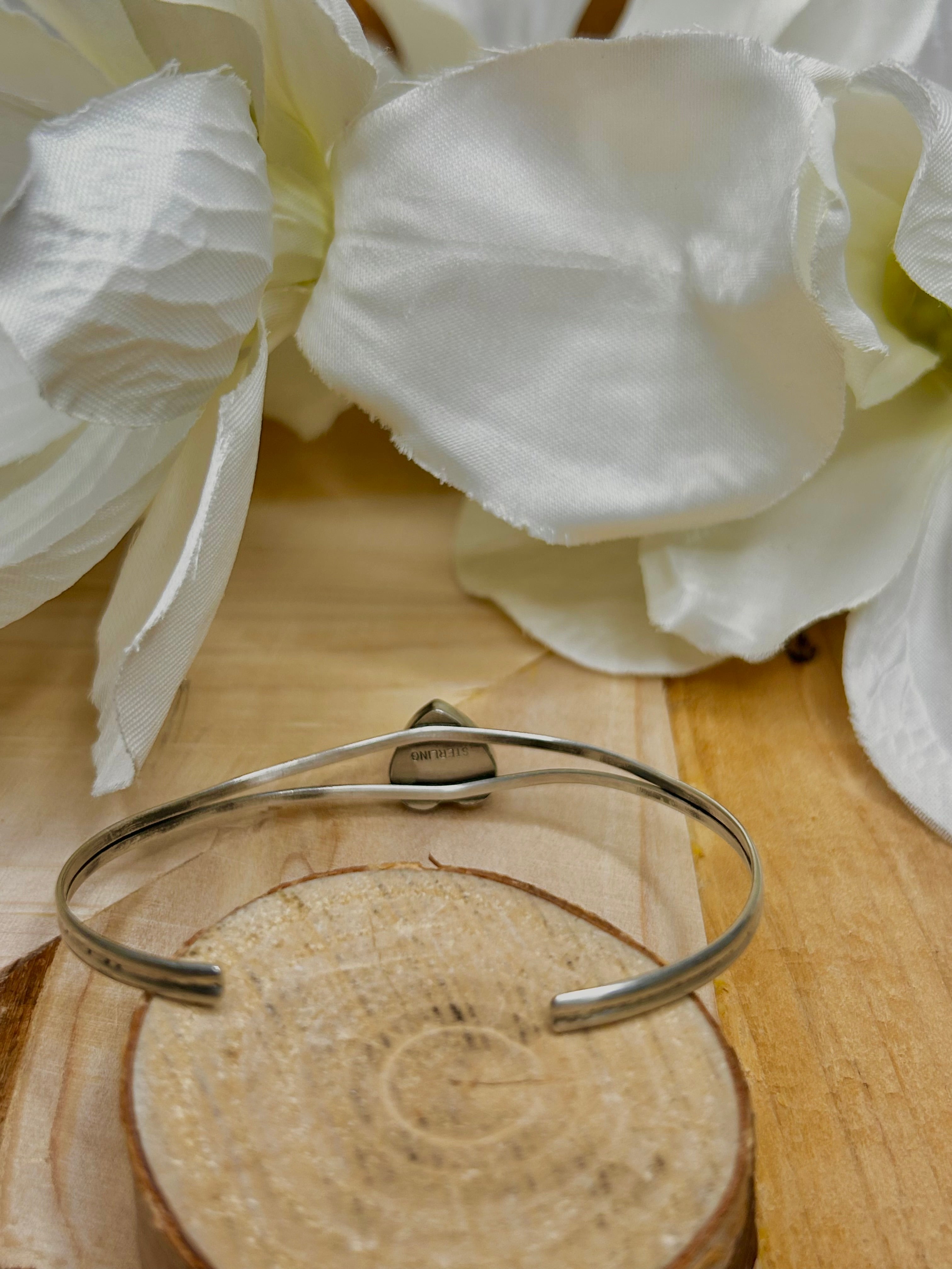 Navajo Made Mohave Turquoise & Sterling Silver Cuff Bracelet. It measures 1/2 of a wide with an inside circumference of 6 inches and a gap of 1 1/8 inch. Signed by the artist and stamped sterling silver.
