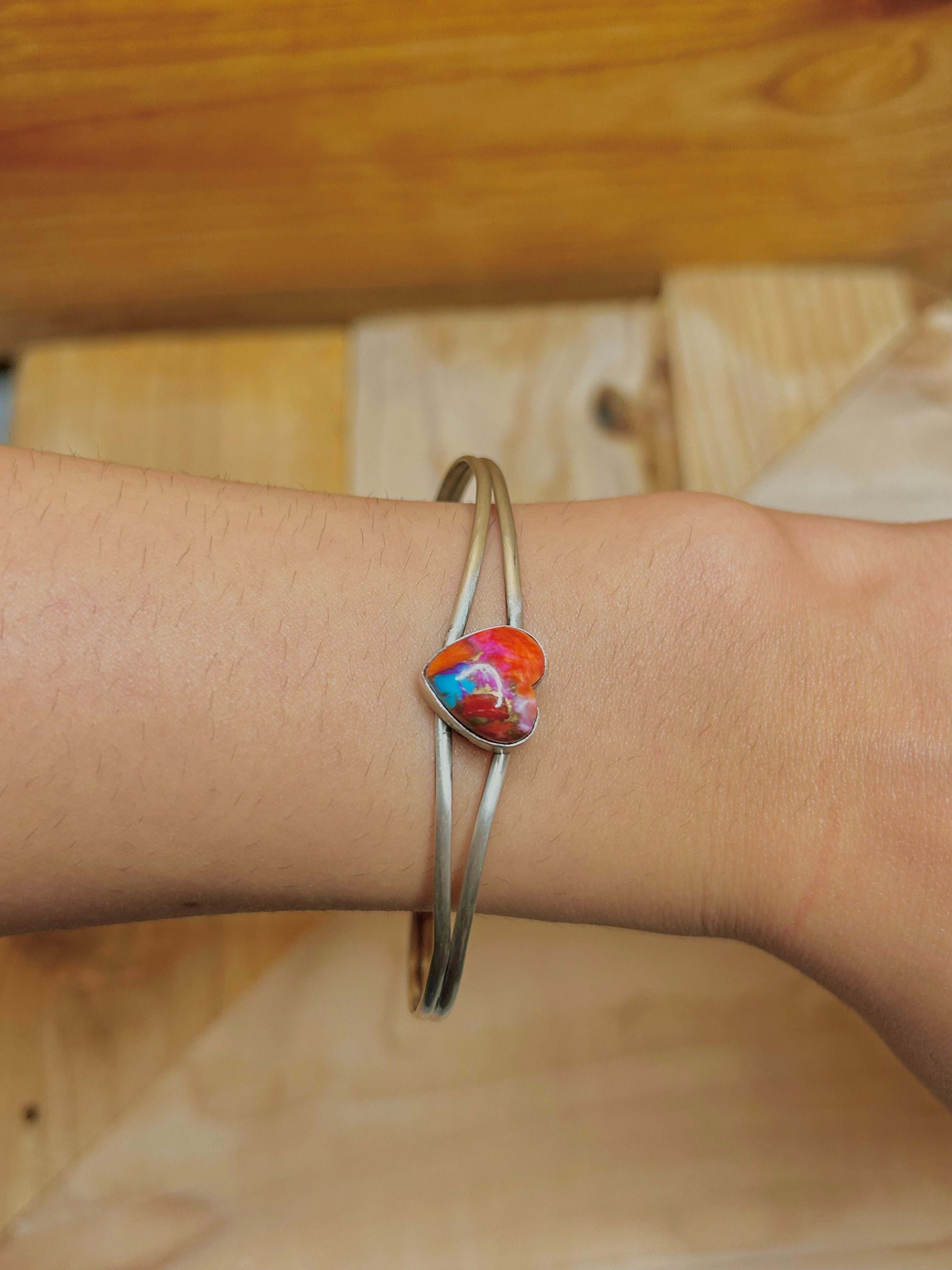 Navajo Made Mohave Turquoise & Sterling Silver Cuff Bracelet
