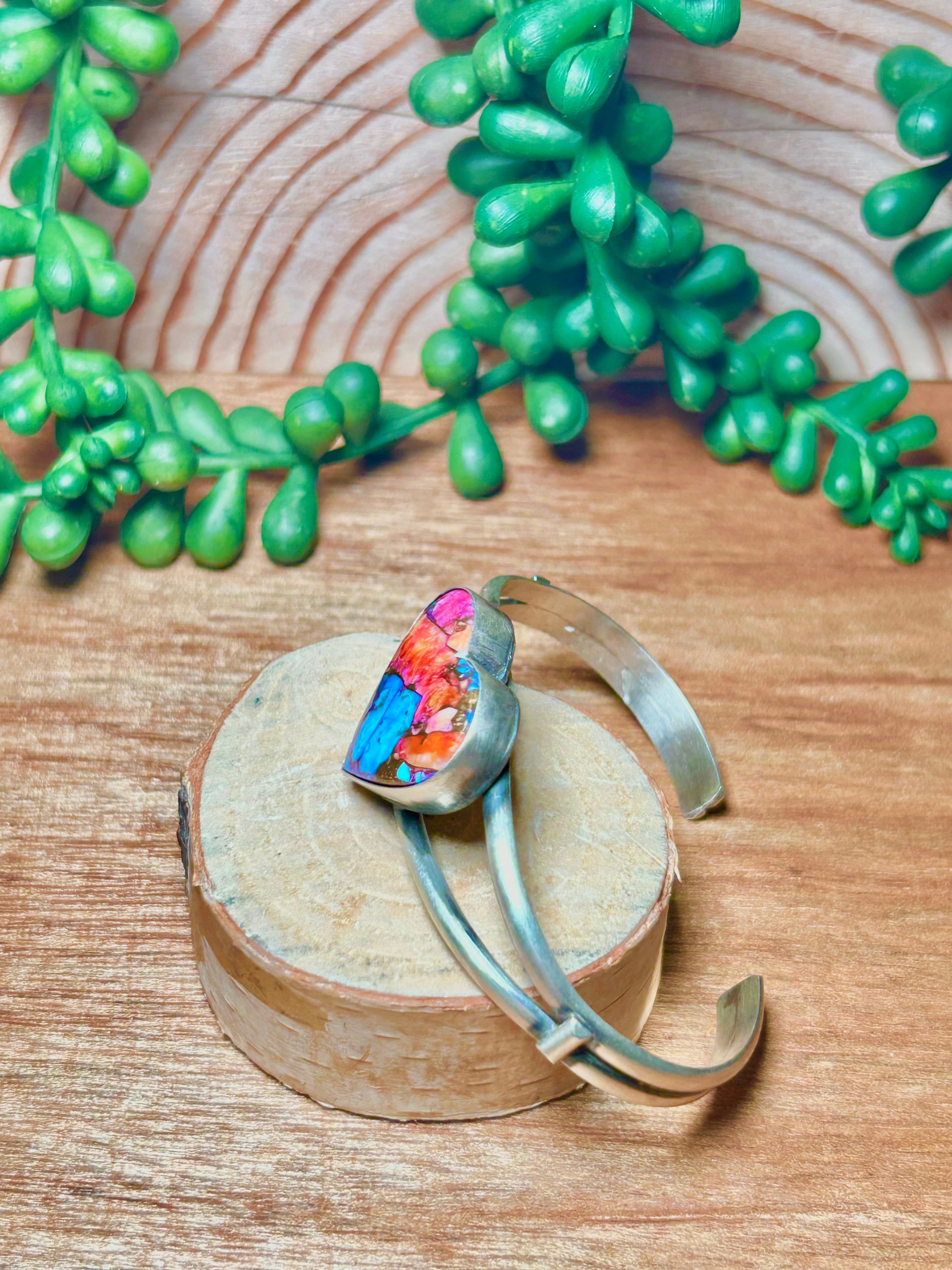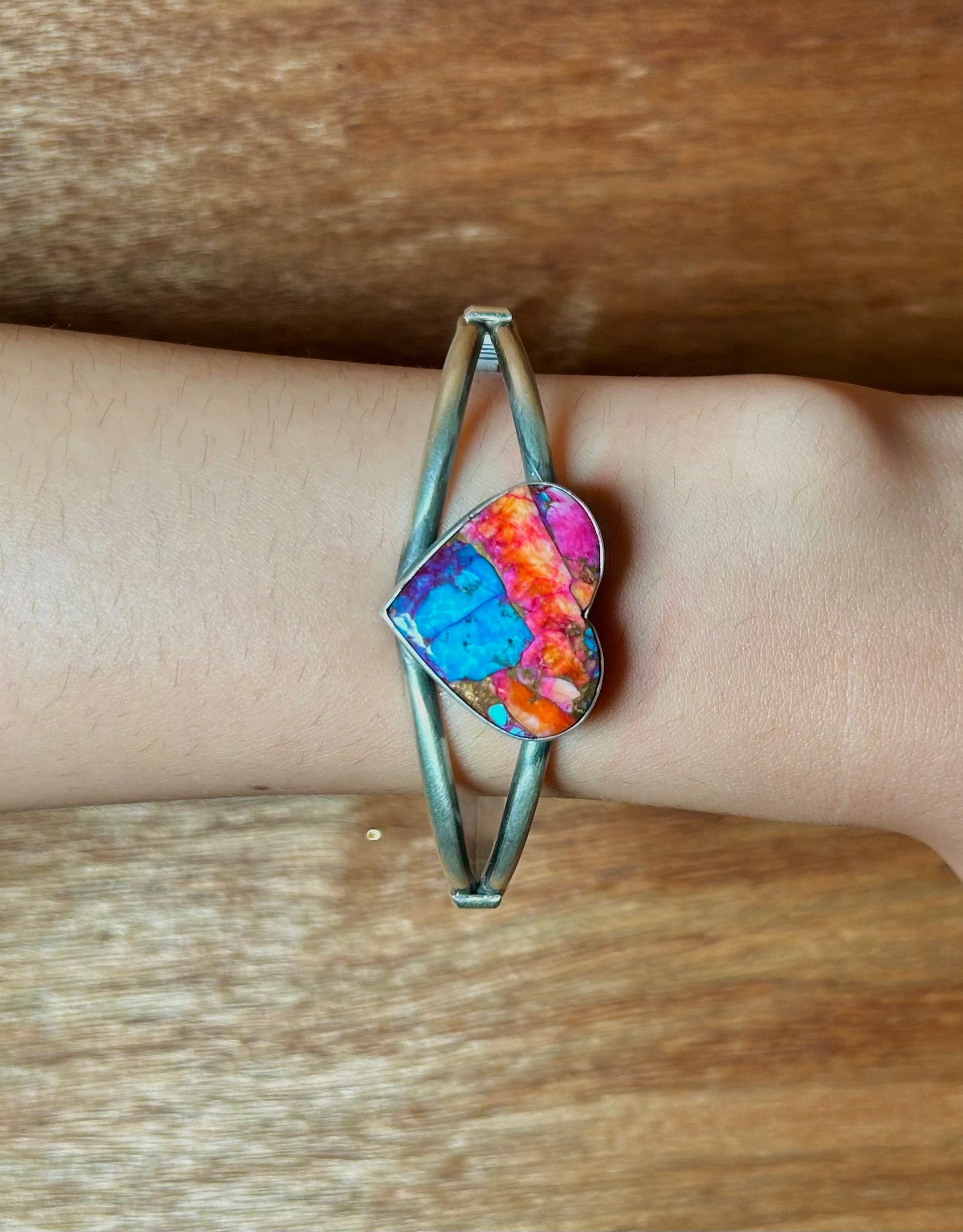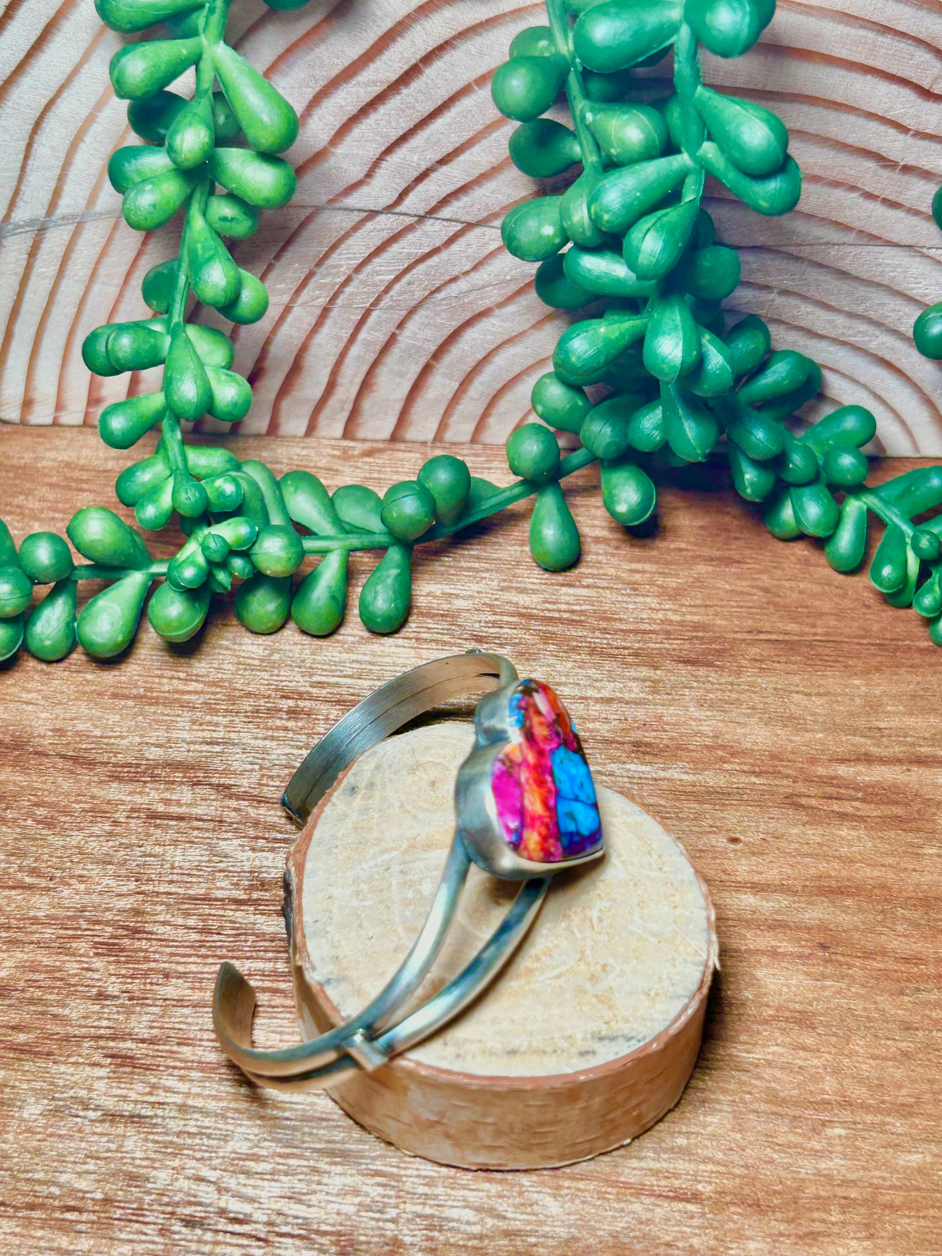 Navajo Made Mohave Turquoise & Sterling Silver Cuff Bracelet