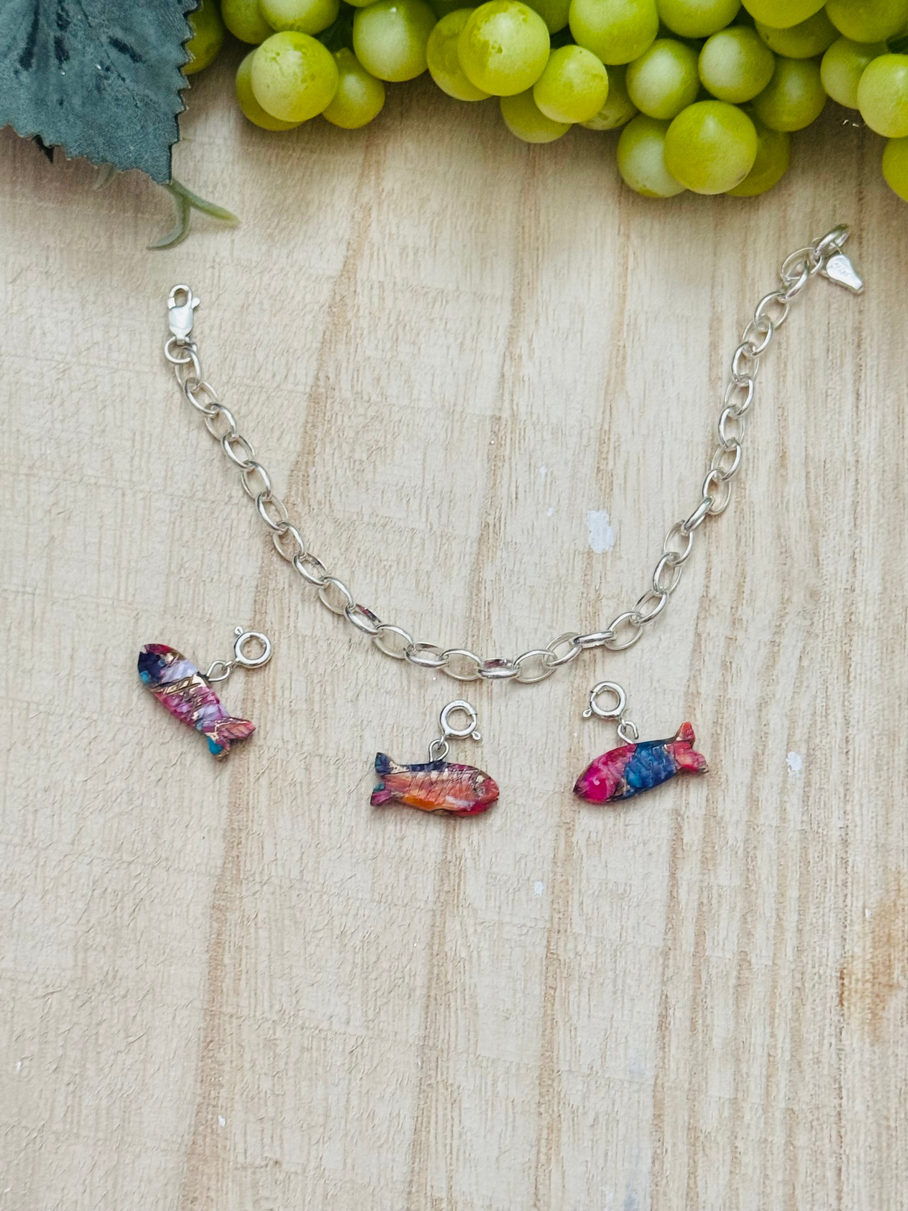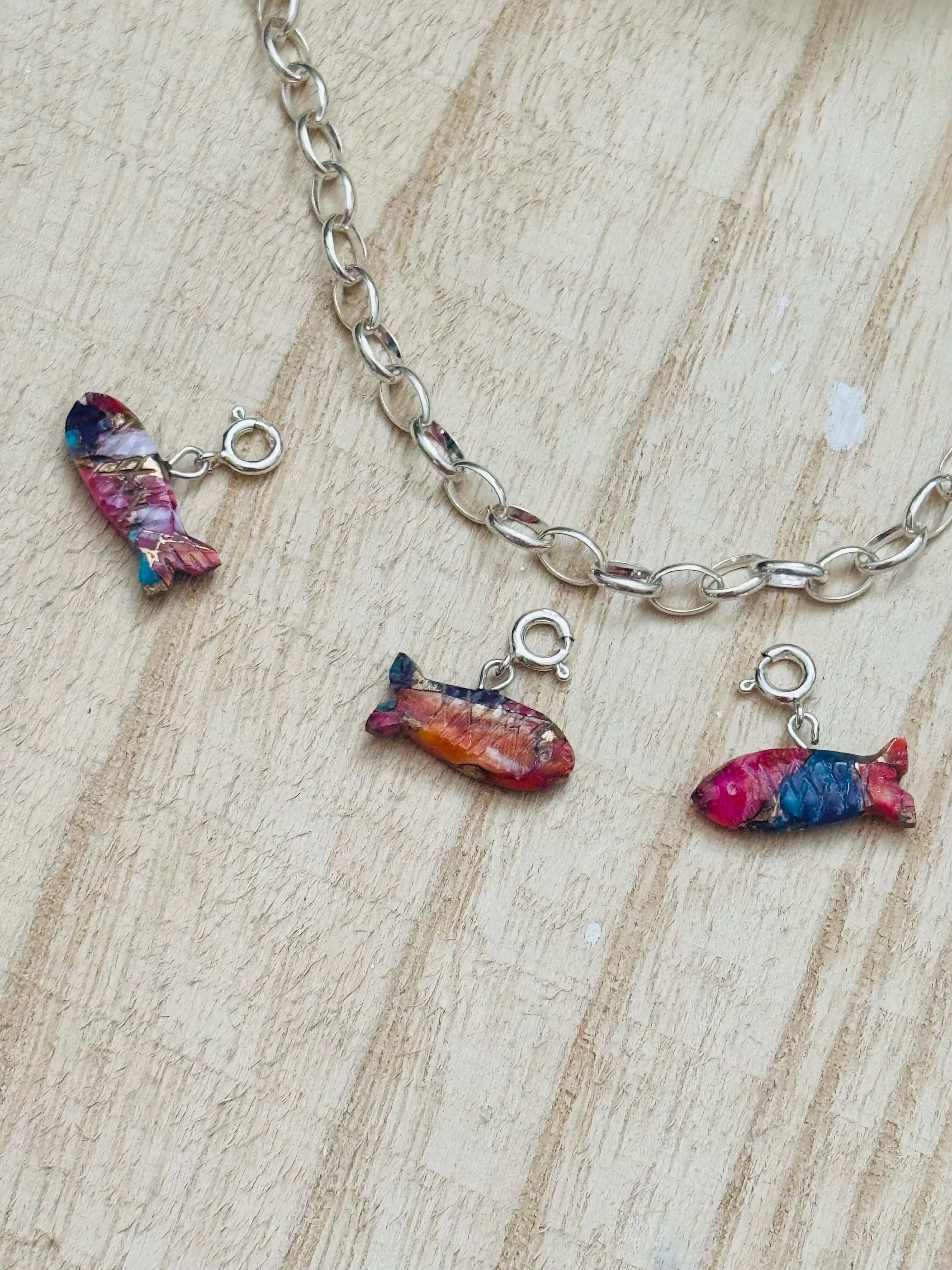 Navajo Made Mohave Turquoise & Sterling Silver Fish Charms