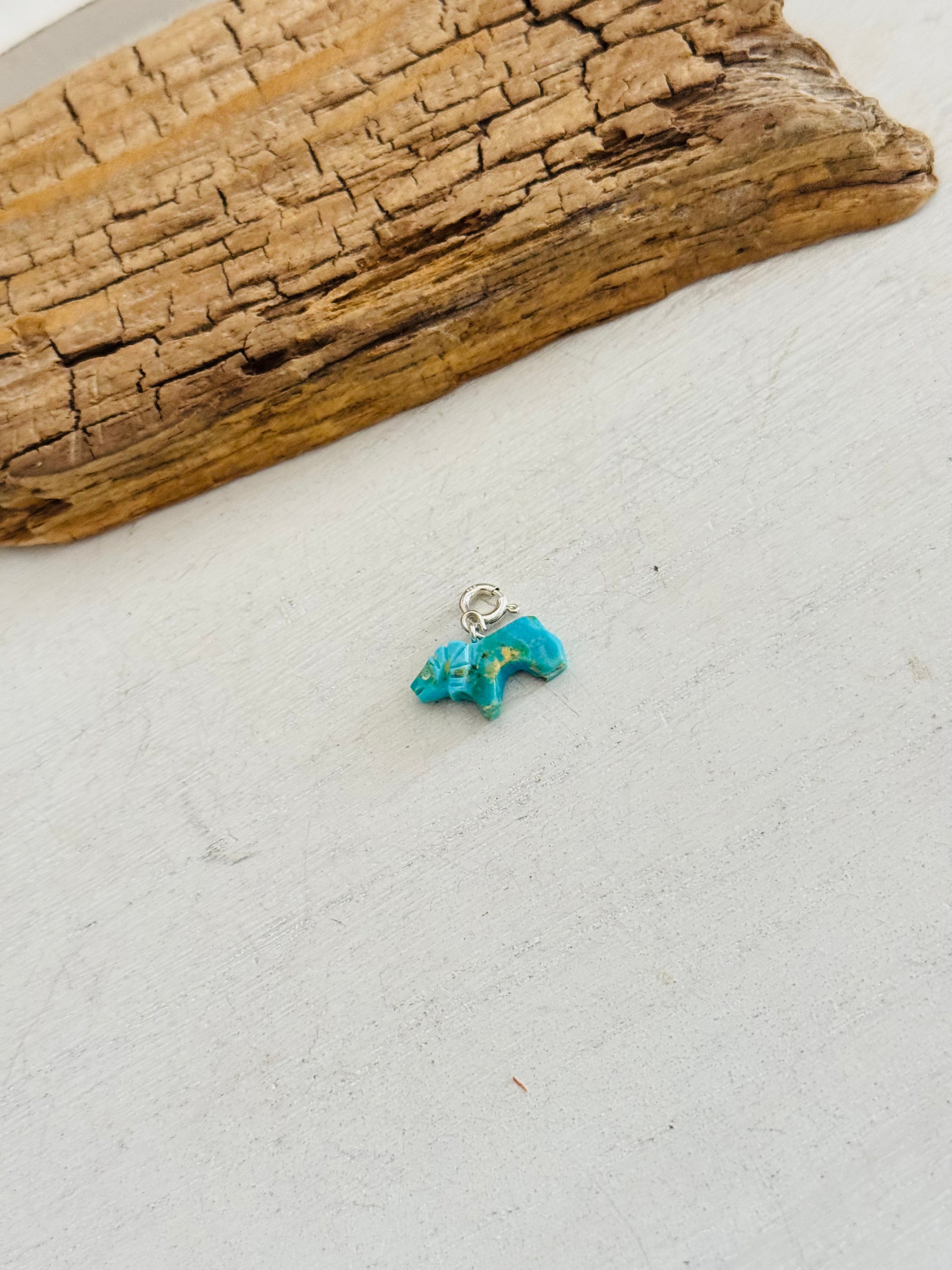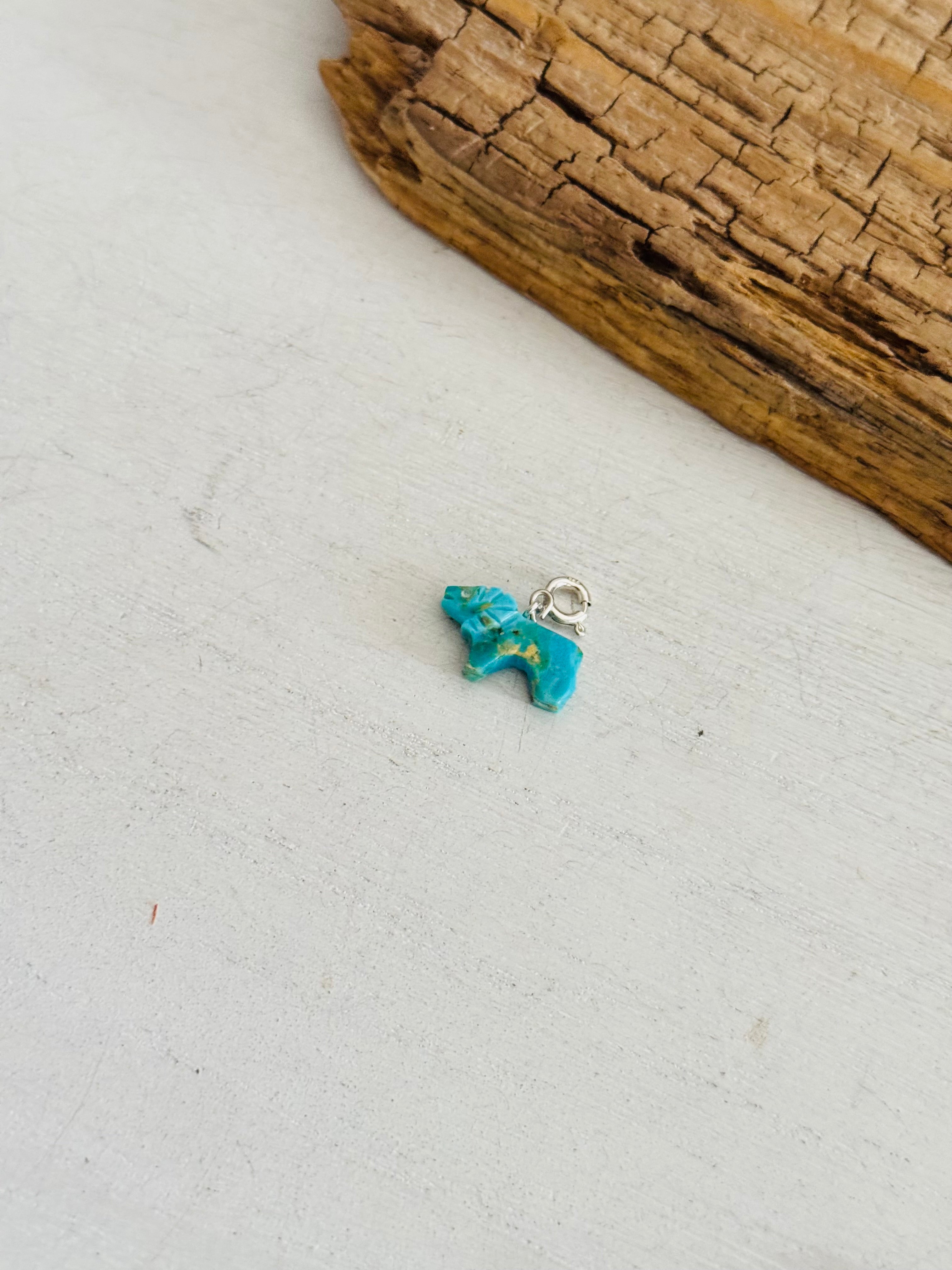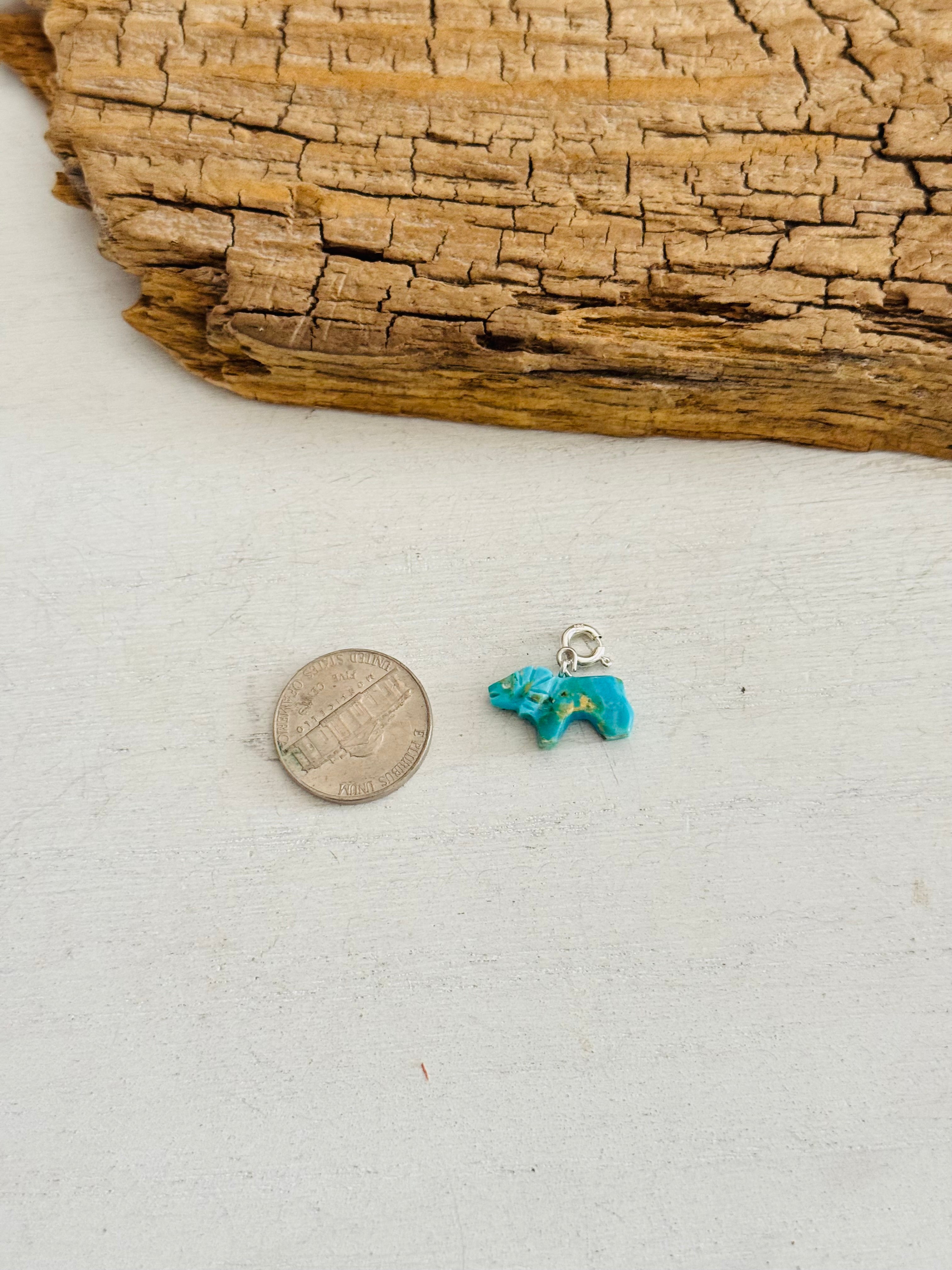 Navajo Made Mohave Turquoise & Sterling Silver Charms. It measures 5/8 of an inch long. **Native** Stones will differ due to natural stones.