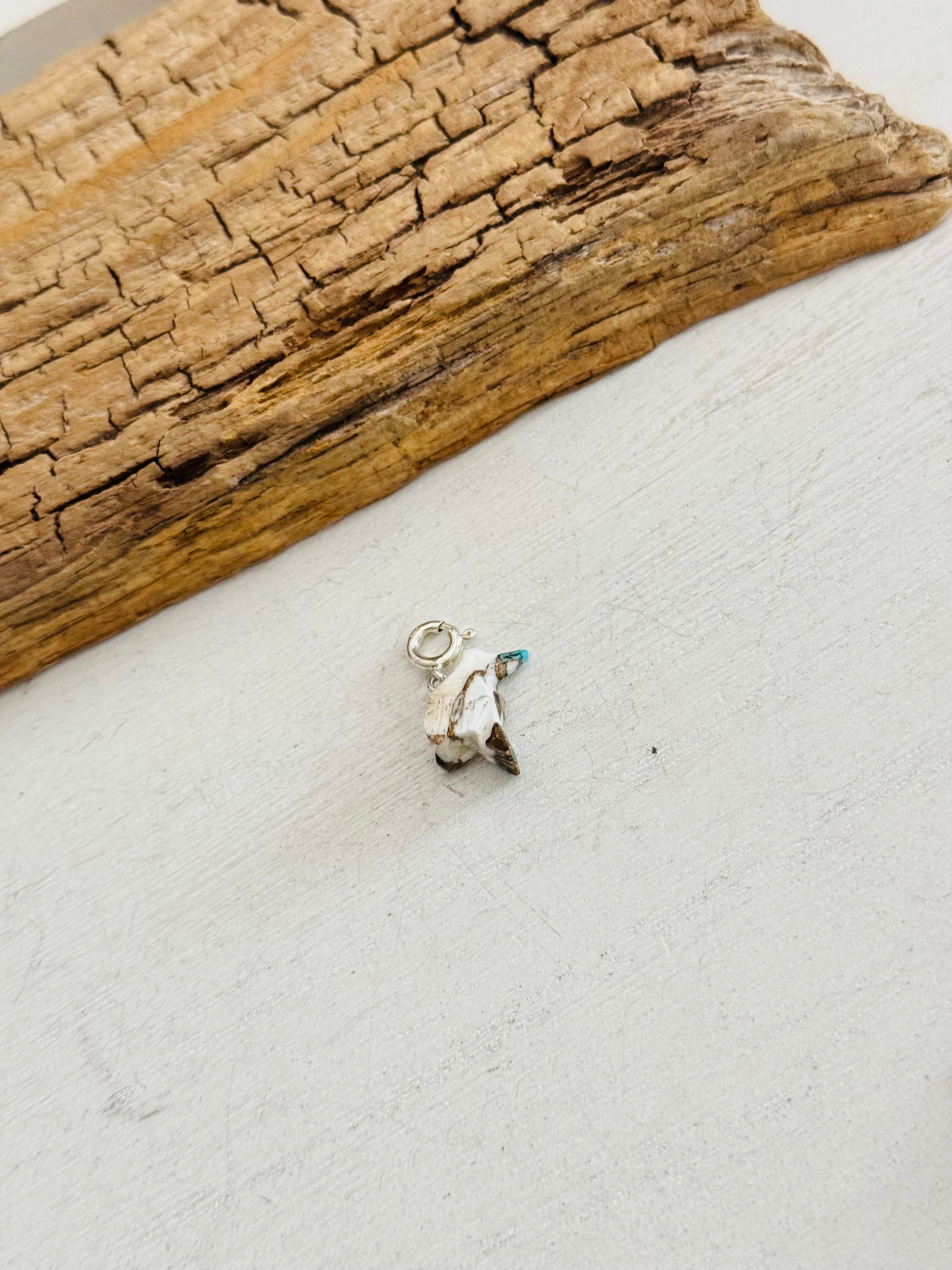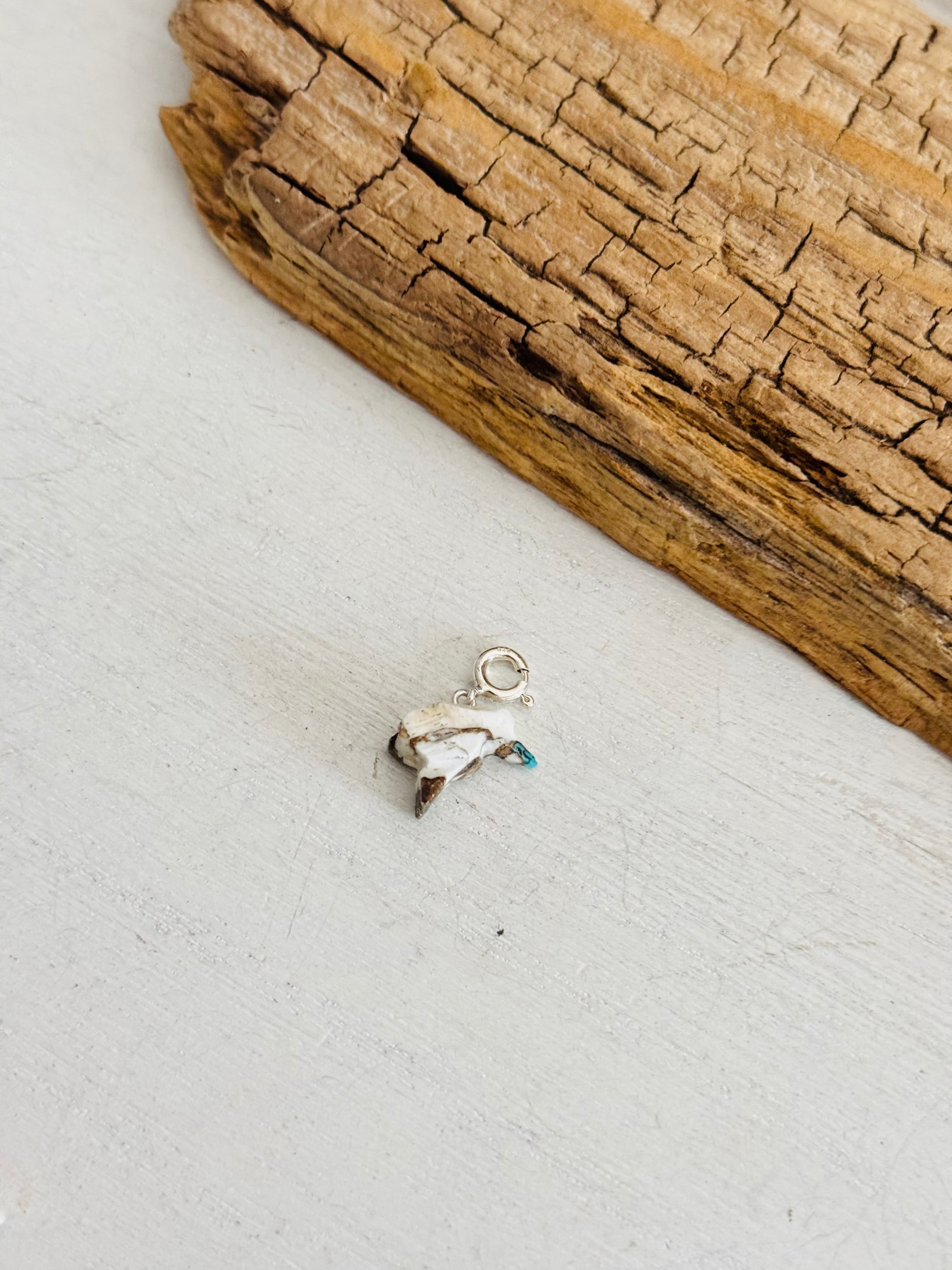 Navajo Made Mohave Turquoise & Sterling Silver Charms. It measures 3/4 of an inch long. **Native** Stones will differ due to natural stones.