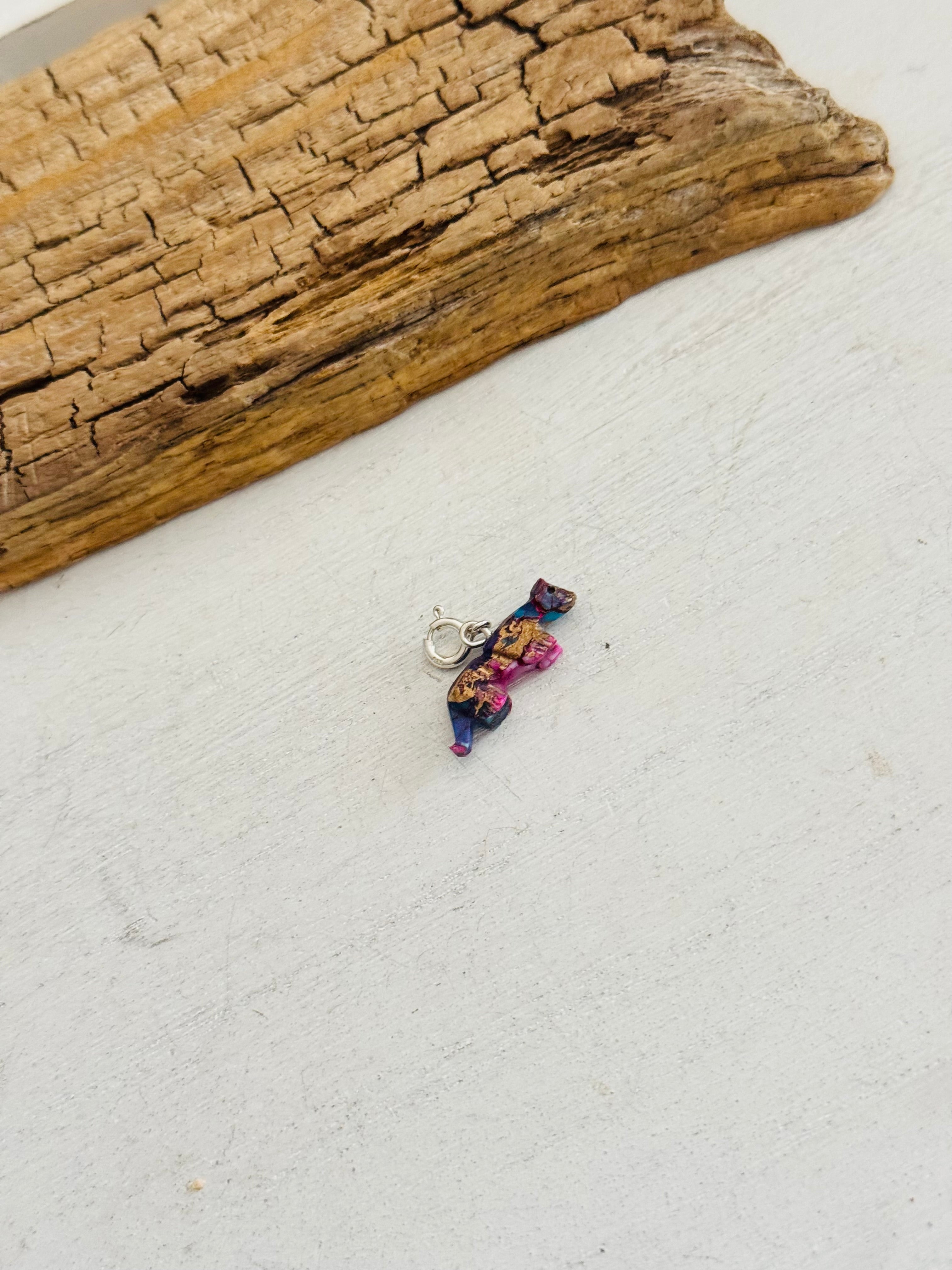 Navajo Made Mohave Turquoise & Sterling Silver Charms. It measures 5/8 of an inch long. **Native** Stones will differ due to natural stones.
