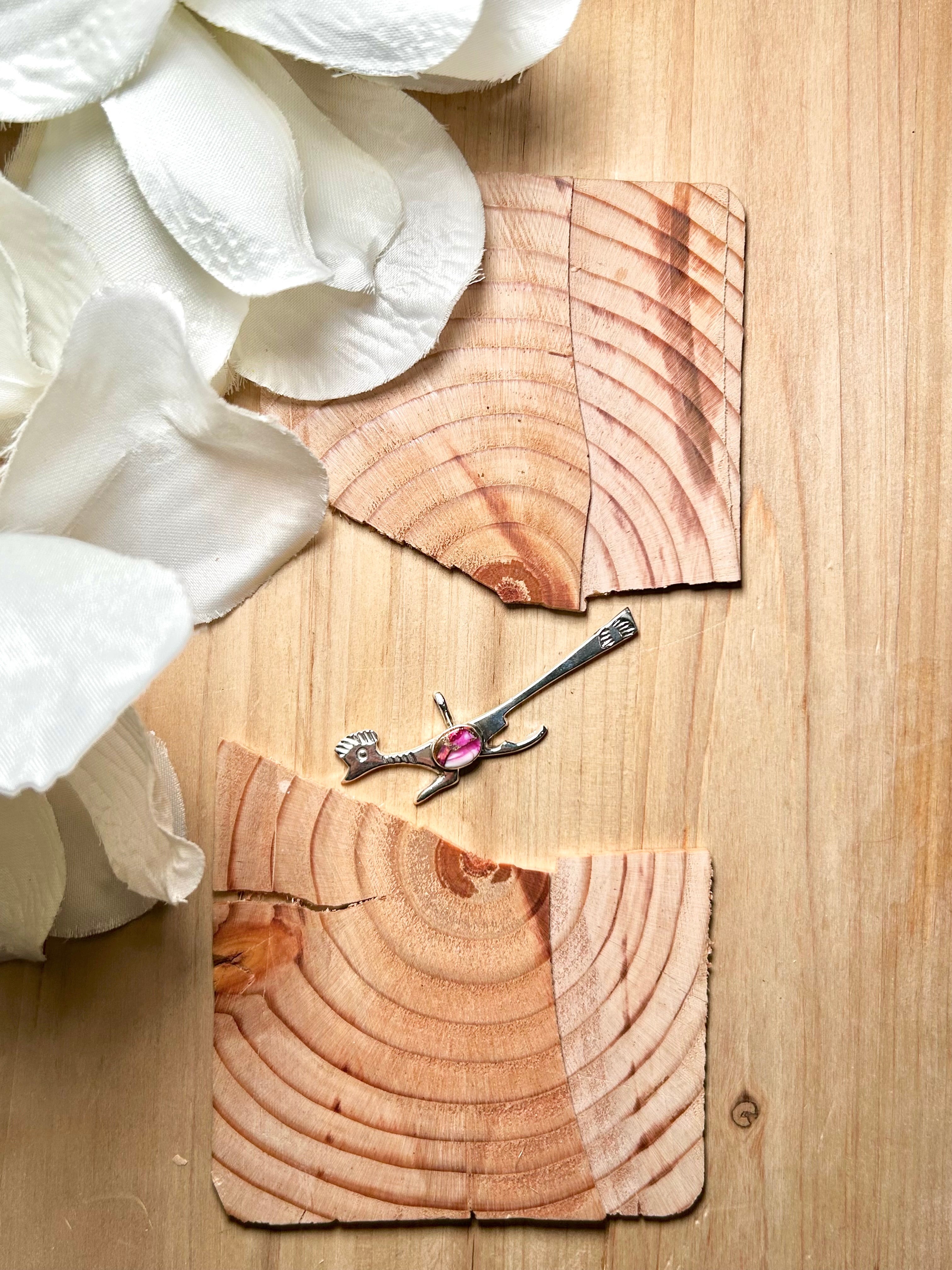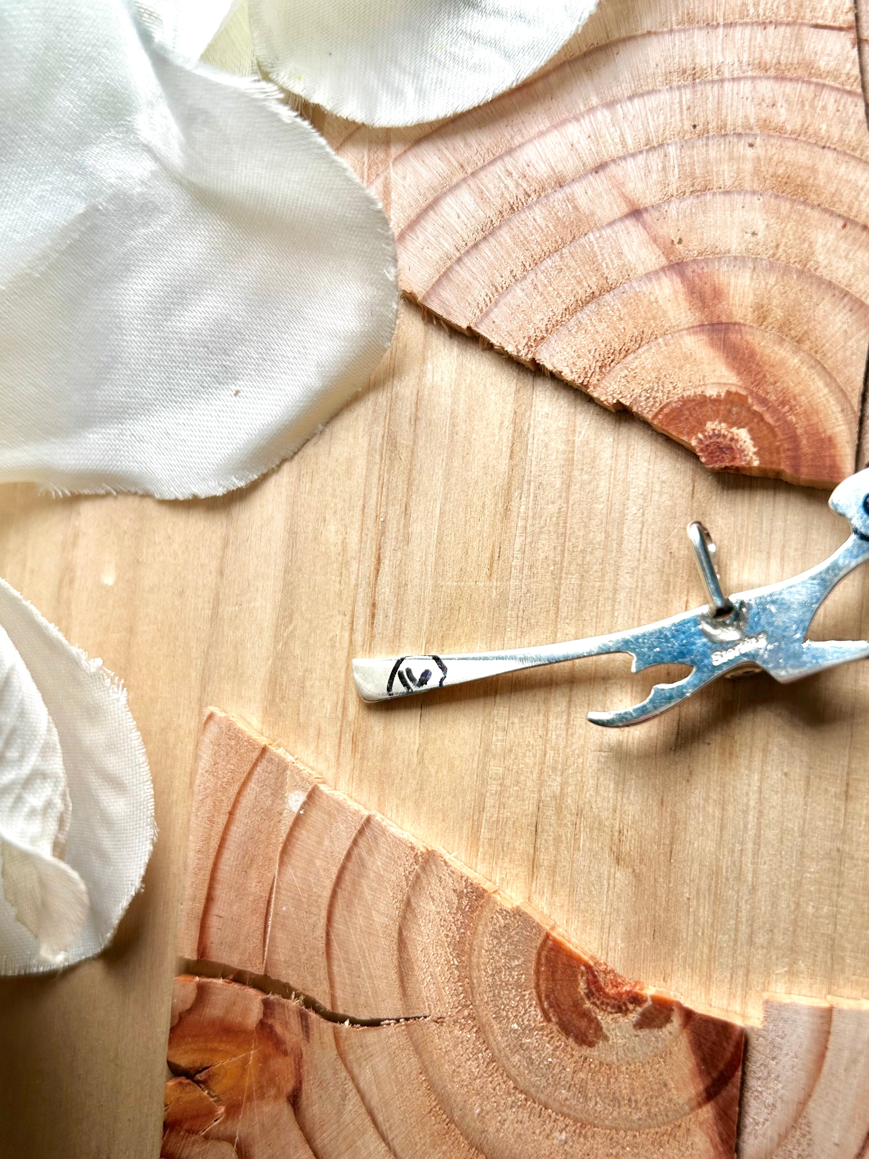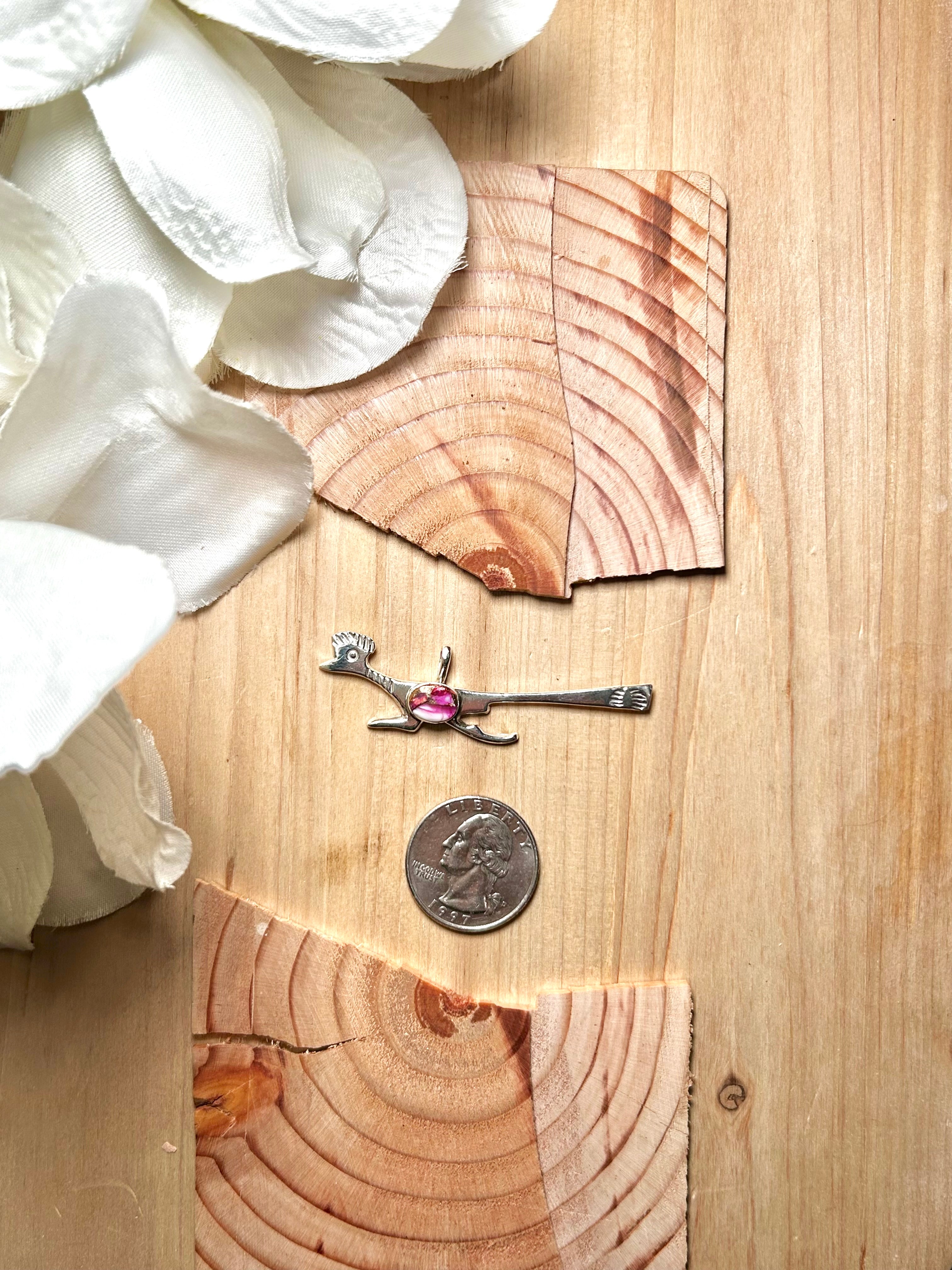 Navajo Made Mohave Turquoise & Sterling Silver Pendant. It measures 2 3/8 inches long and 3/4 of an inch wide. Pendant Only! Signed by the artist and stamped sterling silver.