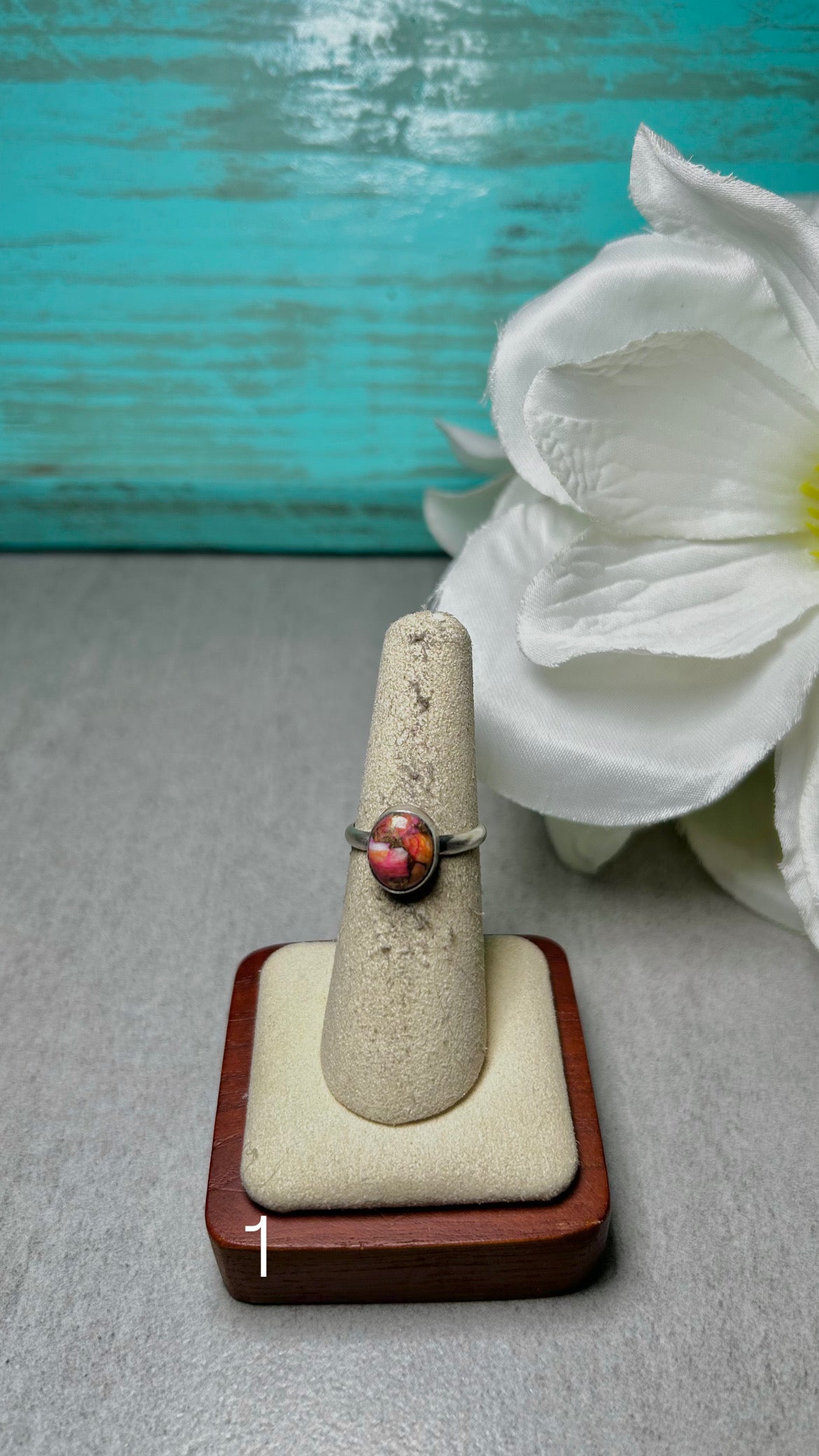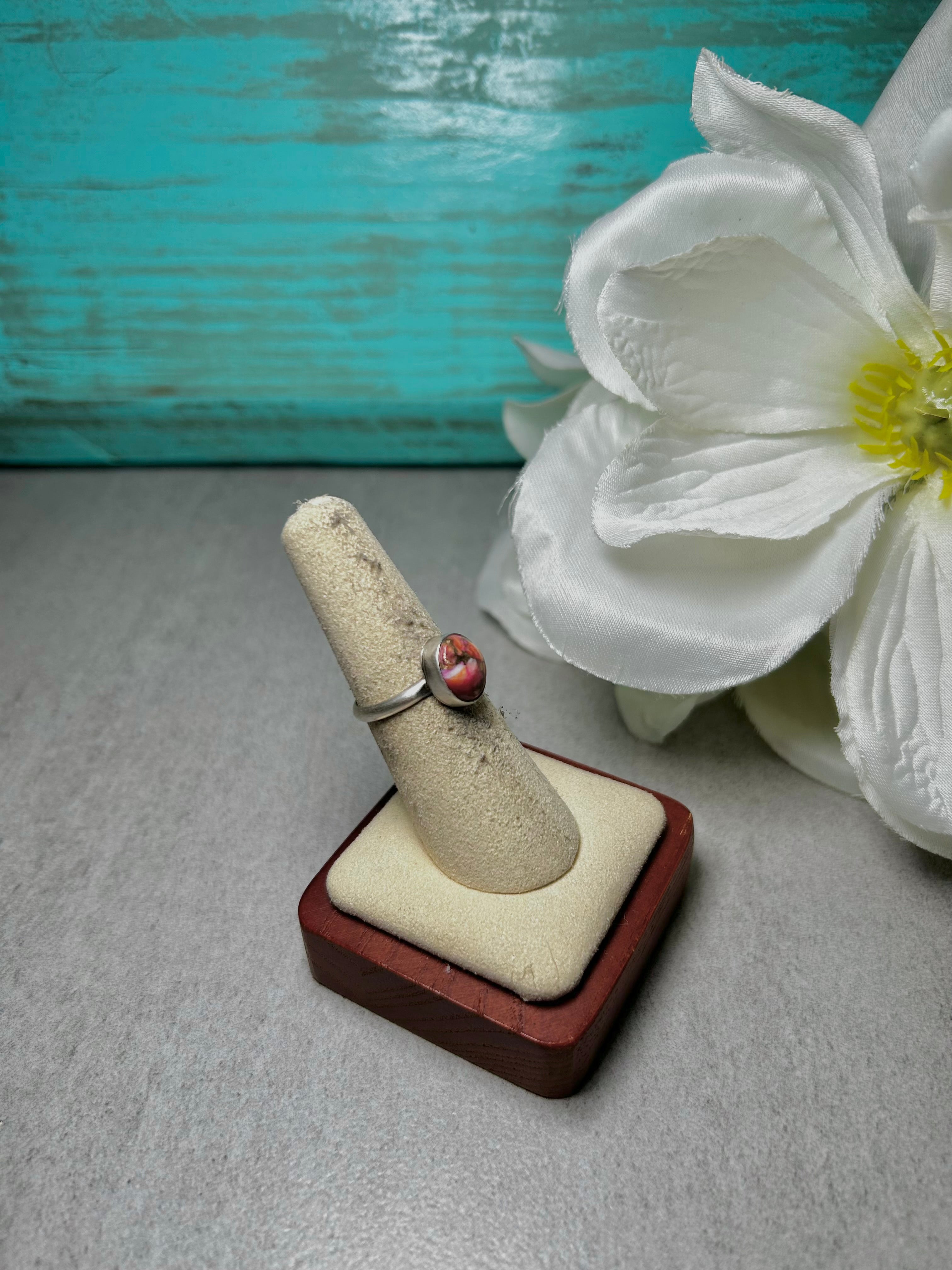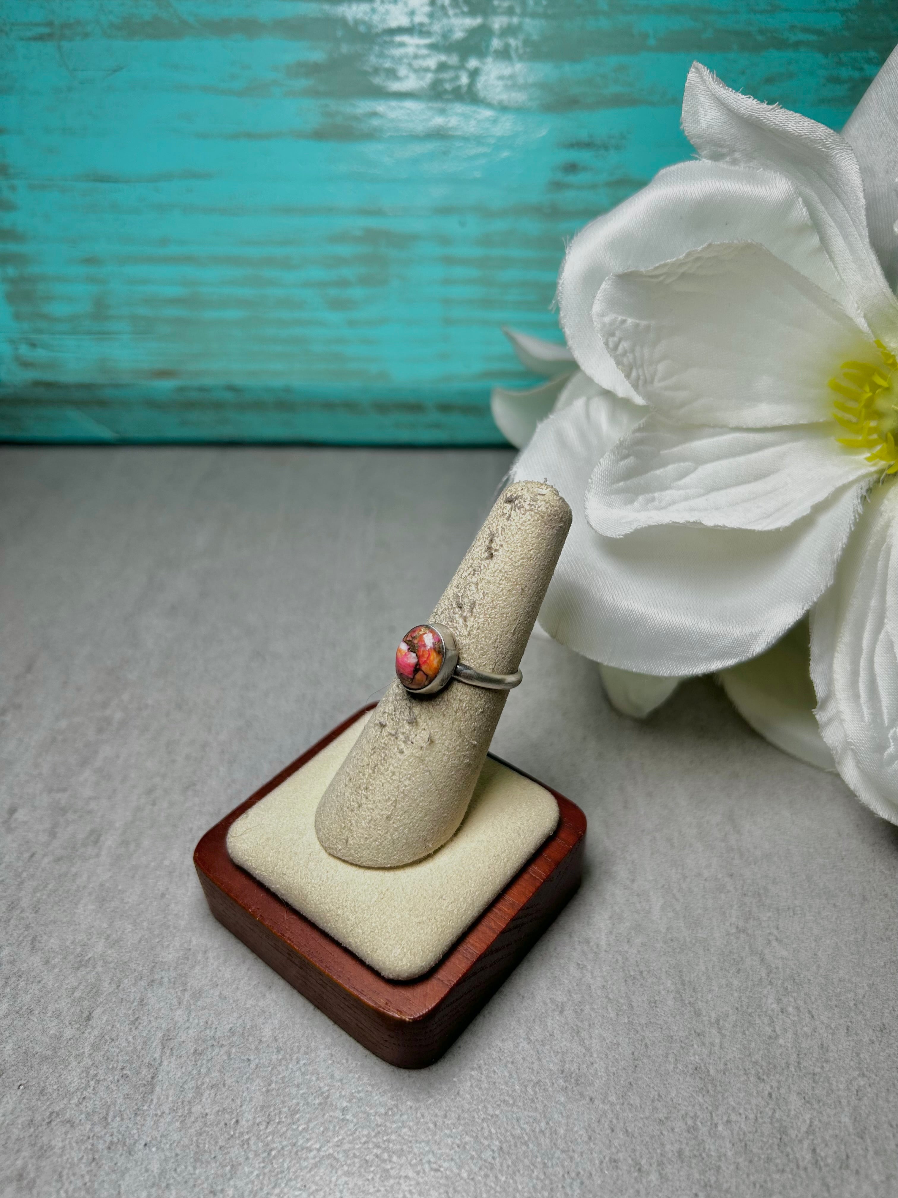 Navajo Made Opal & Sterling Silver Ring Size. It measures 1/2 of an inch long and 3/8 of an inch wide. Signed by the artist and stamped sterling silver.