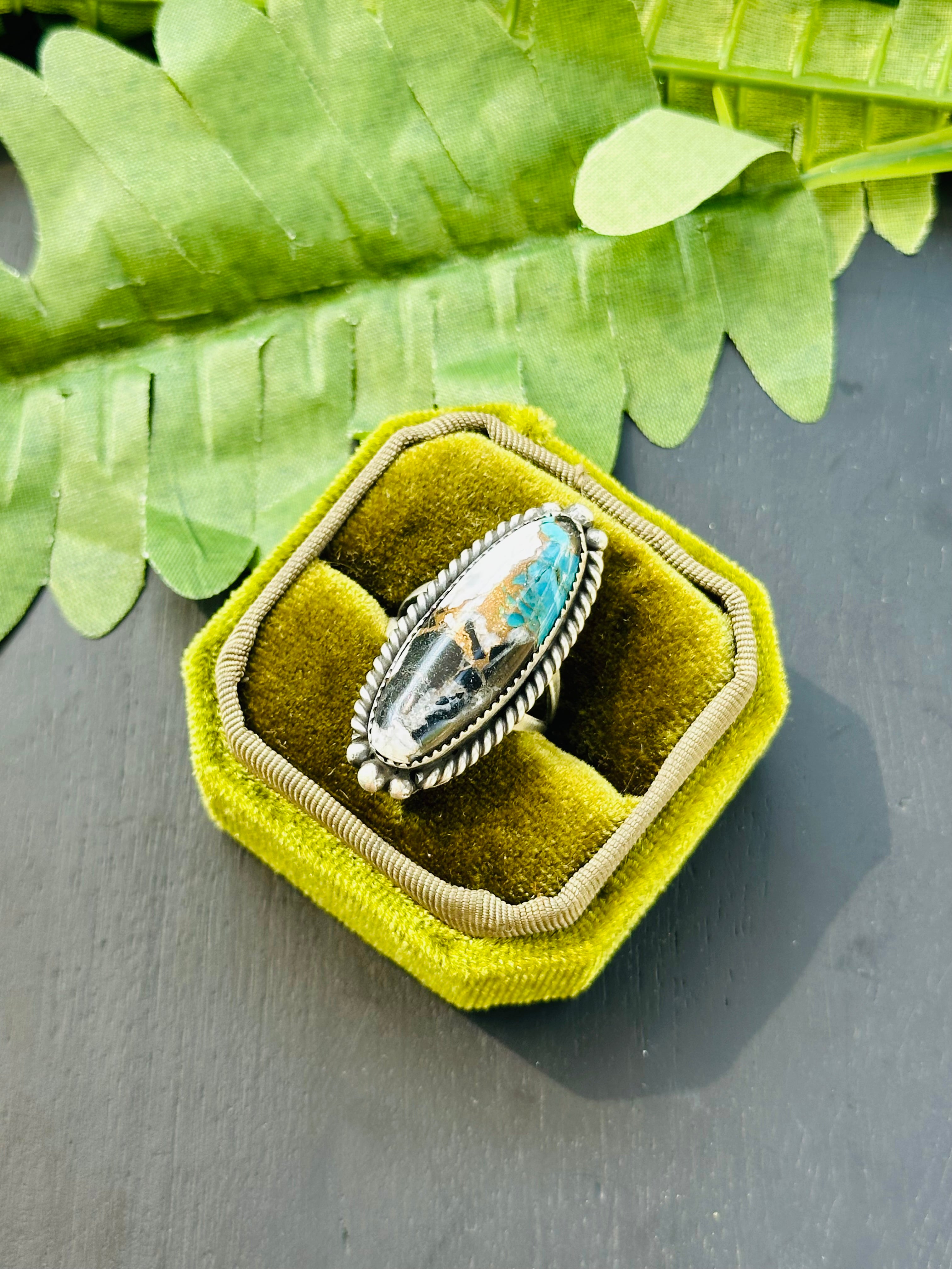 Navajo Made Mohave Turquoise & Sterling Silver Ring Size 6.25
