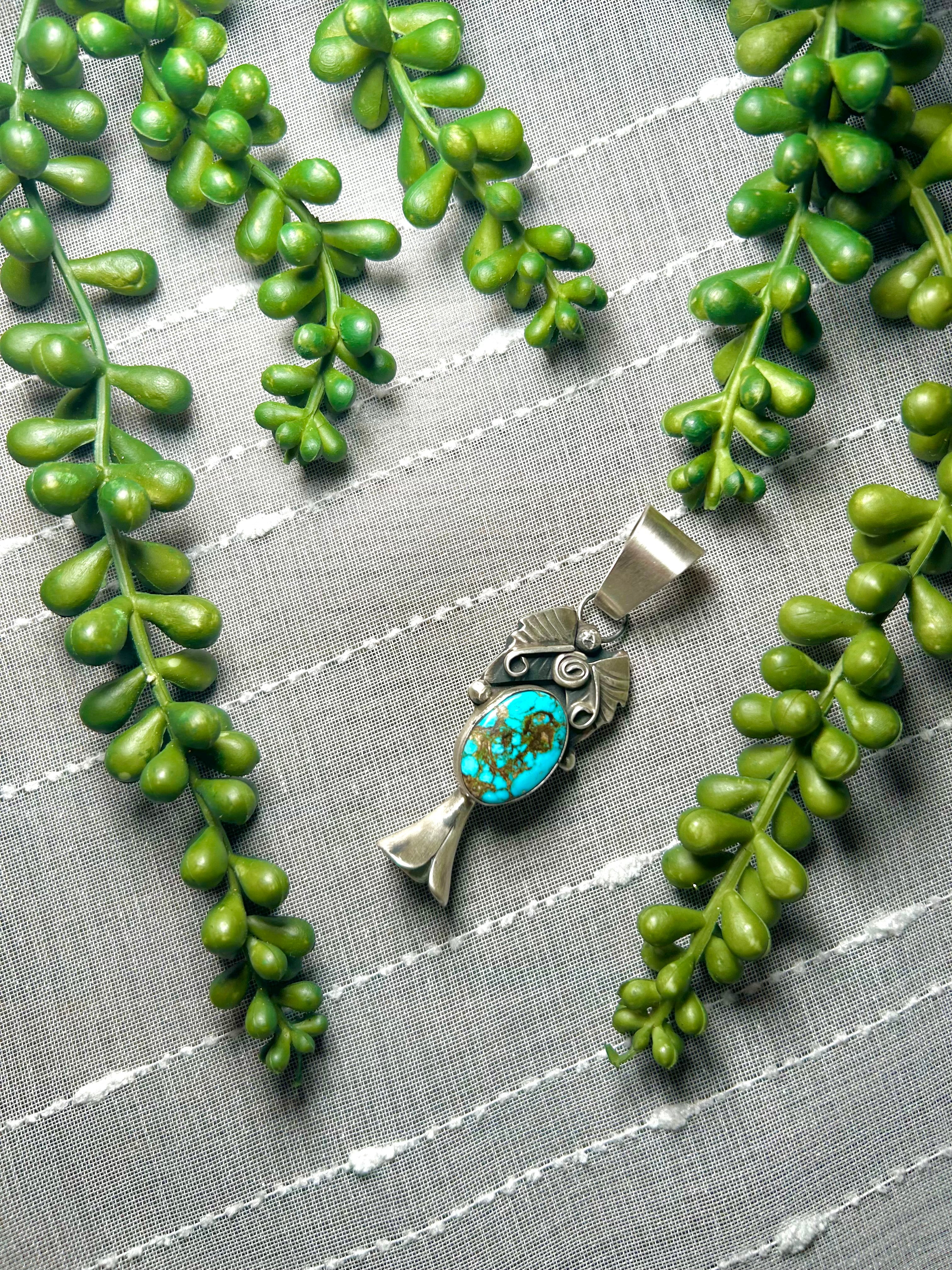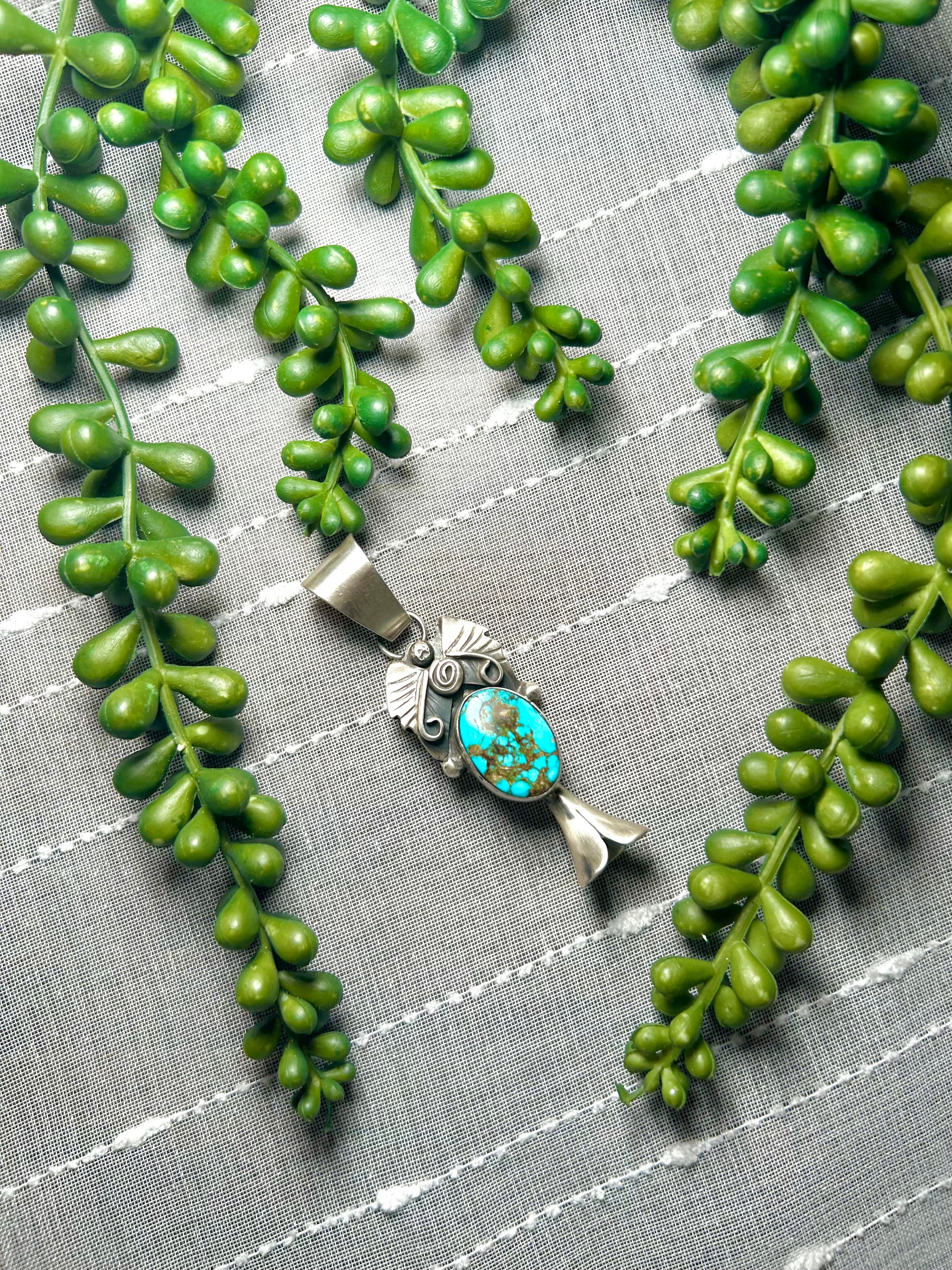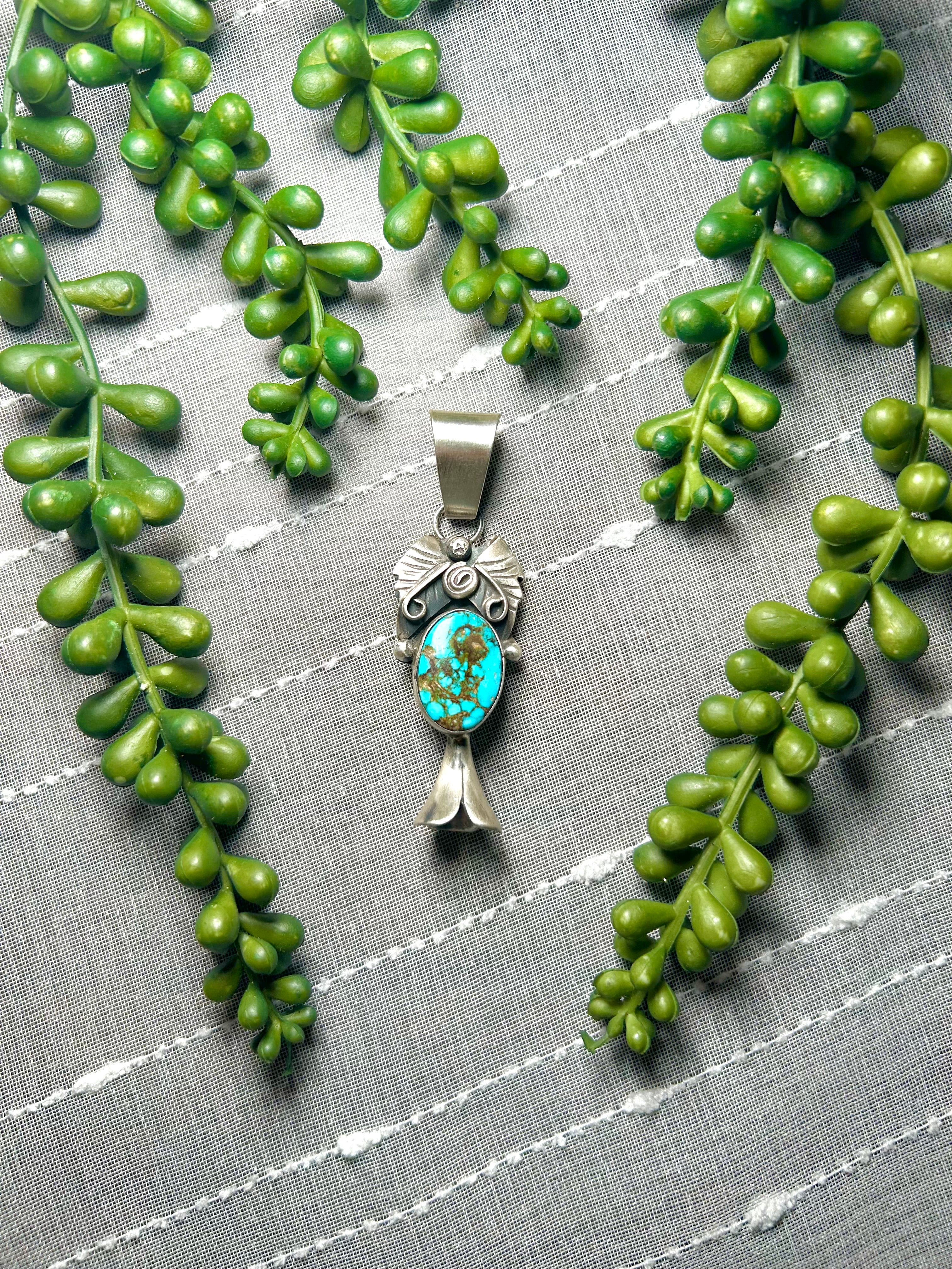 Kobe Martine Kingman Turquoise & Sterling Silver Pendant.