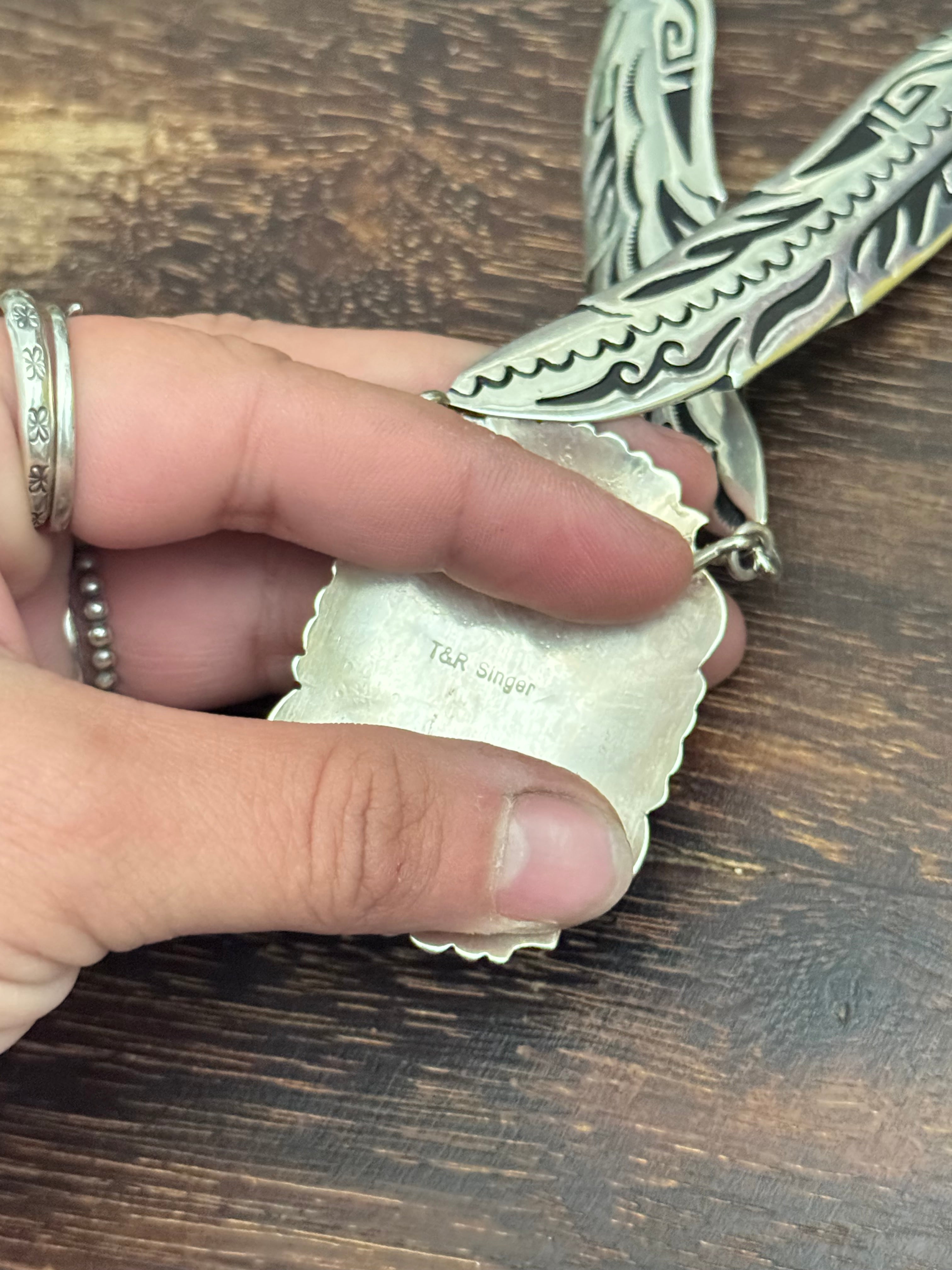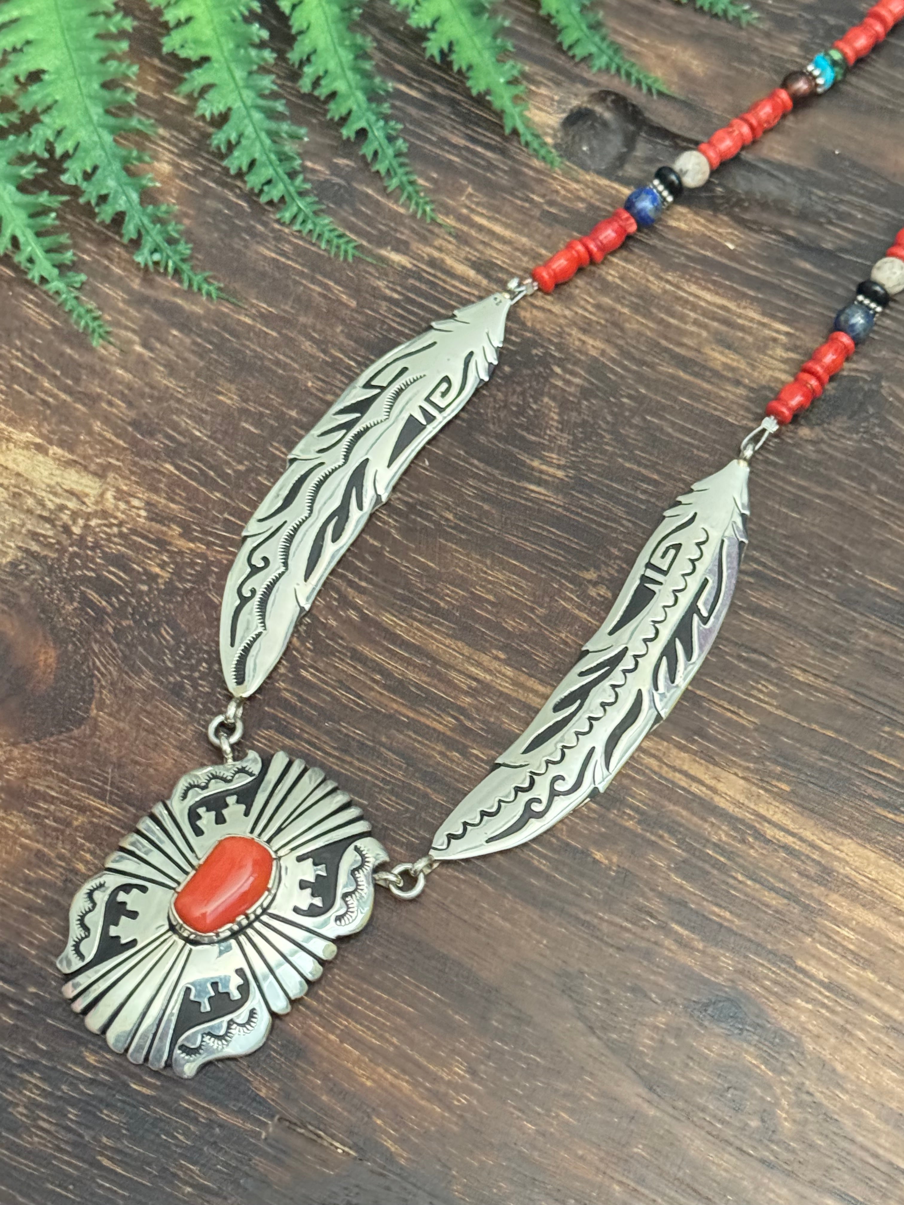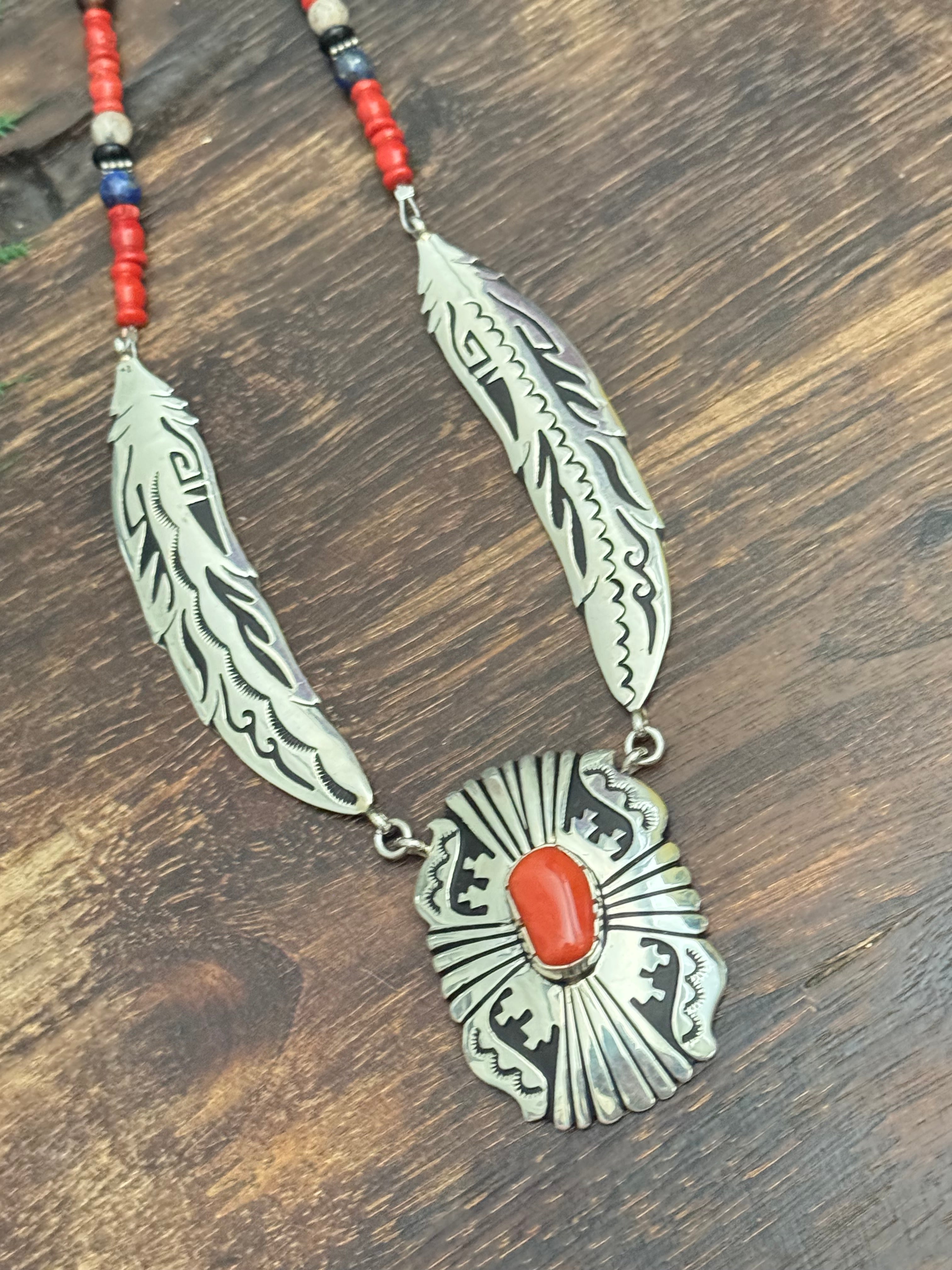 Tommy & Rose Singer Multi Stone & Sterling Silver Beaded Necklace. It measures just over 21 inches long with hang while the chain by itself measures 17 inches long. Signed by the artist and stamped sterling silver.
