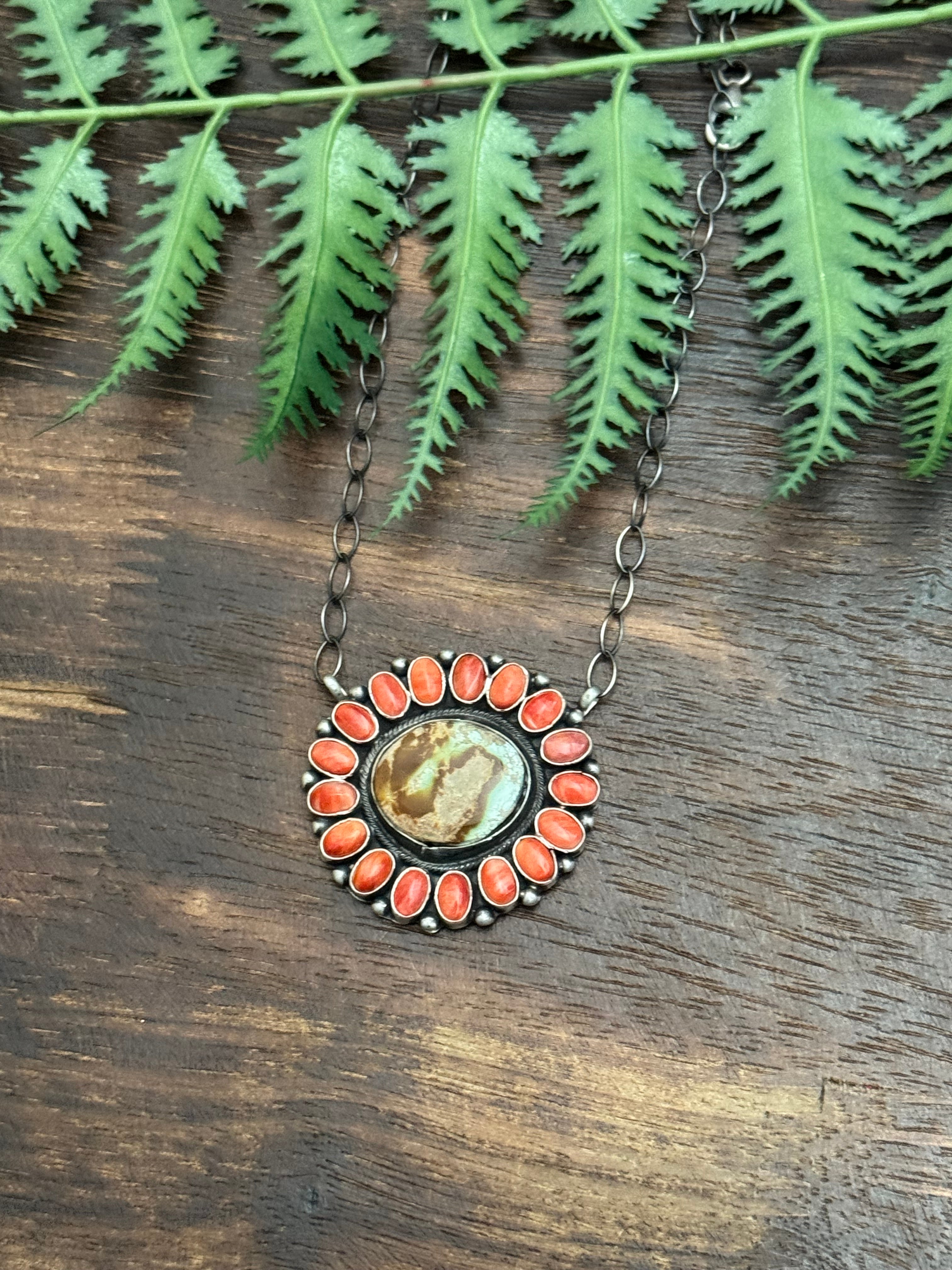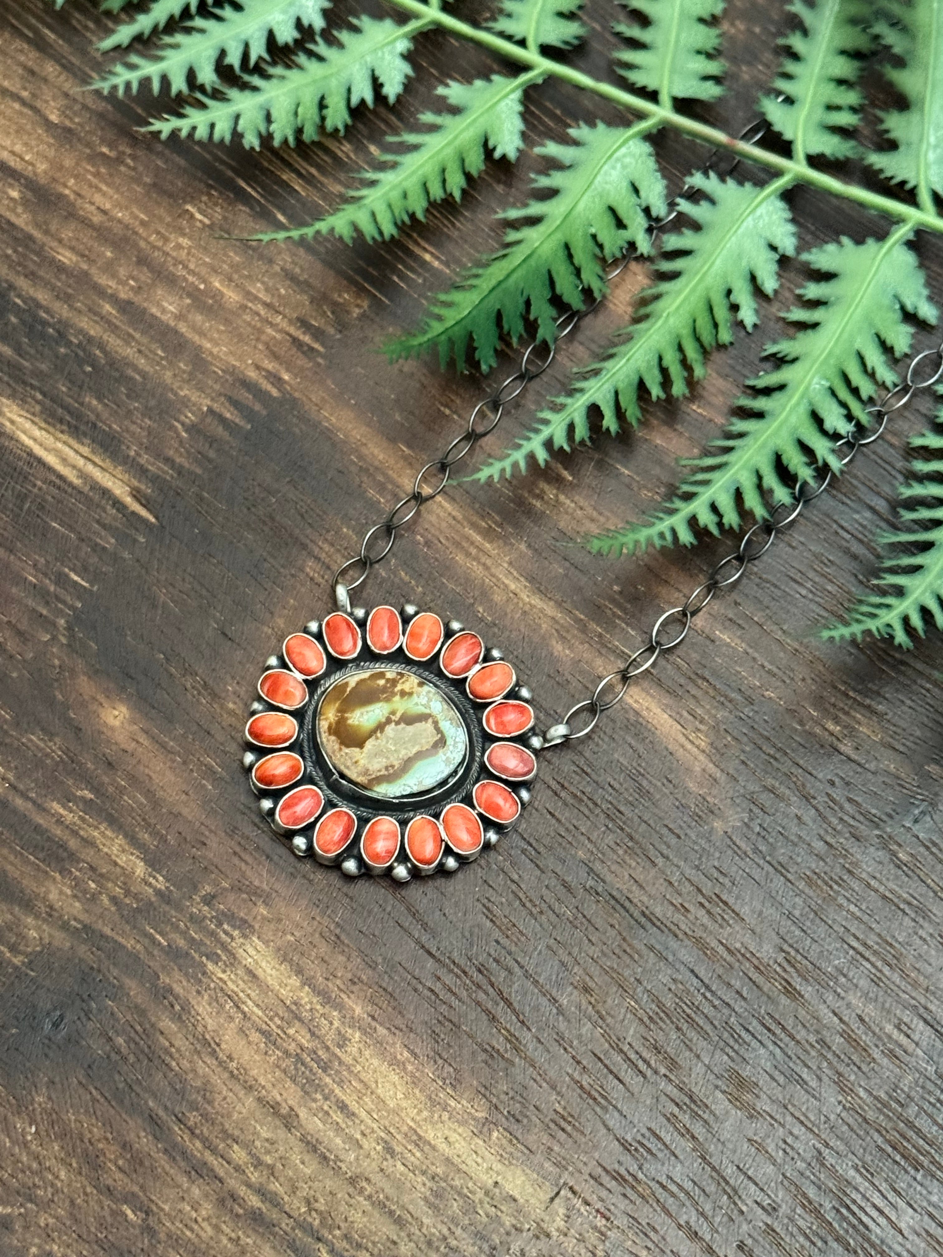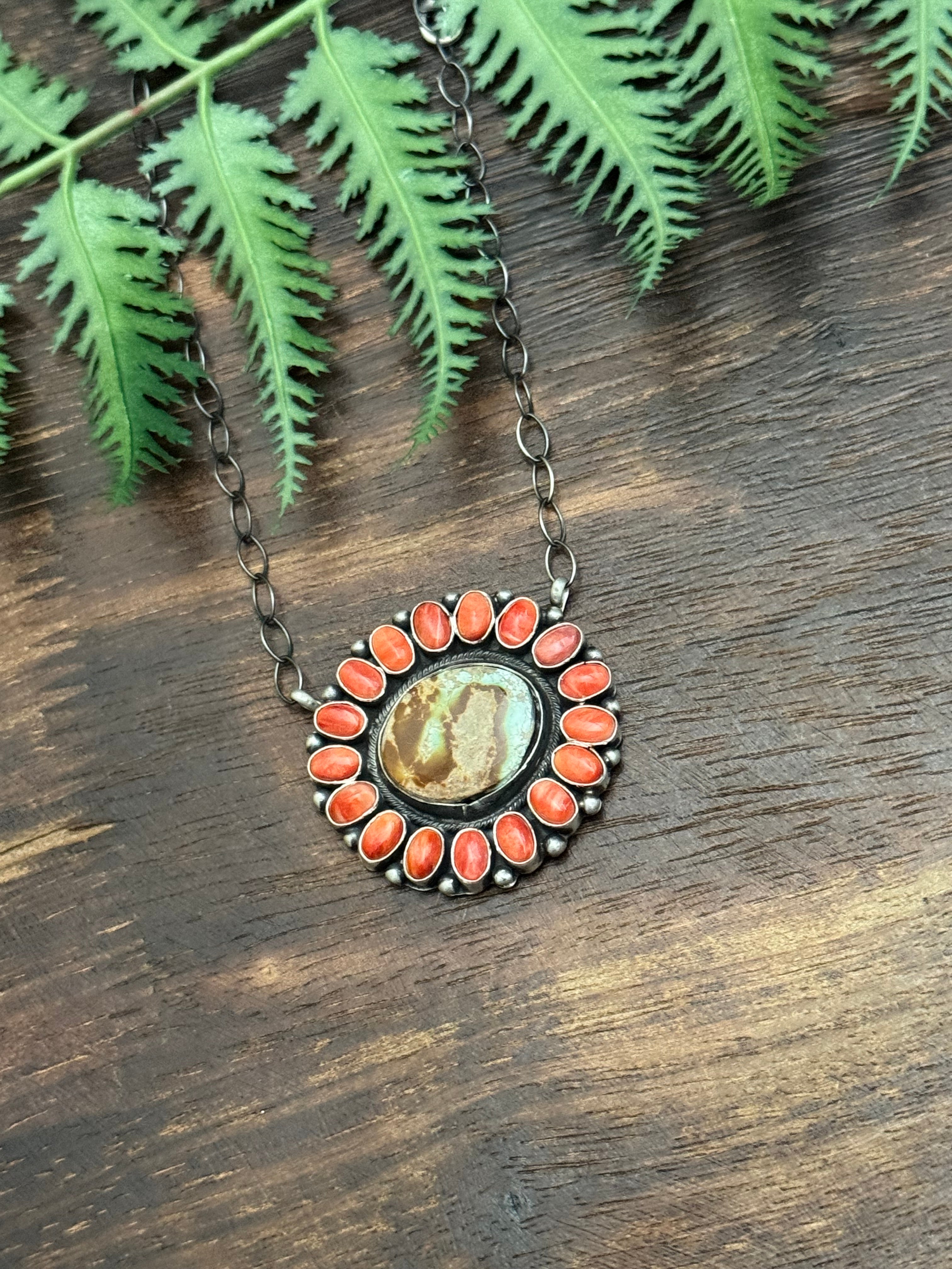 Navajo Made Multi Stone & Sterling Silver Cluster Necklace