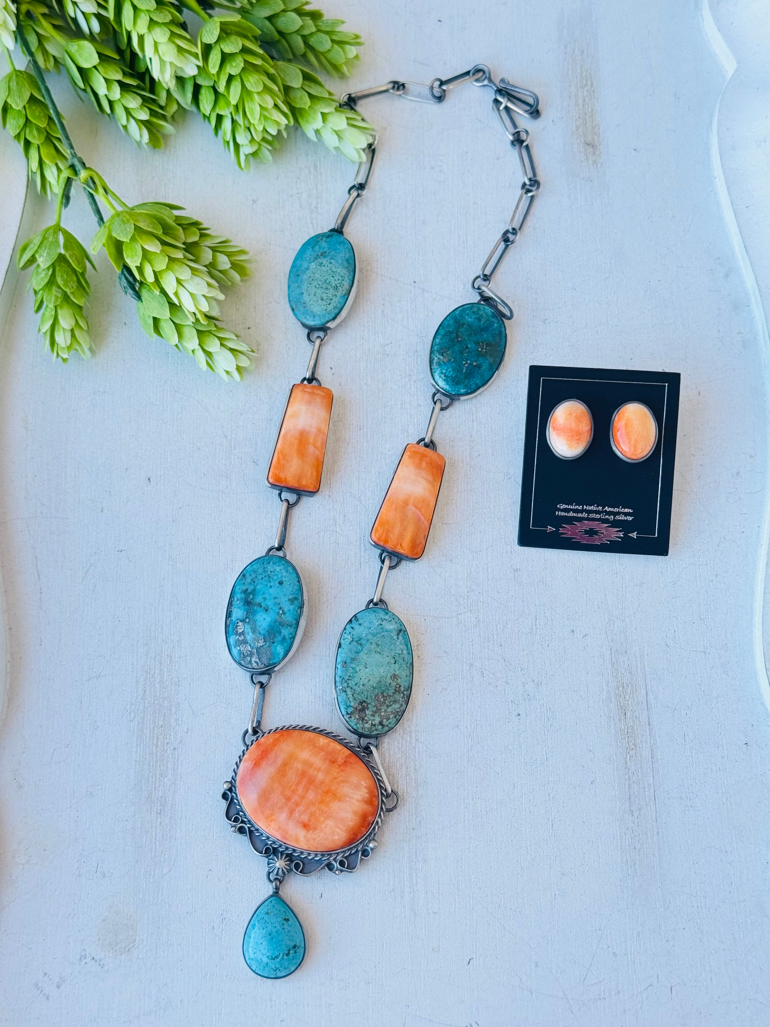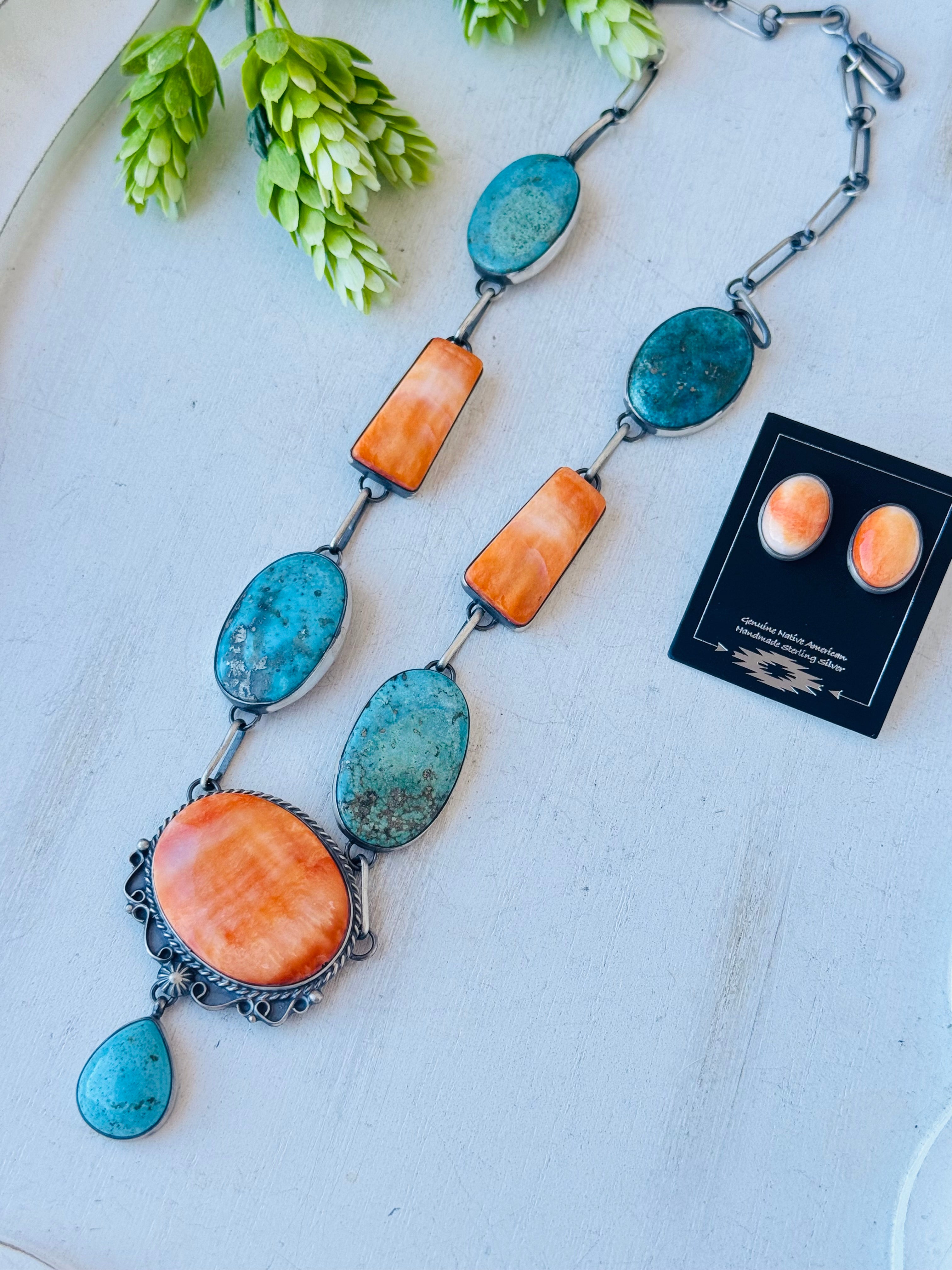 Navajo Made Multi Stone & Sterling Silver Necklace Set