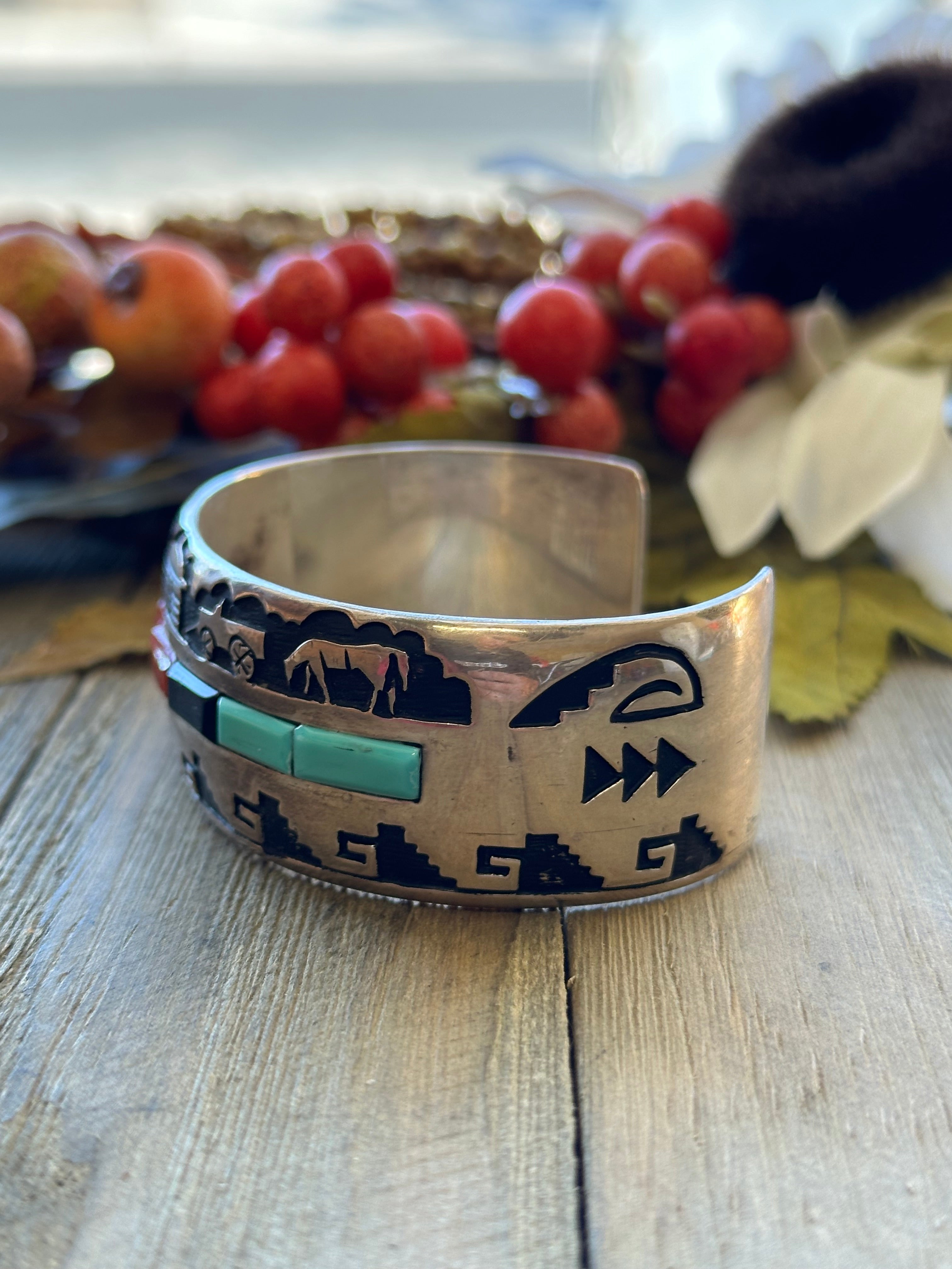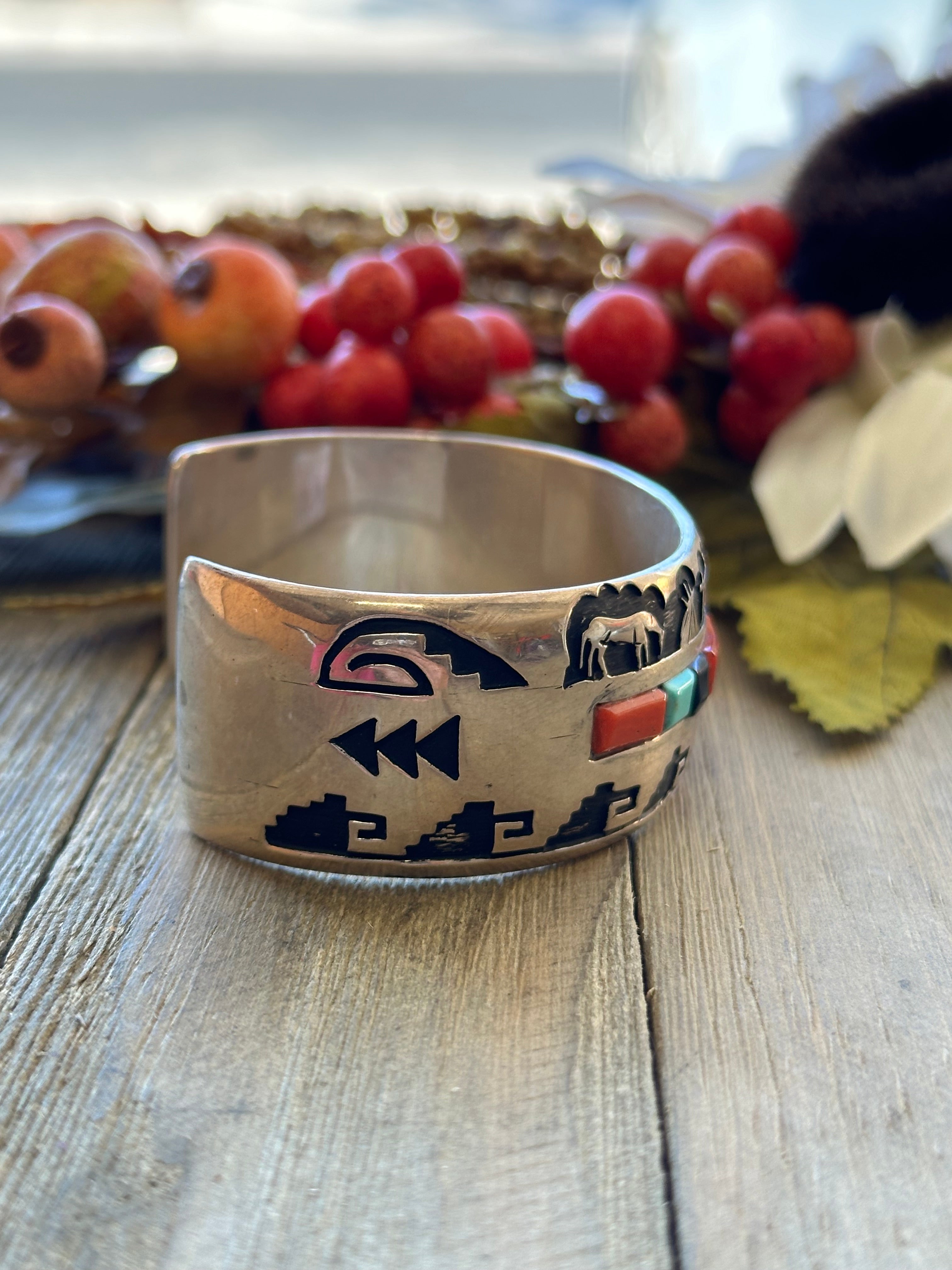 Navajo Made Multi Stone & Sterling Silver Cuff Bracelet