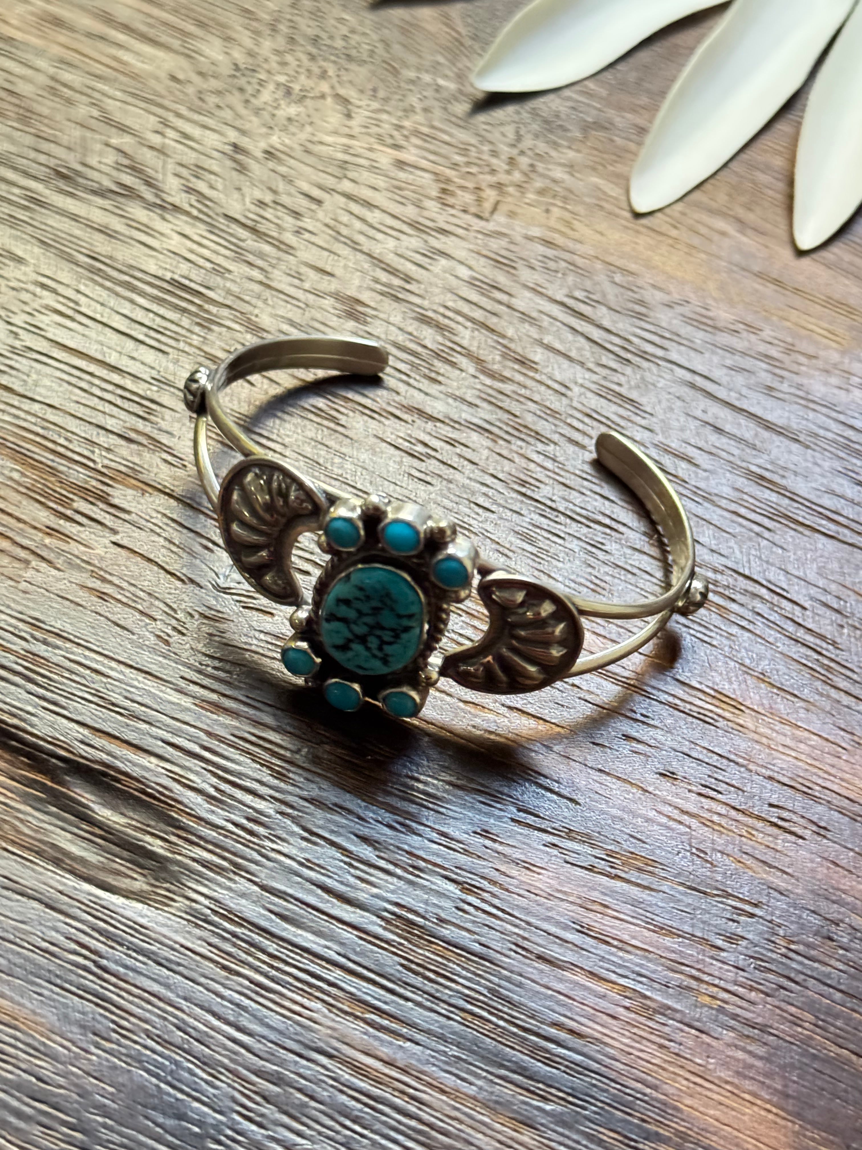 Navajo Made Kingman Turquoise & Sterling Silver Cuff Bracelet