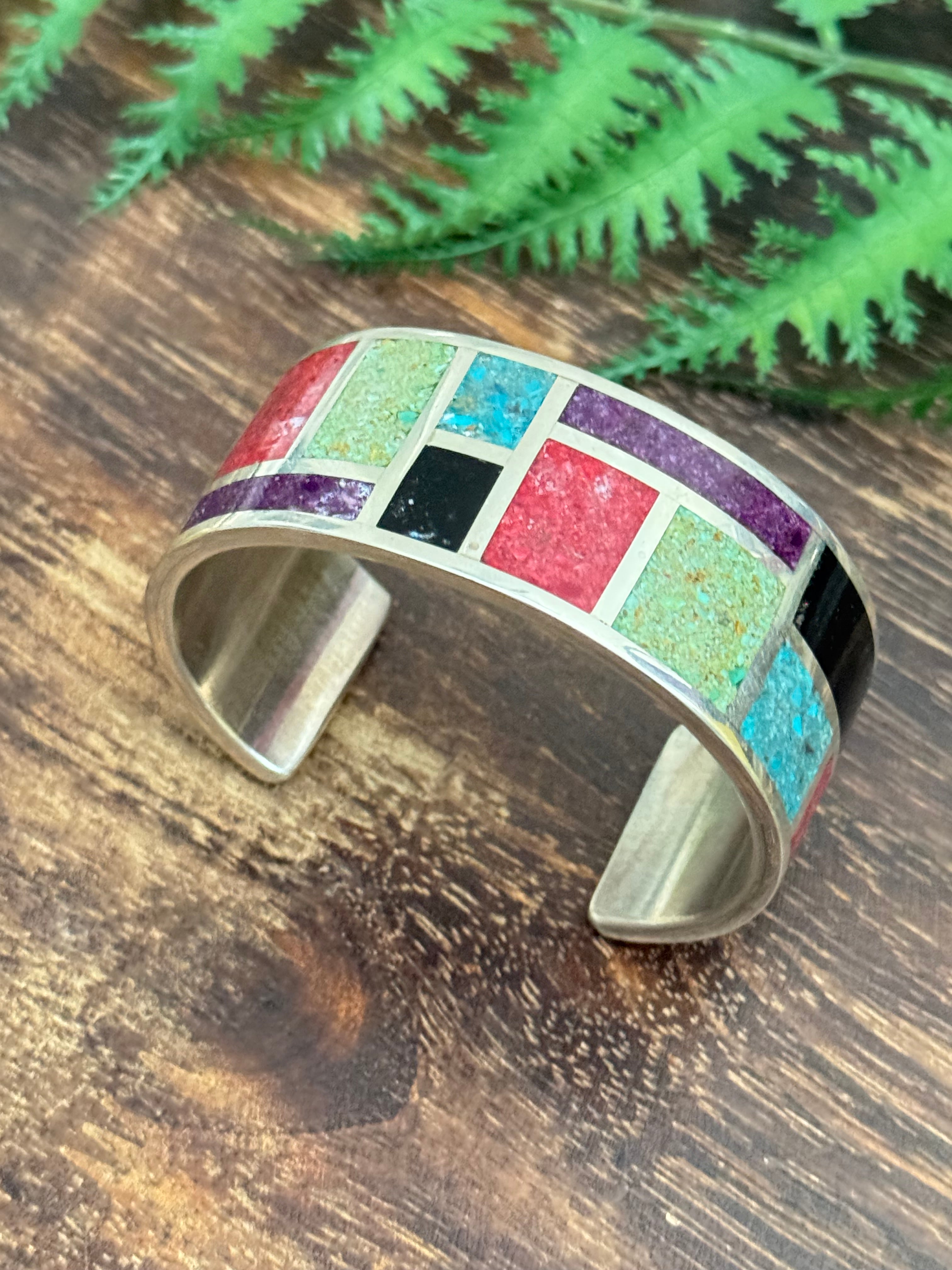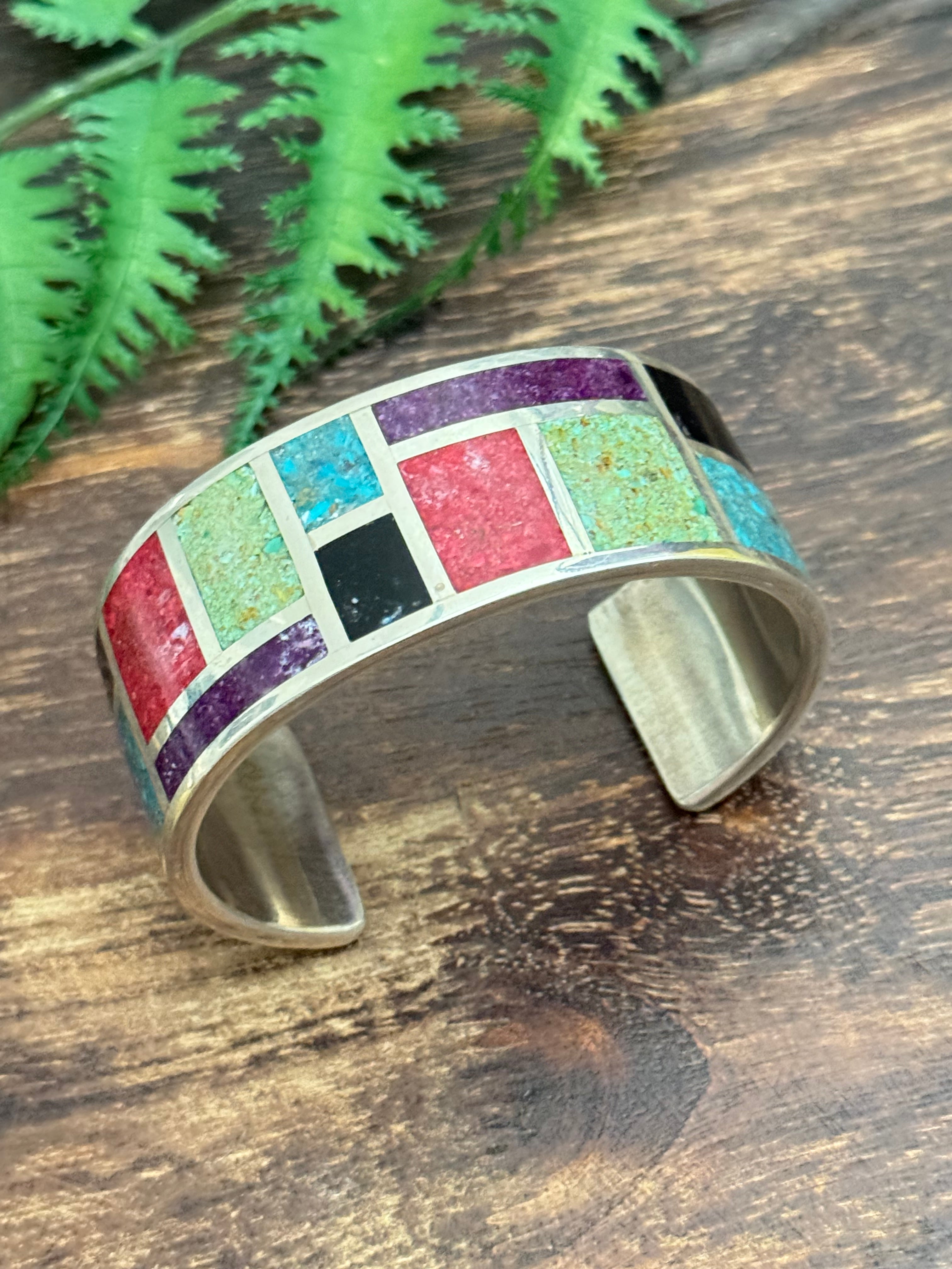 Leslie Nez Multi Stone & Sterling Silver Inlay Cuff Bracelet
