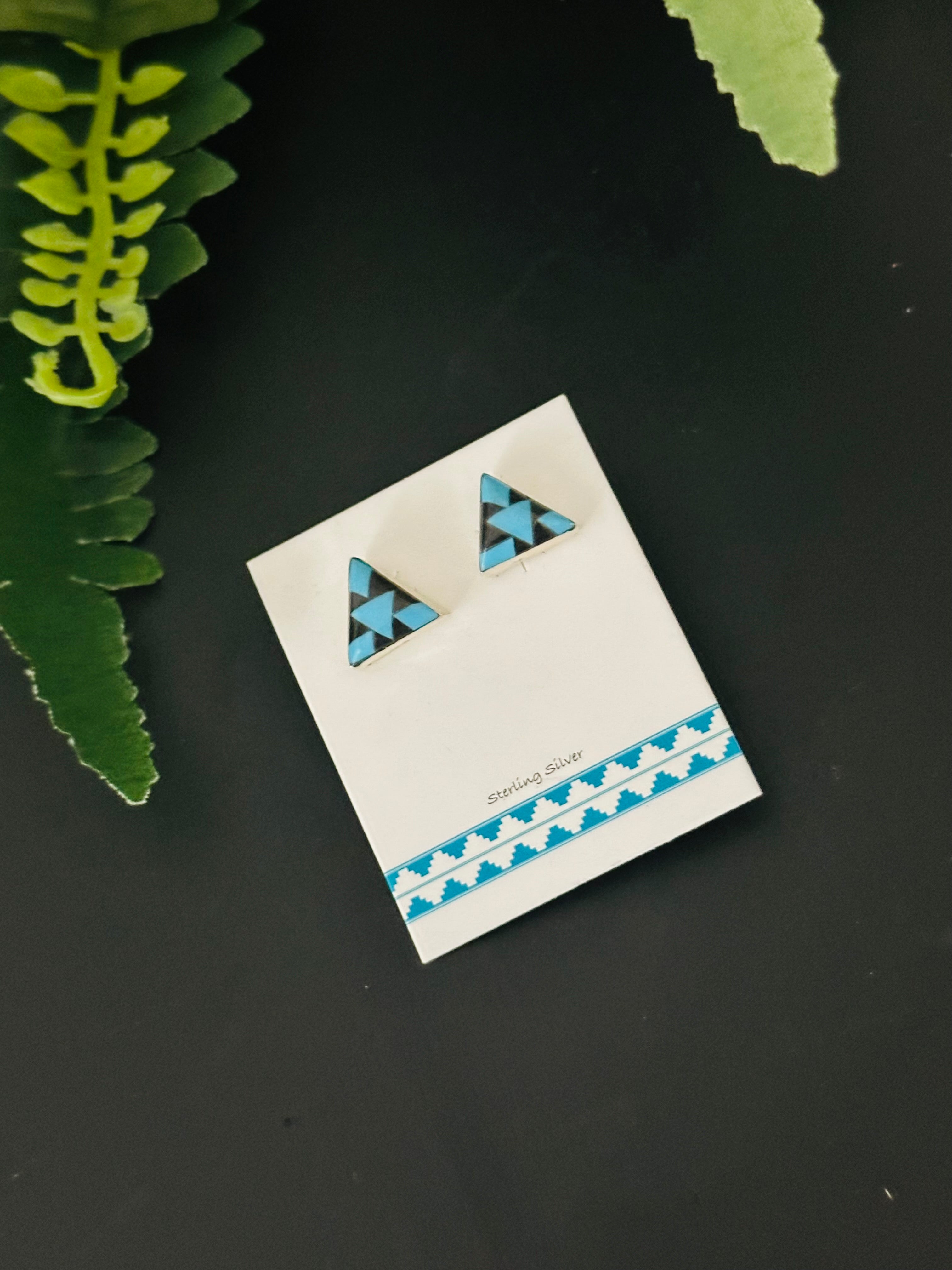 Navajo Made Multi Stone & Sterling Silver Inlay Post Earrings