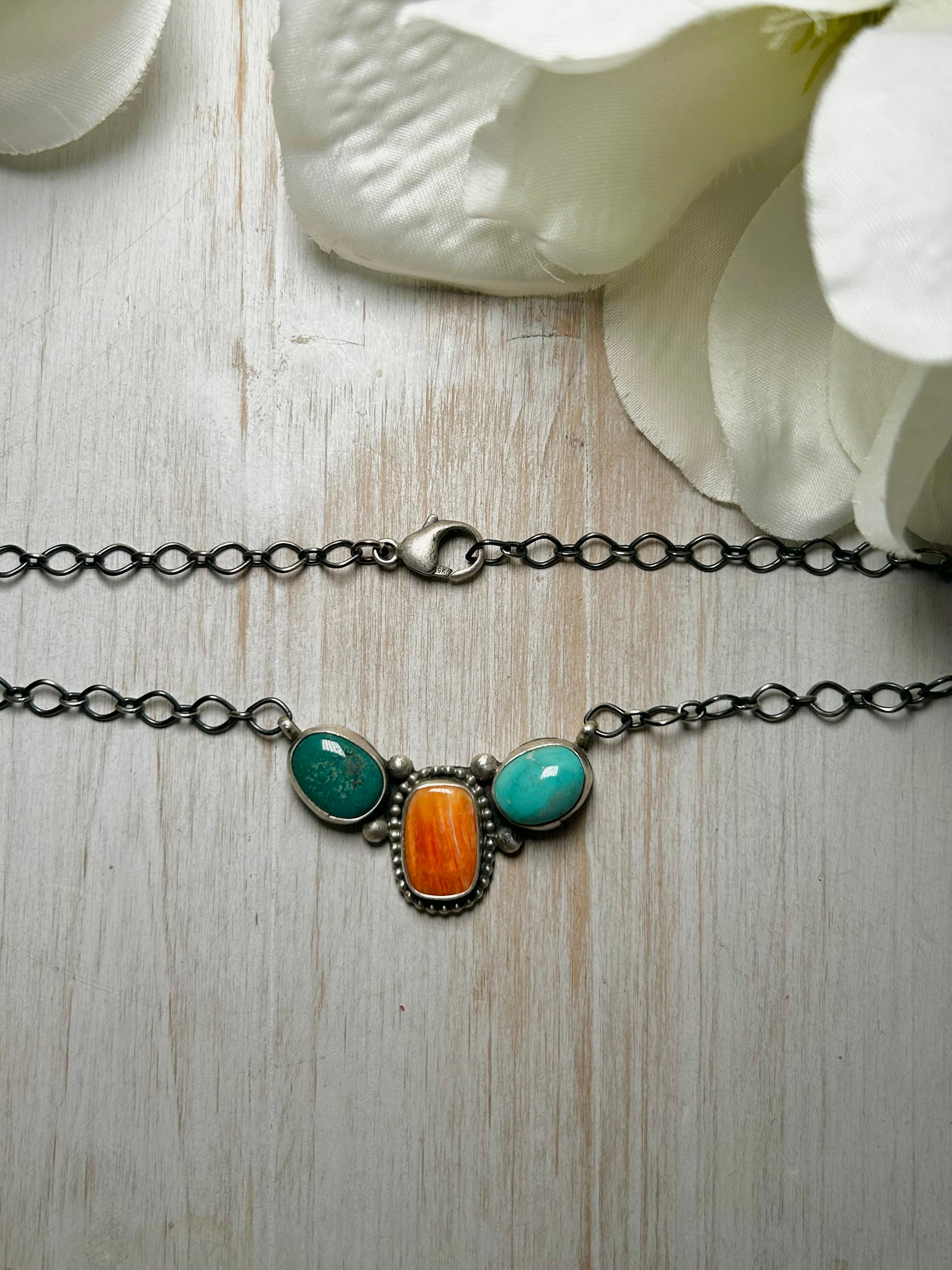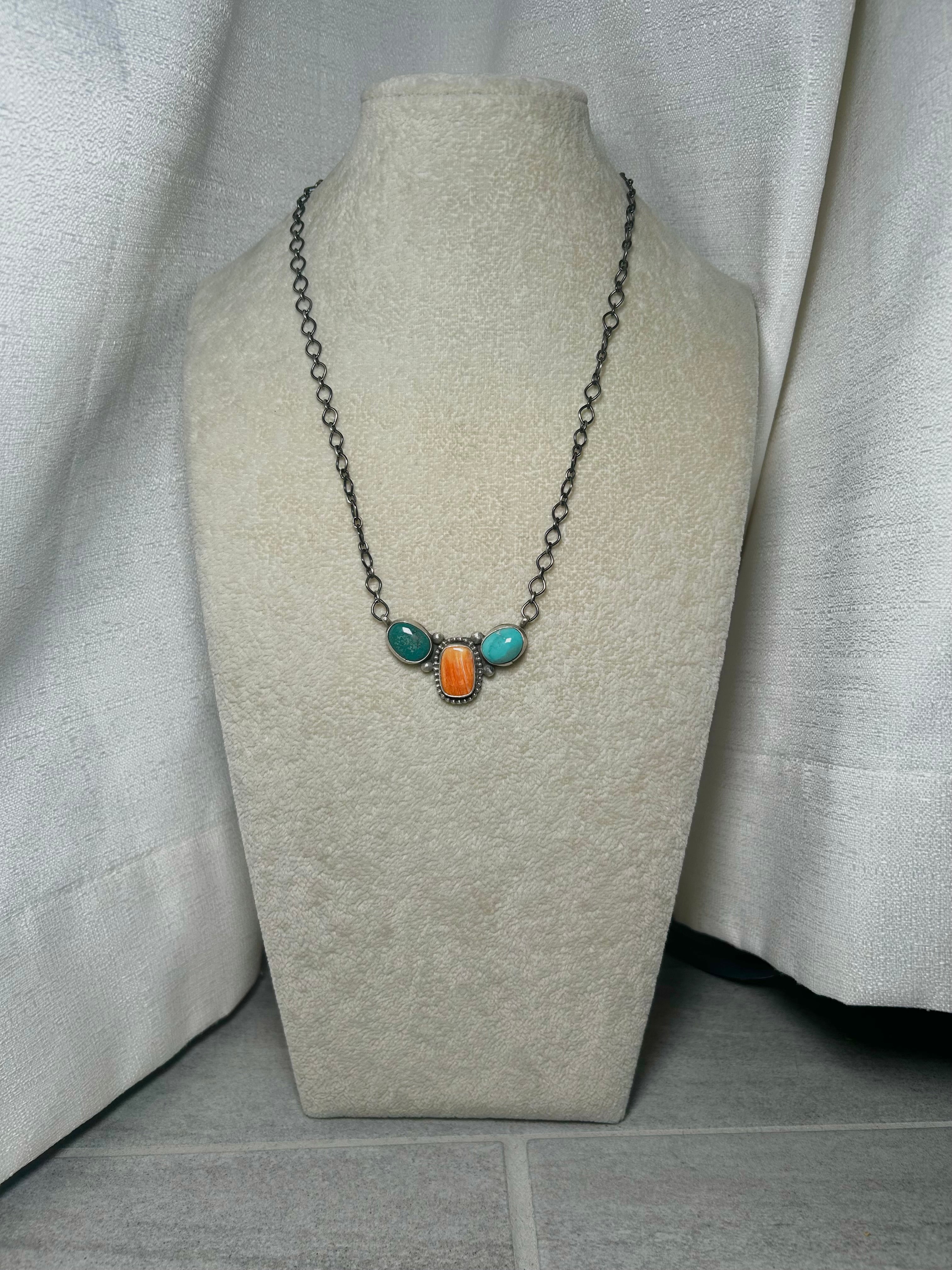 Navajo Made Multi Stone & Sterling Silver Necklace