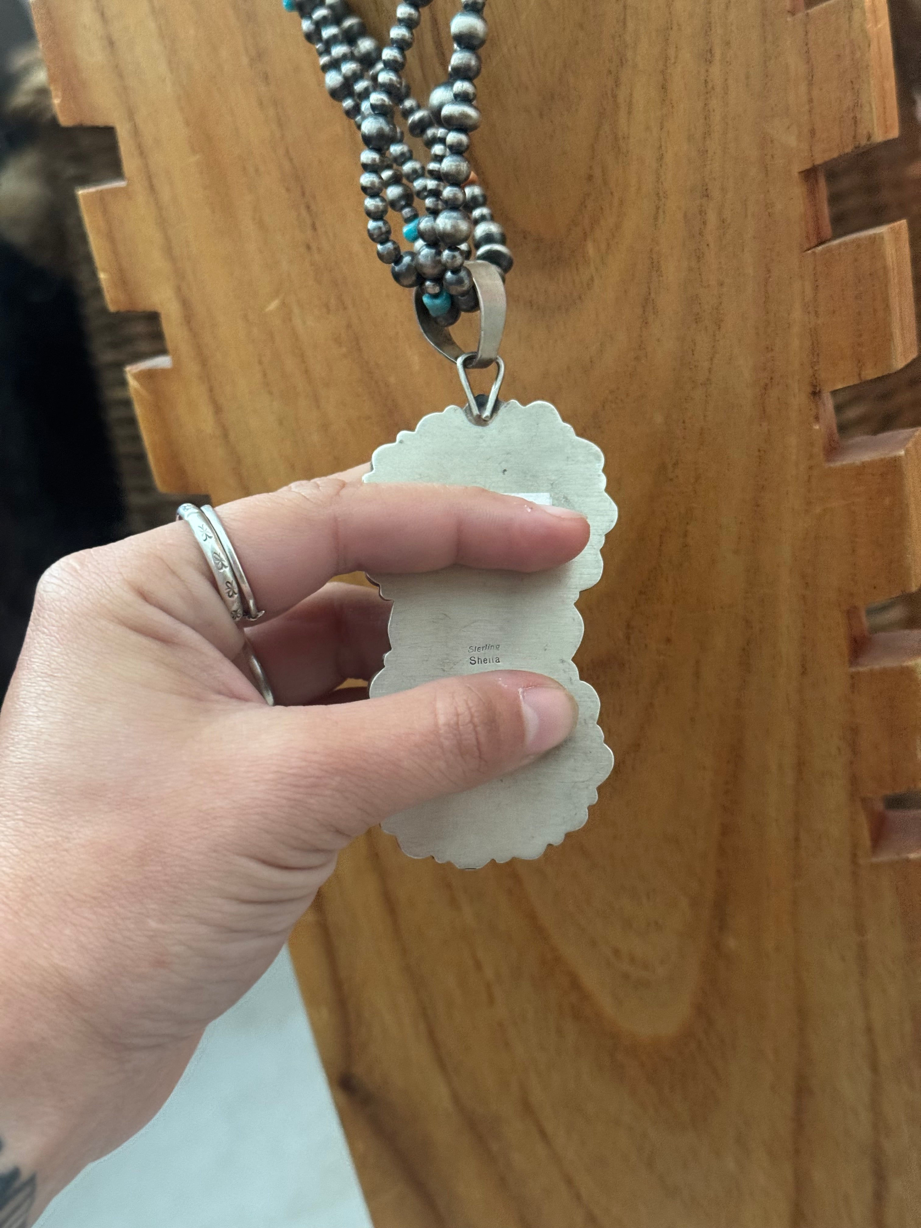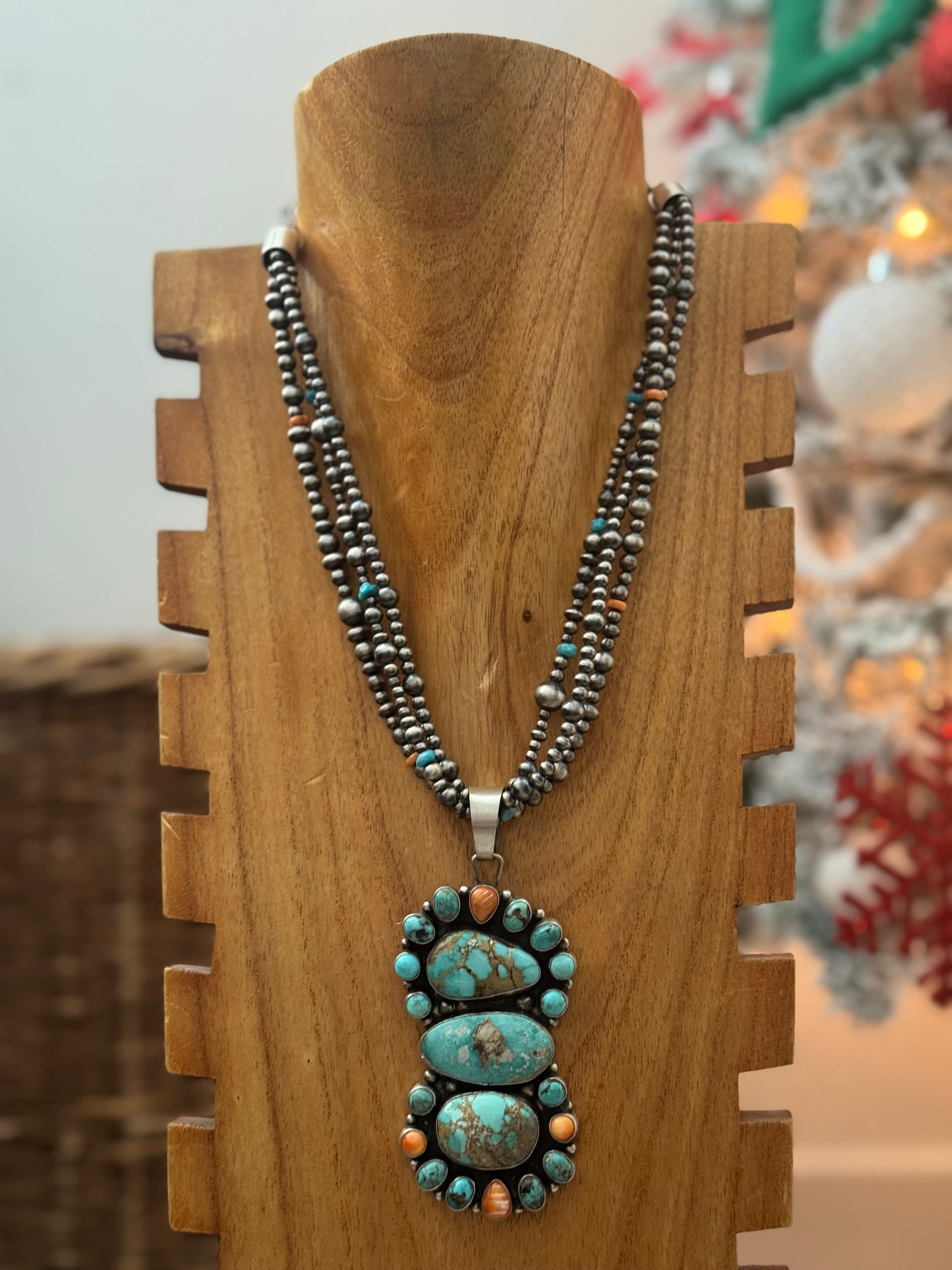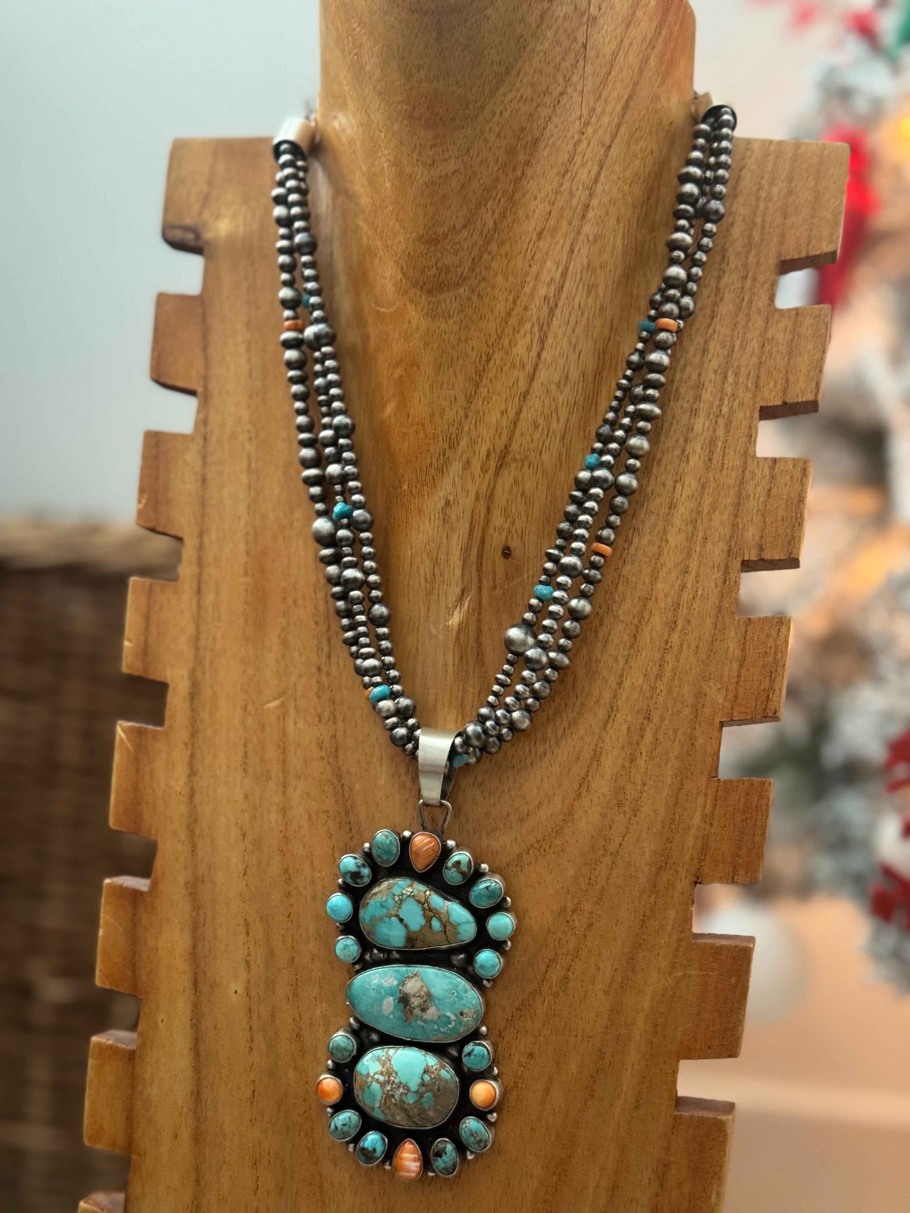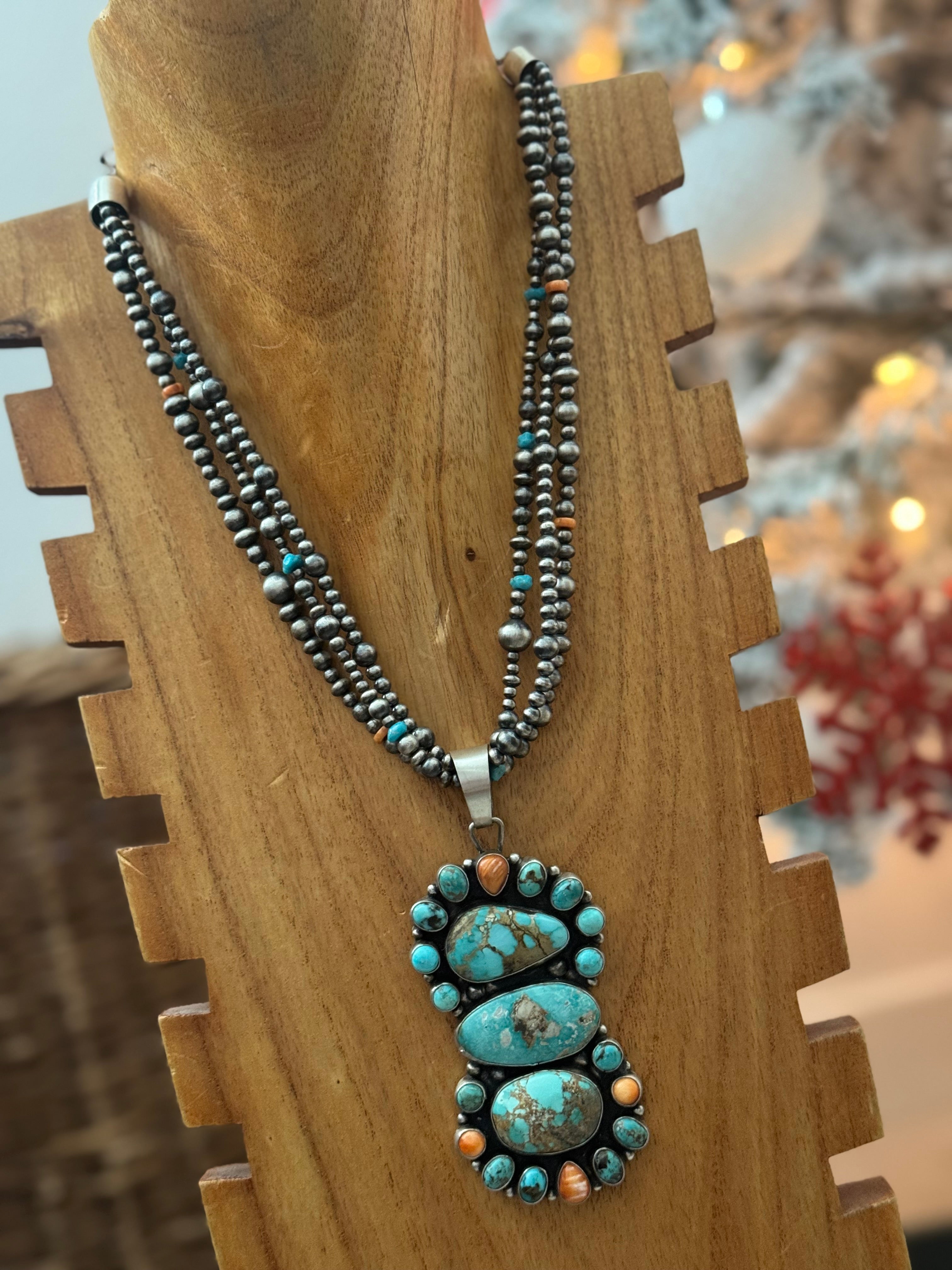 Navajo Made Multi Stone & Sterling Silver Pearl Cluster Necklace