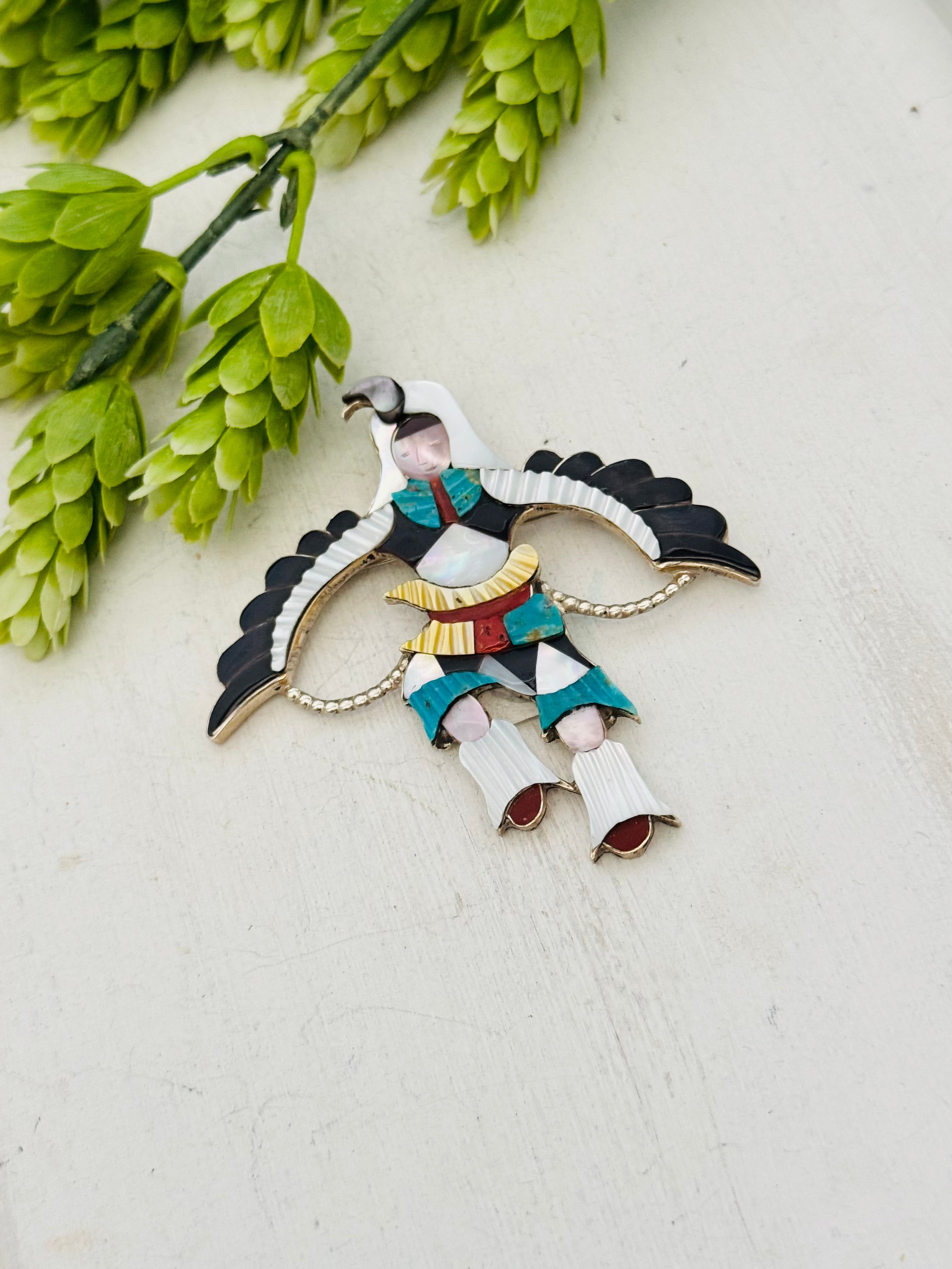 Jonathan Bayook Multi Stone & Sterling Silver Pendant/Pin . It measures 3 inches long and 2 7/8 inches wide. Pendant Only. Signed by the artist and stamped sterling silver.