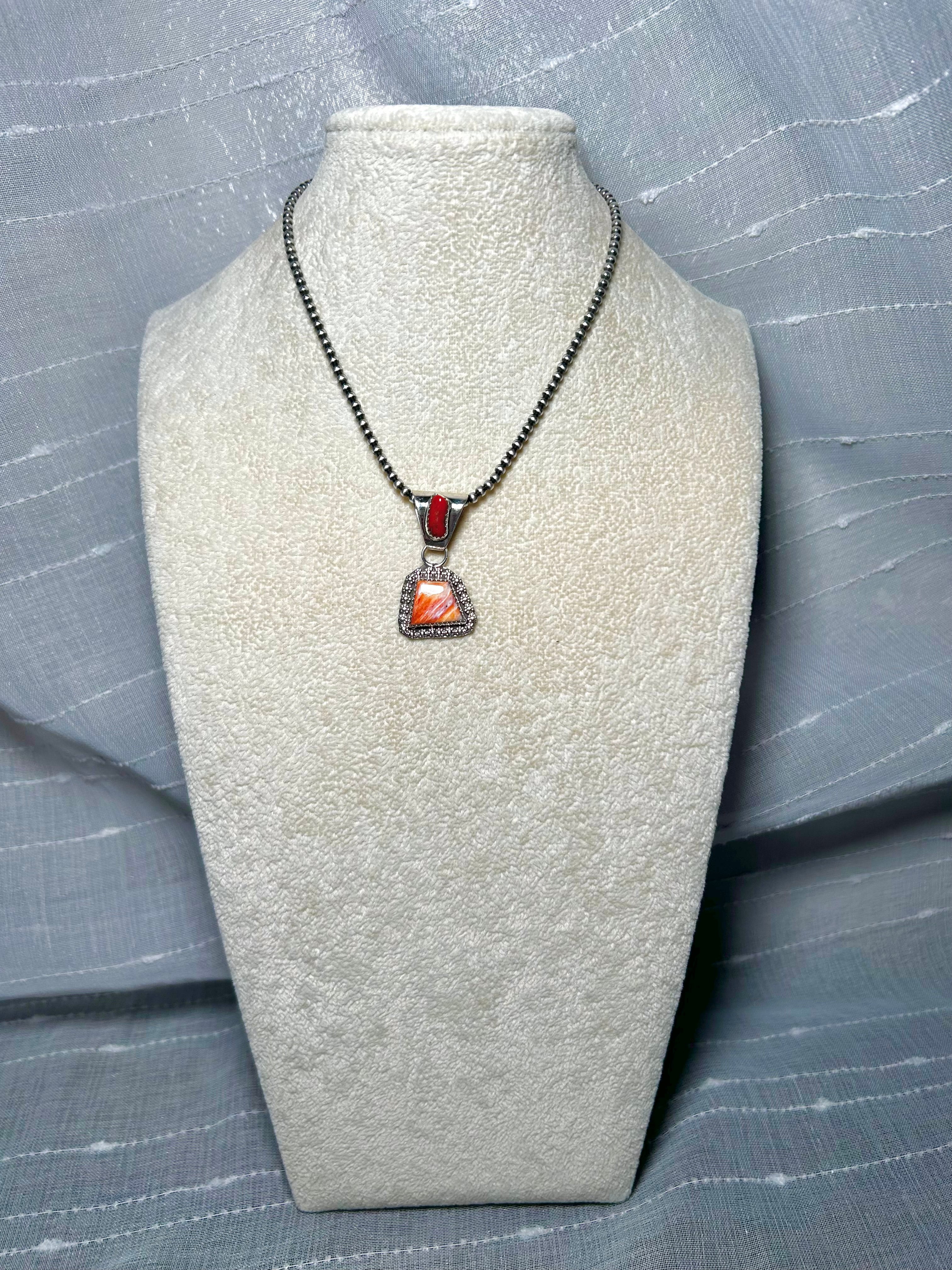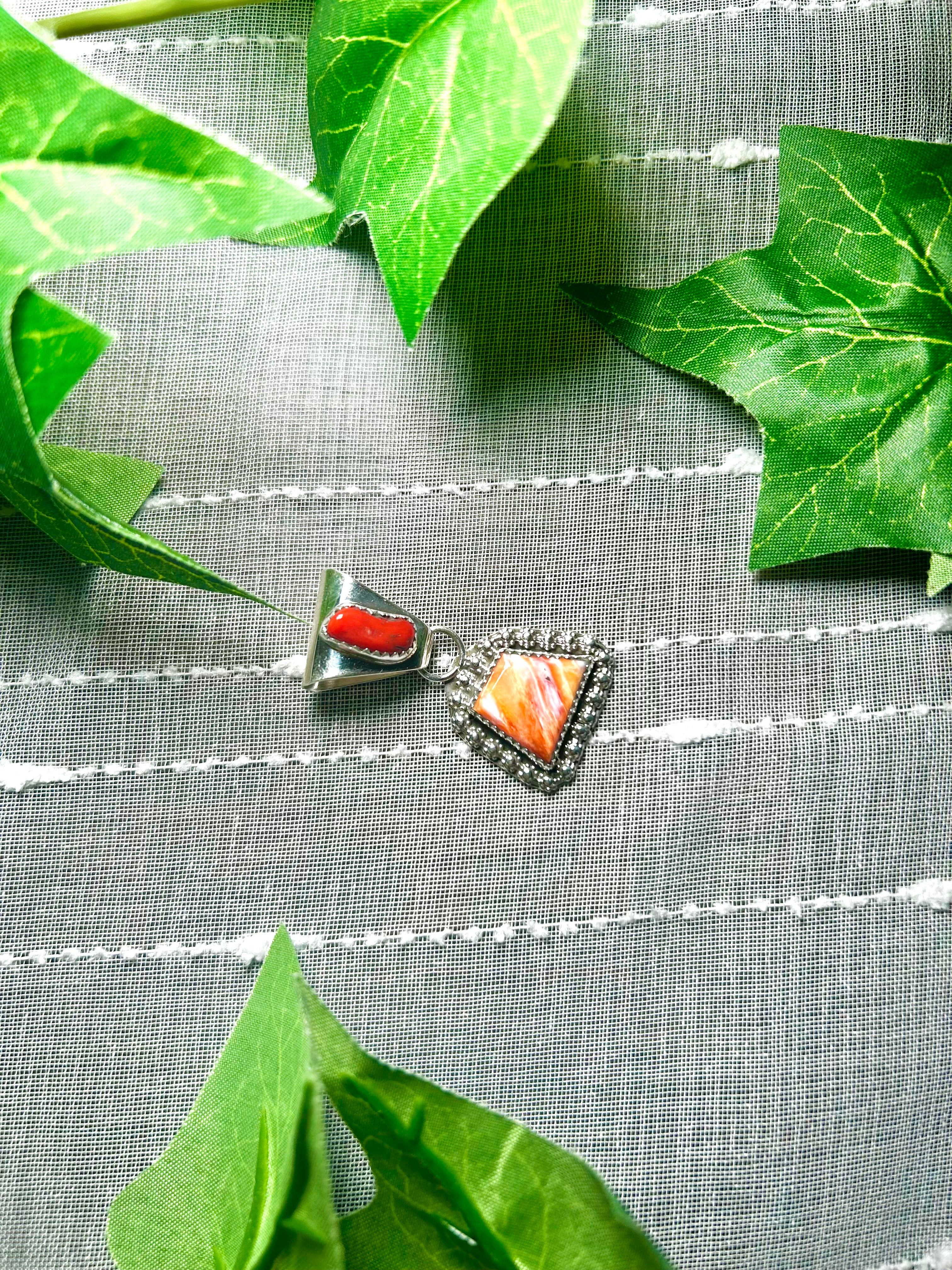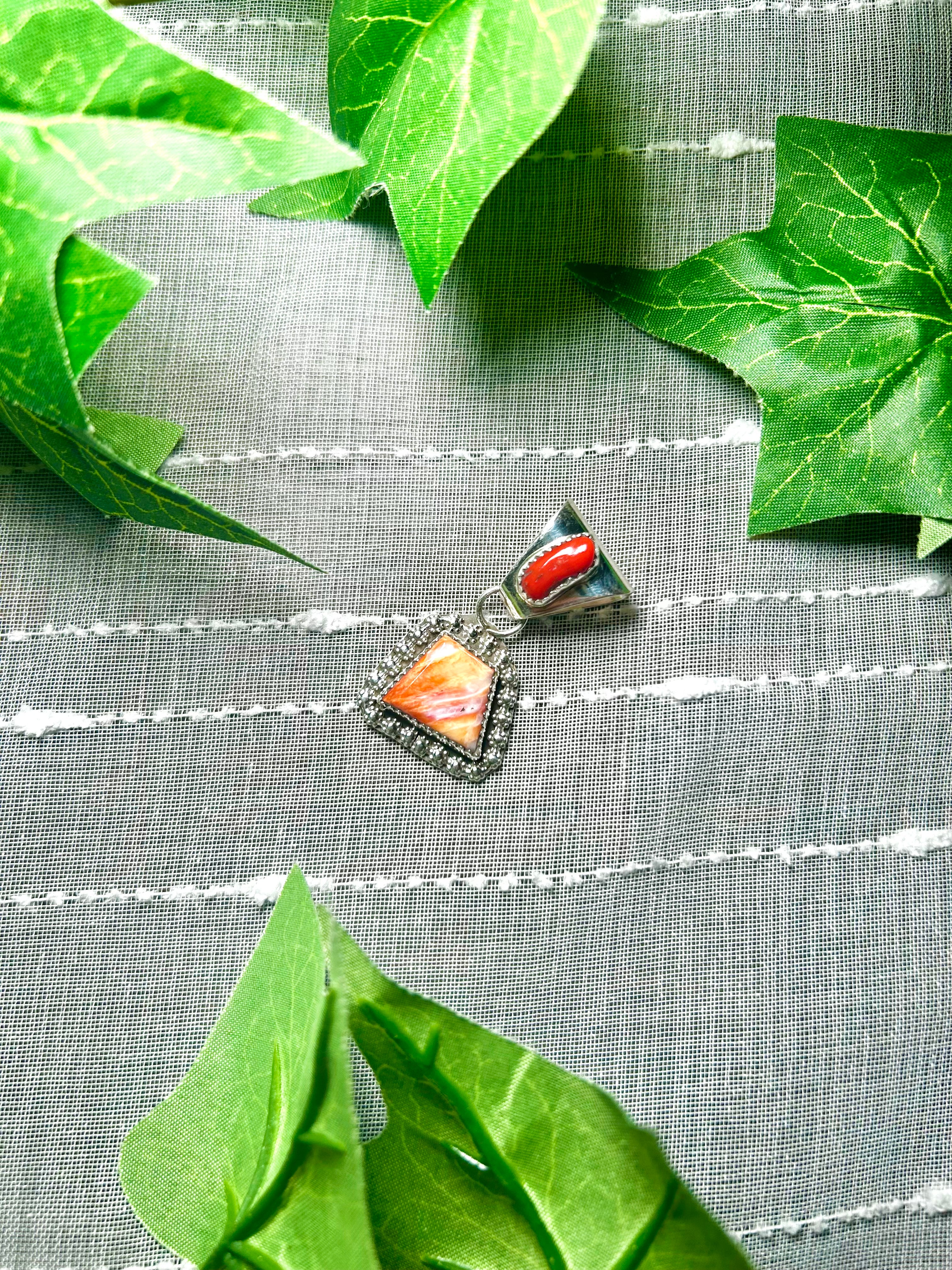 Navajo Made Multi Stone & Sterling Silver Pendant. It measures 1 1/2 inches long and 7/8 of an inch wide. Pendant Only! Signed by the artist and stamped sterling silver.