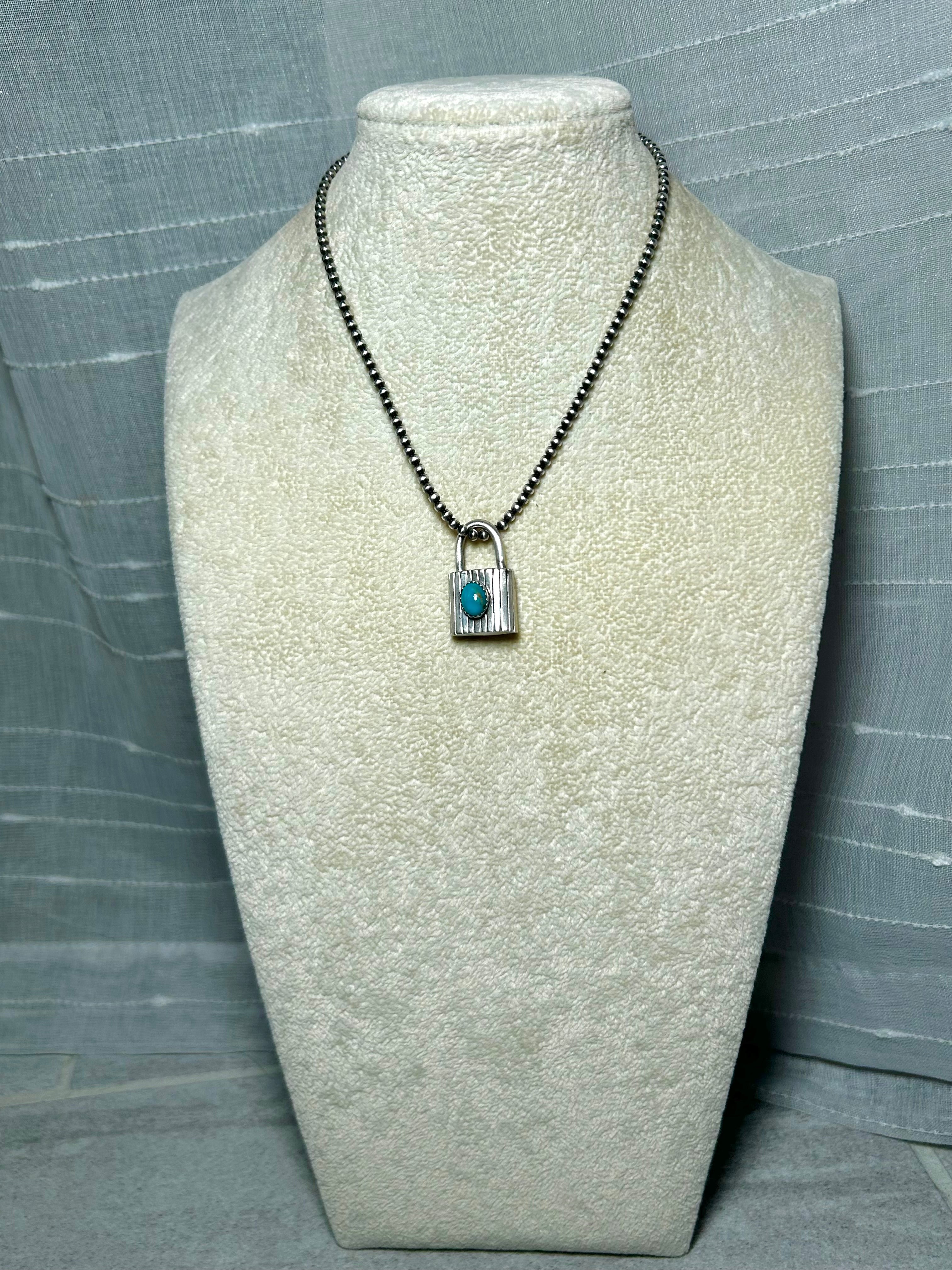 Navajo Made Kingman Turquoise & Sterling Silver Pendant
