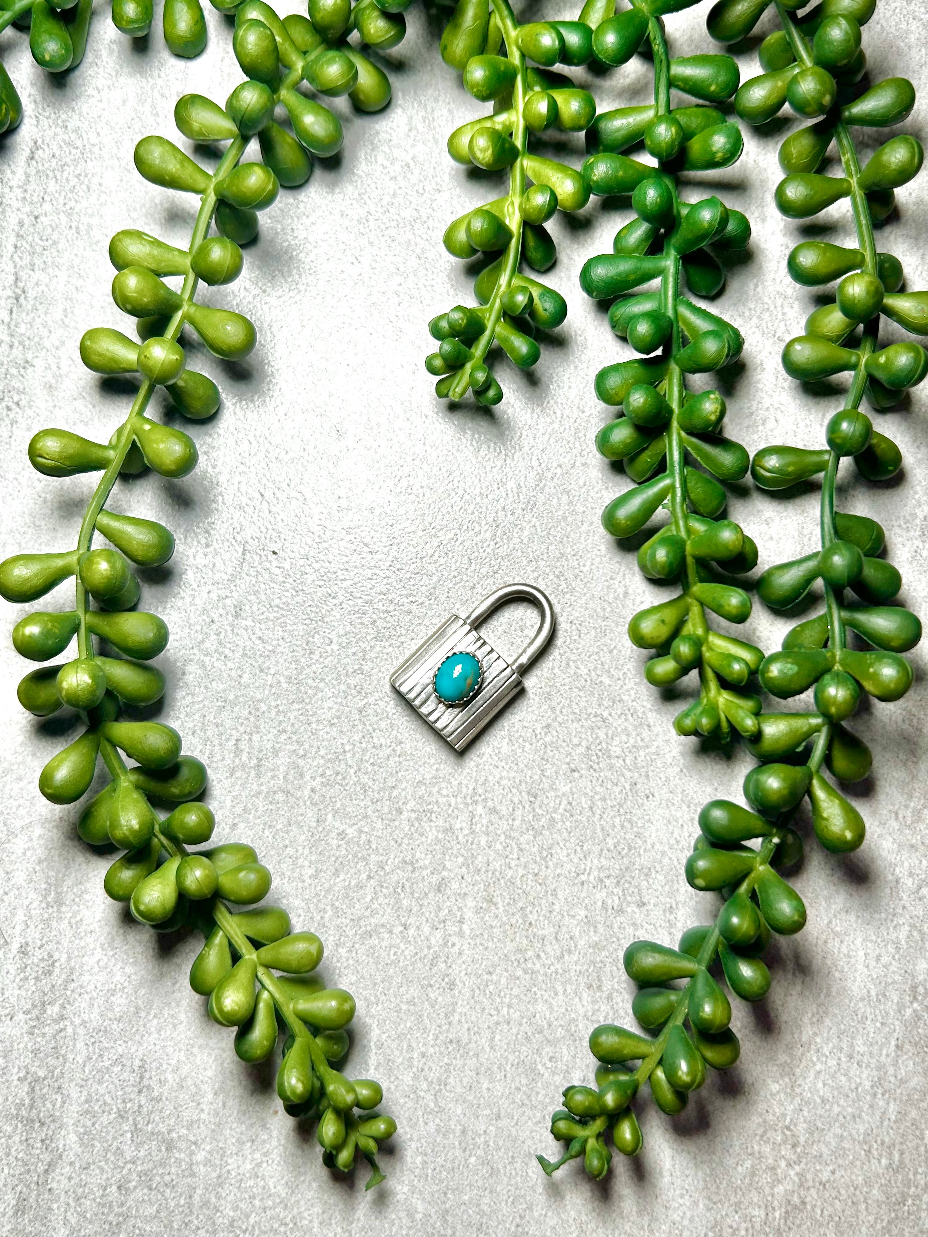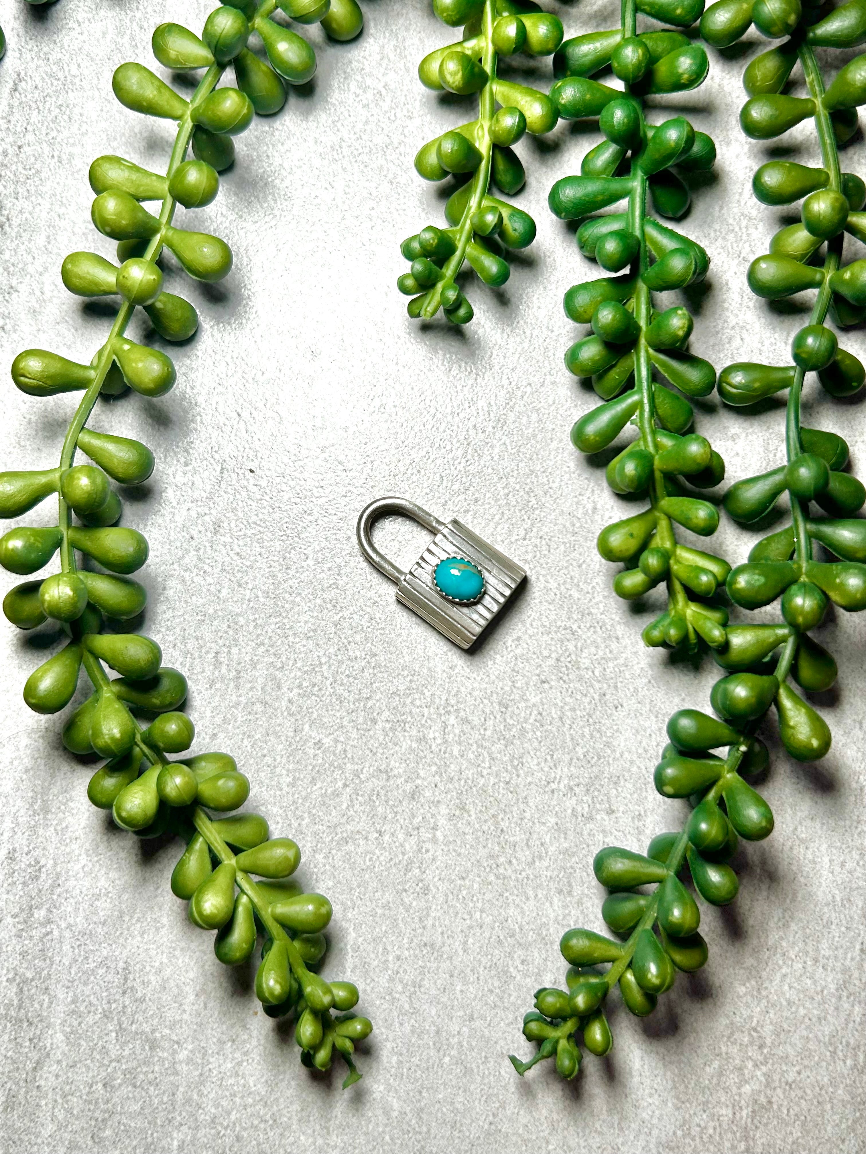 Navajo Made Kingman Turquoise & Sterling Silver Pendant. It measures 1 1/8 inches long and 3/4 of an inch wide. Pendant Only! Signed by the artist and stamped sterling silver.
