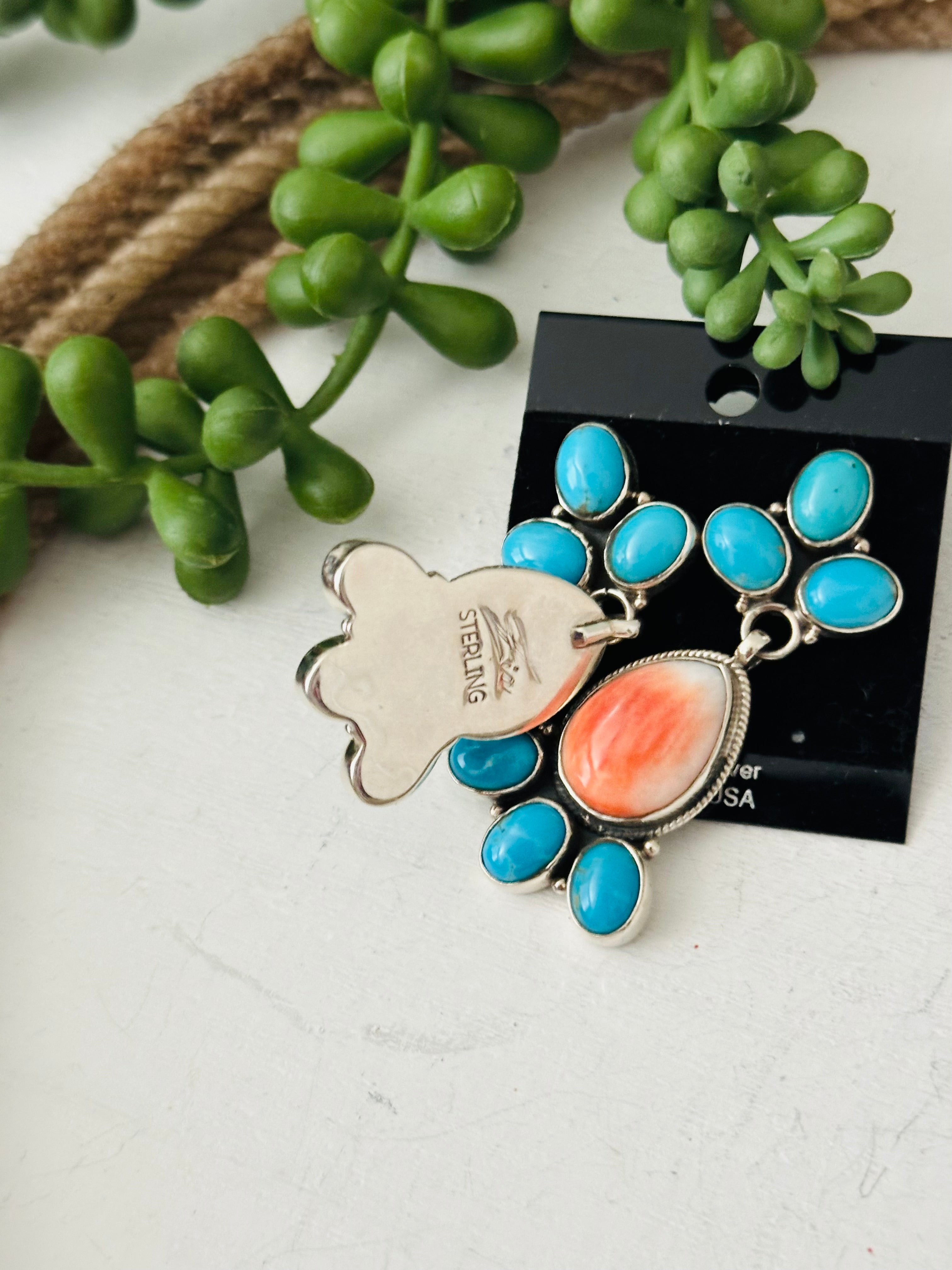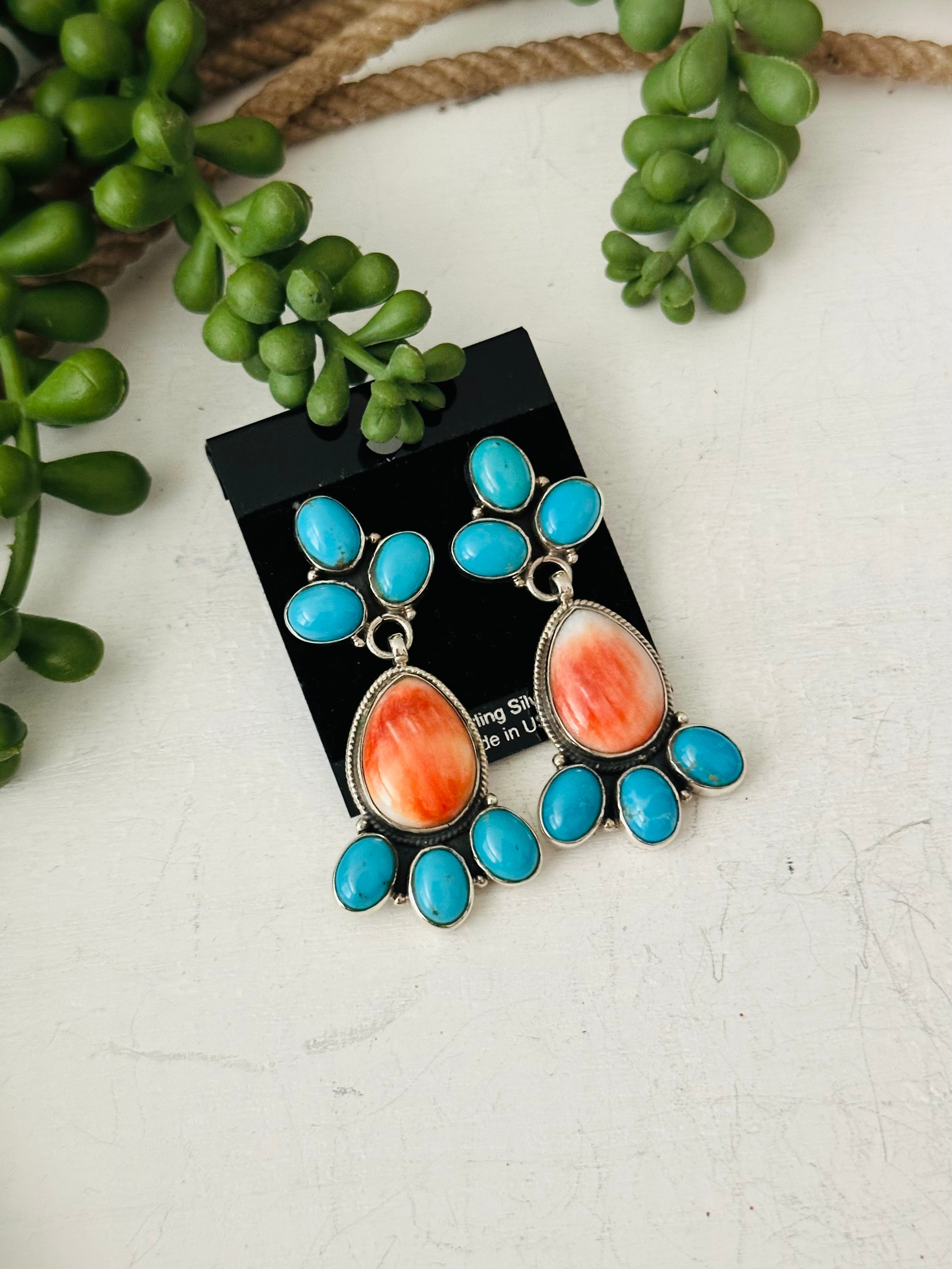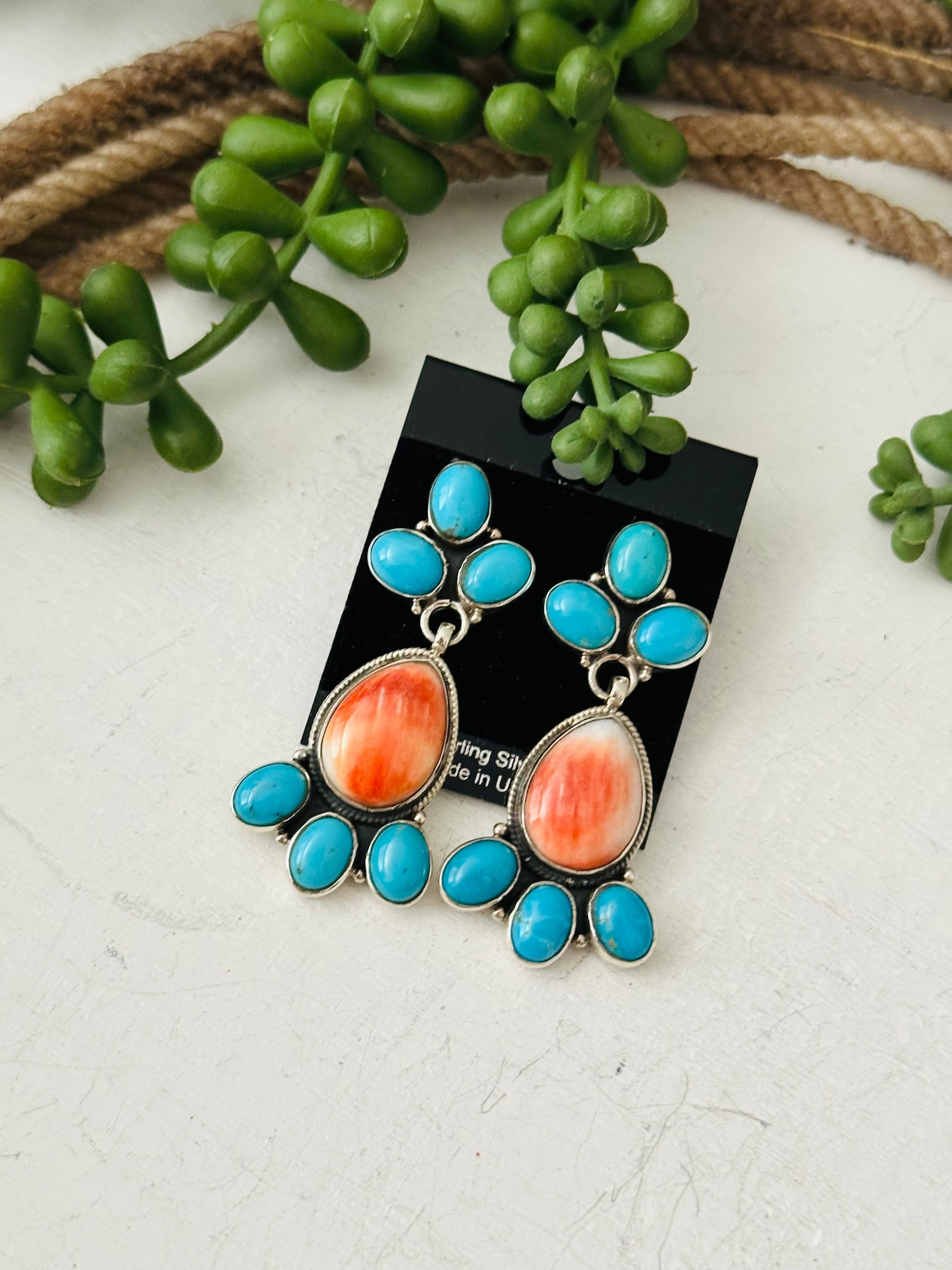 Navajo Made Multi Stone & Sterling Silver Post Dangle Earrings