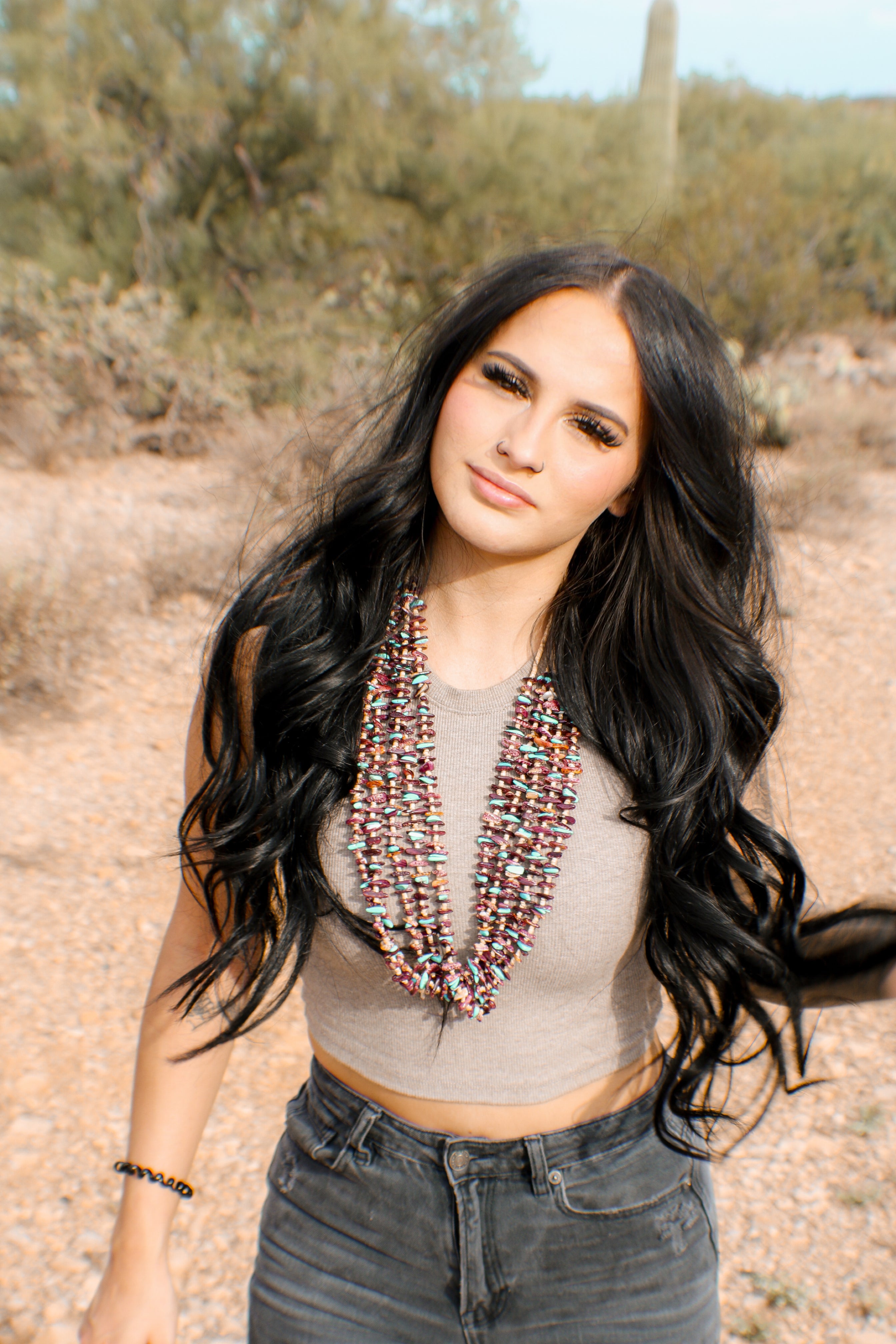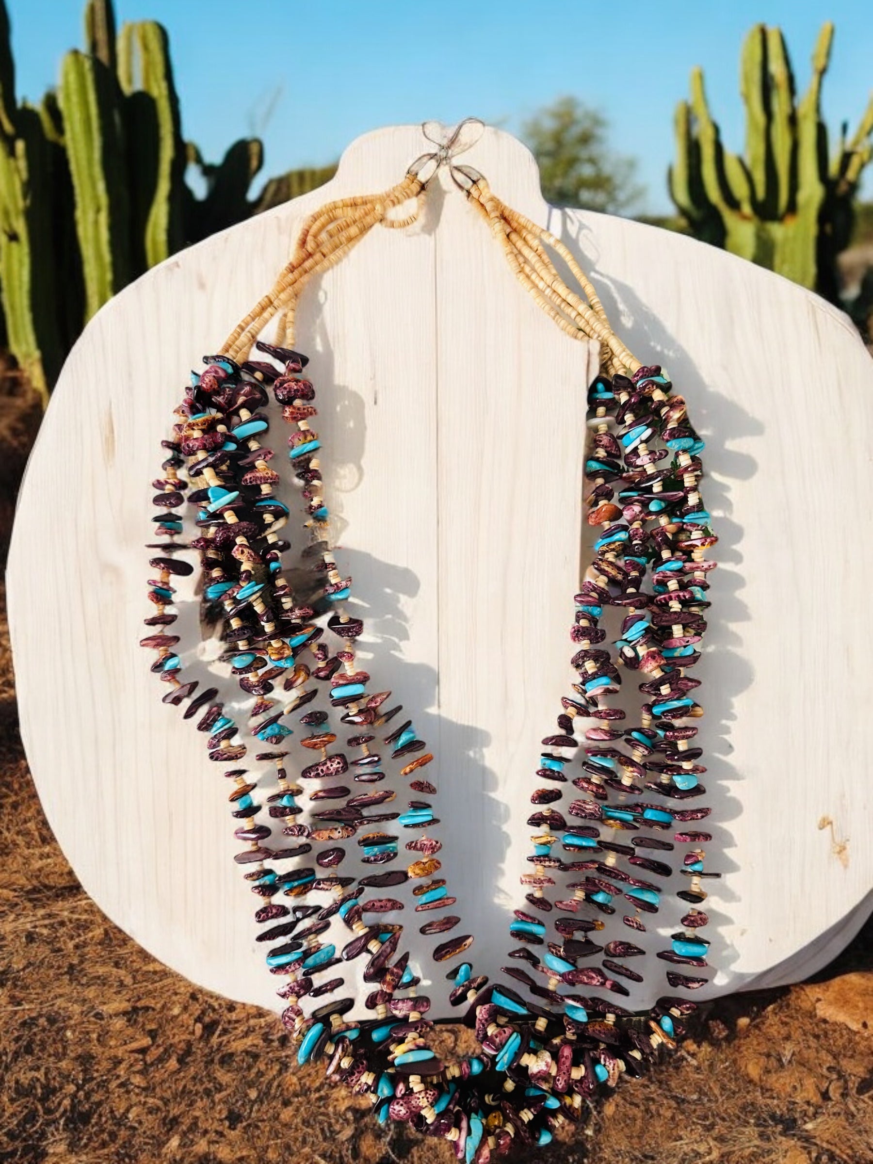Navajo Strung Multi Stone & Sterling Silver Multi Strand Beaded Necklace. It has 5 strands and the necklace itself measures 32 inches long. It is a beautiful necklace.