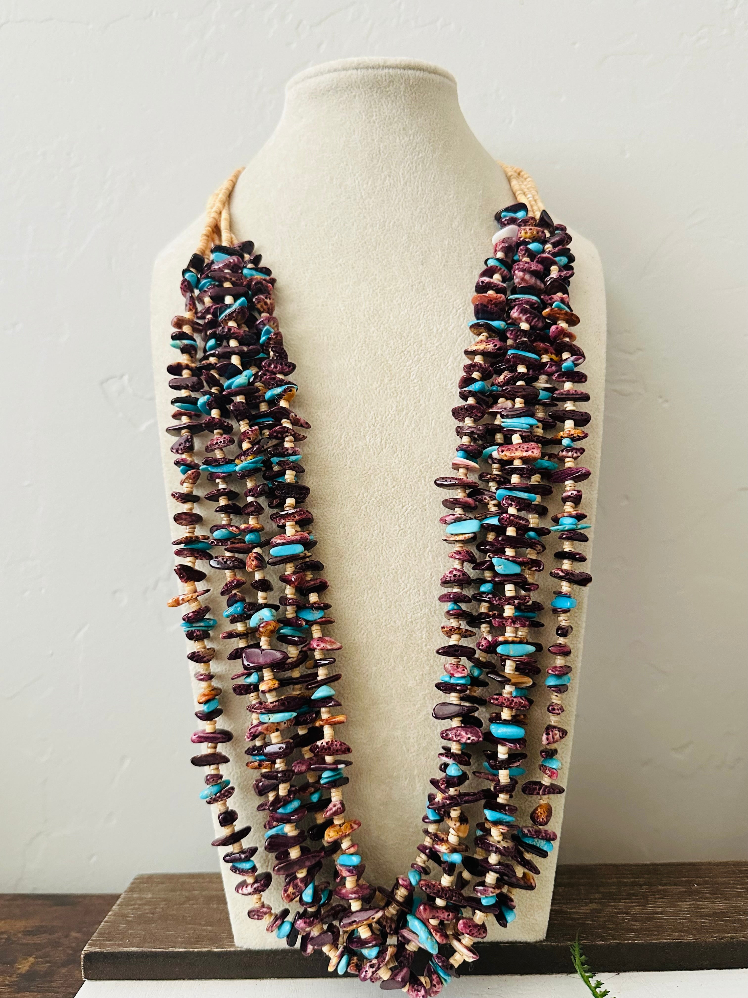 Navajo Strung Multi Stone & Sterling Silver Multi Strand Beaded Necklace