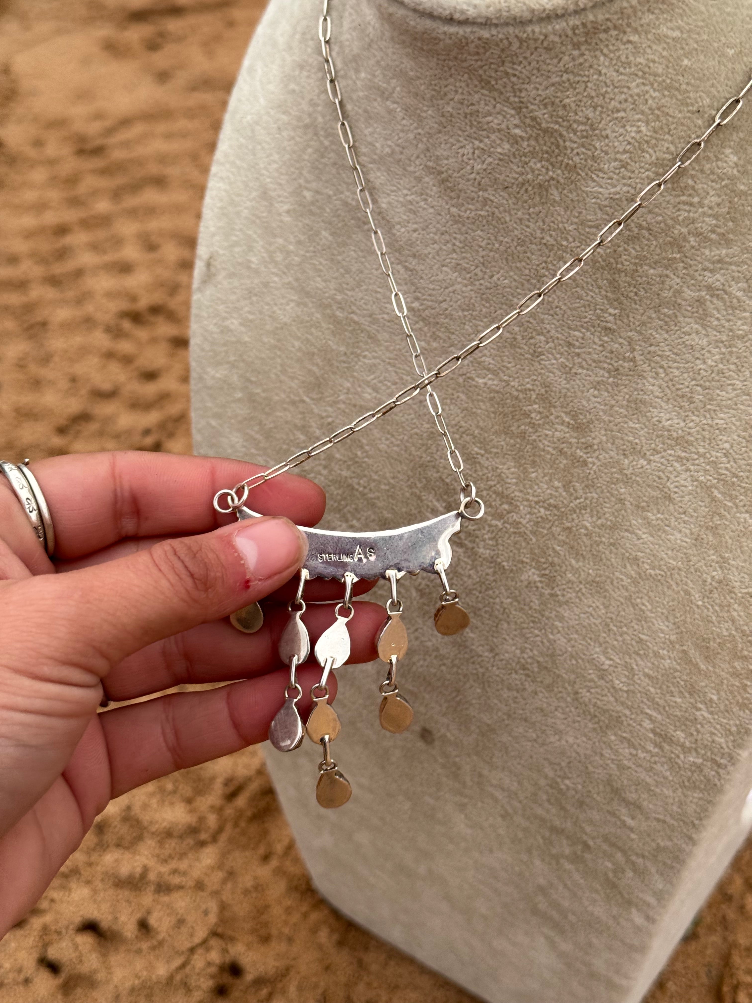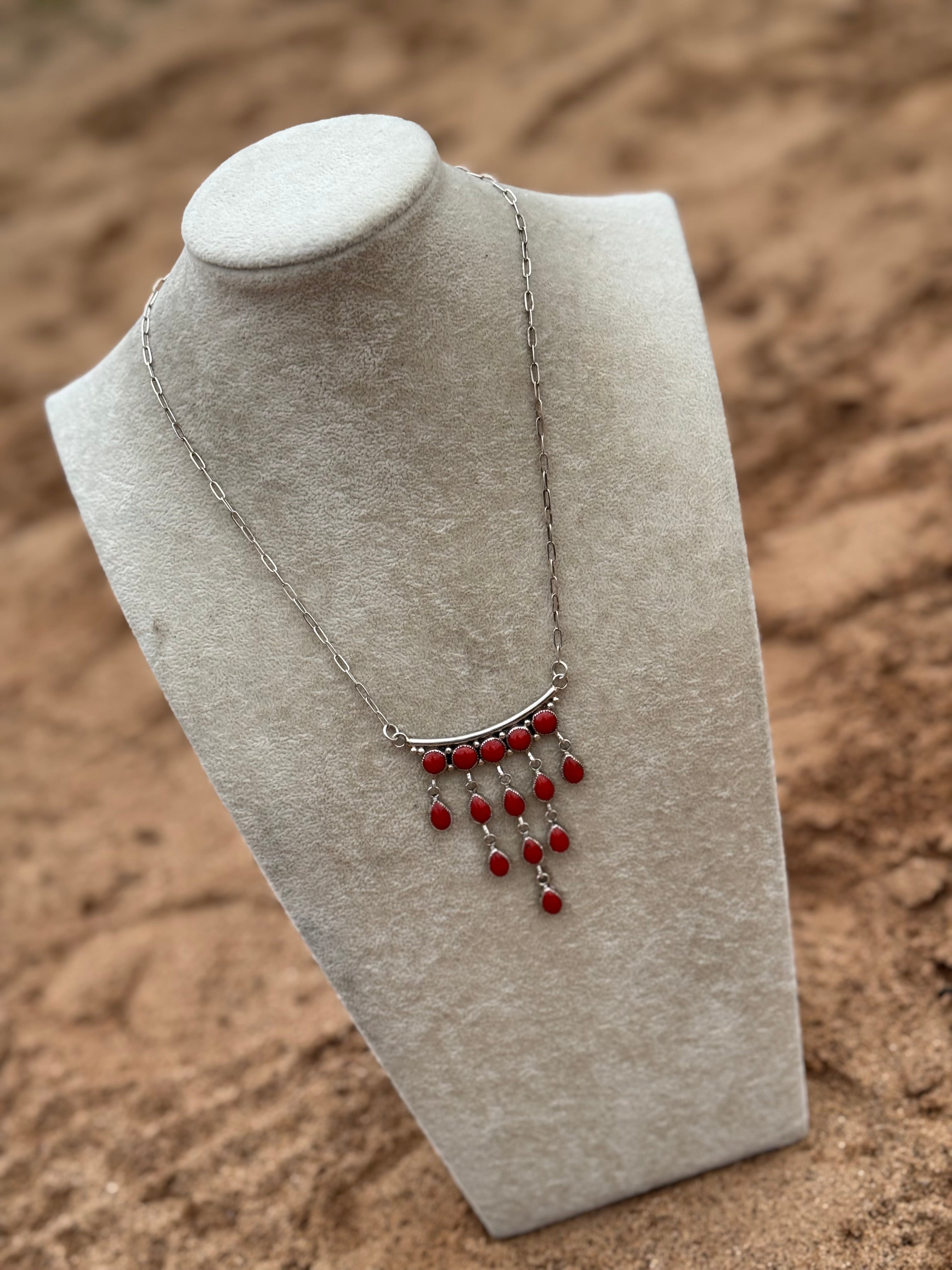 Anna Spencer Natural Coral & Sterling Silver Necklace Set. It measures 22 inches long while the chain alone measures 17 inches long. Signed and stamped.