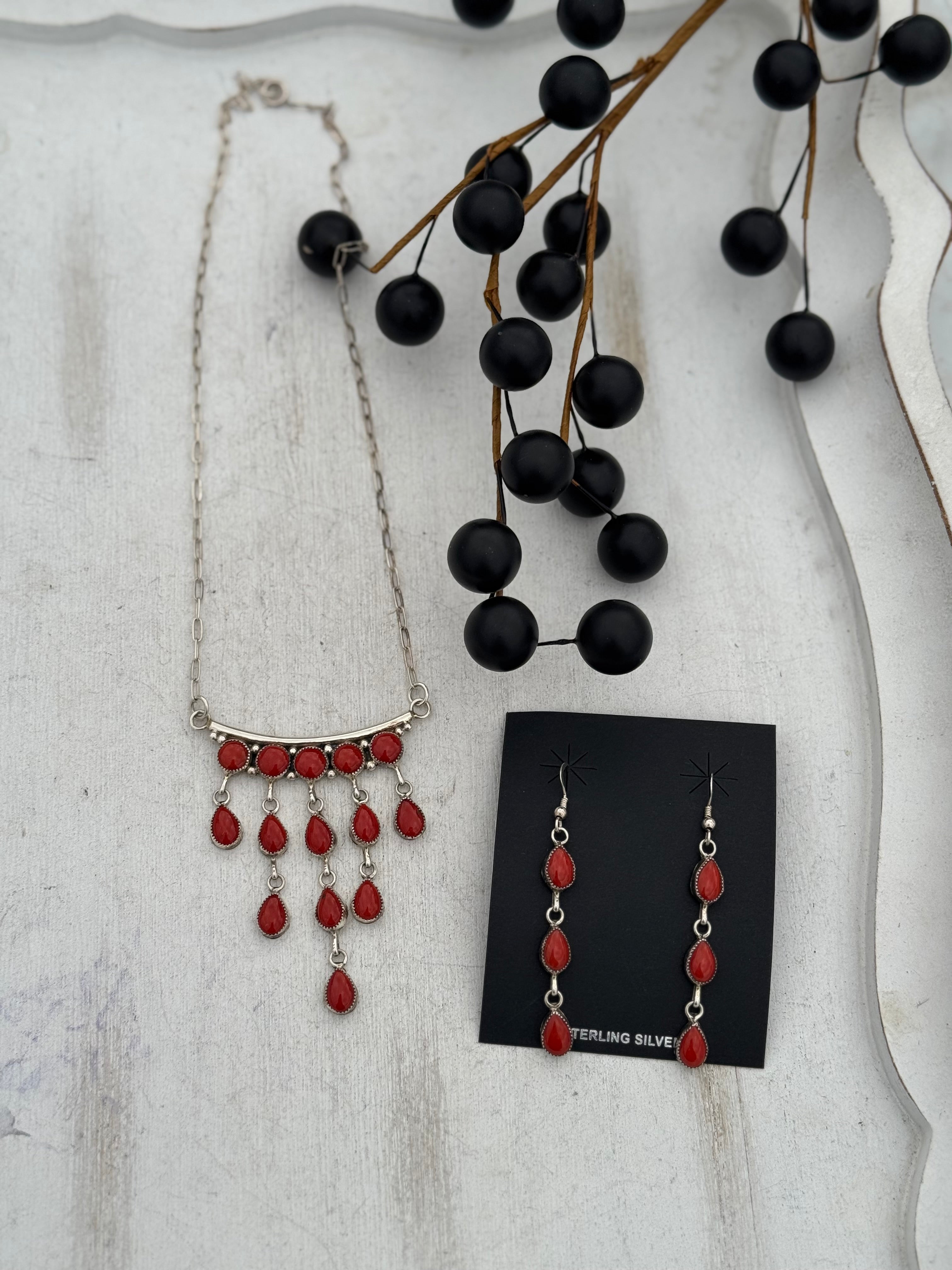 Anna Spencer Natural Coral & Sterling Silver Necklace Set