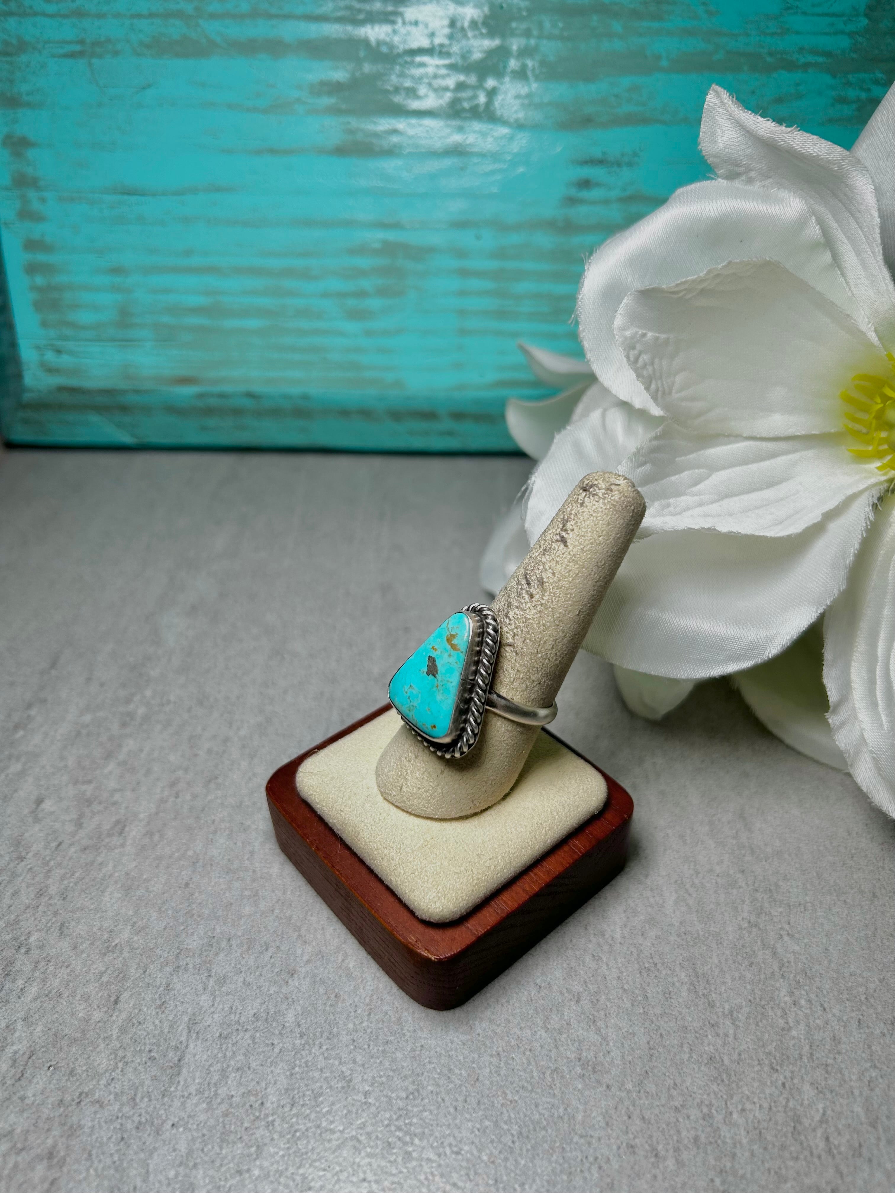 Johnny Dixon Kingman Turquoise & Sterling Silver Adjustable Ring