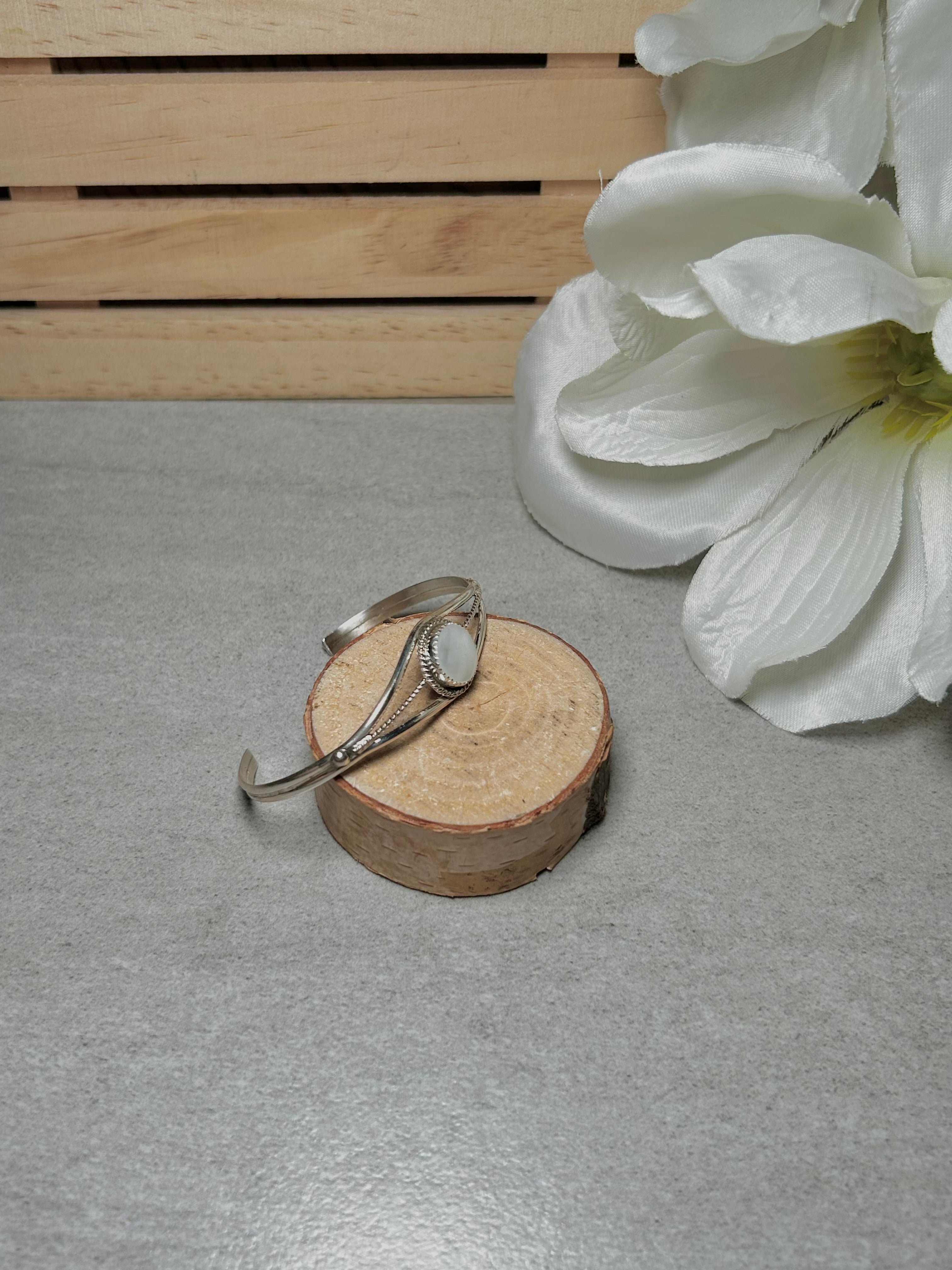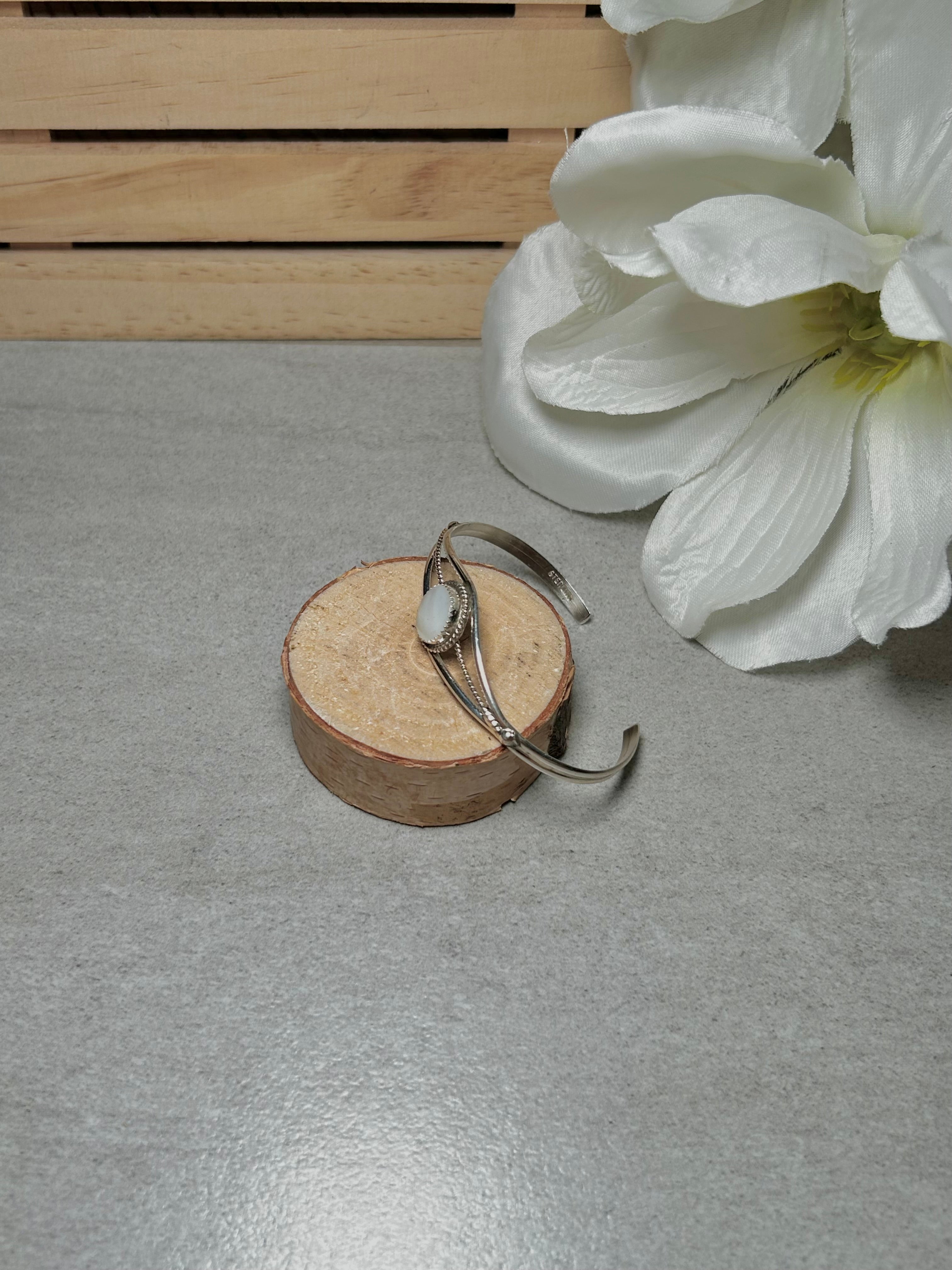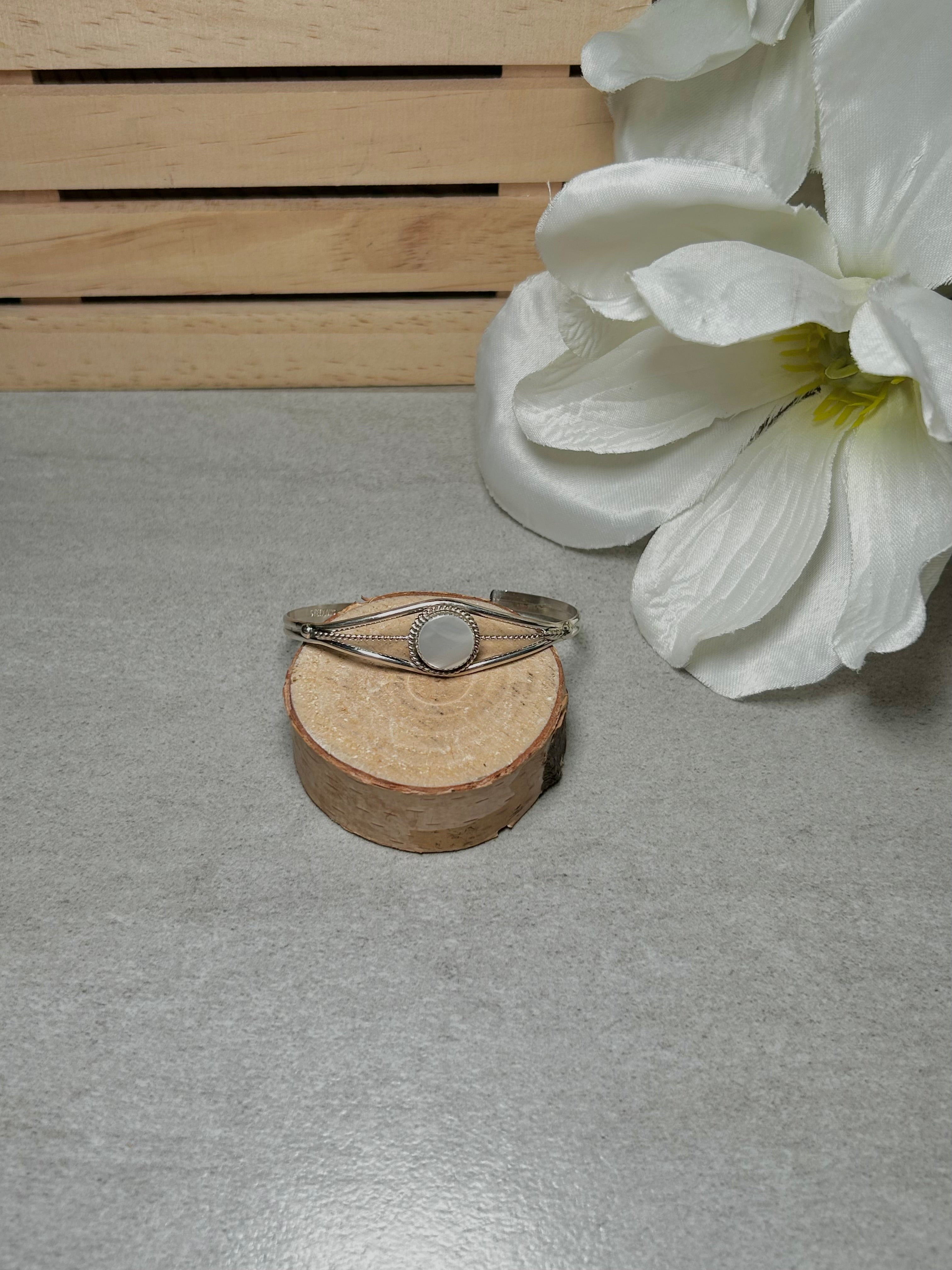 Navajo Made Mother of Peral & Sterling Silver Cuff Bracelet