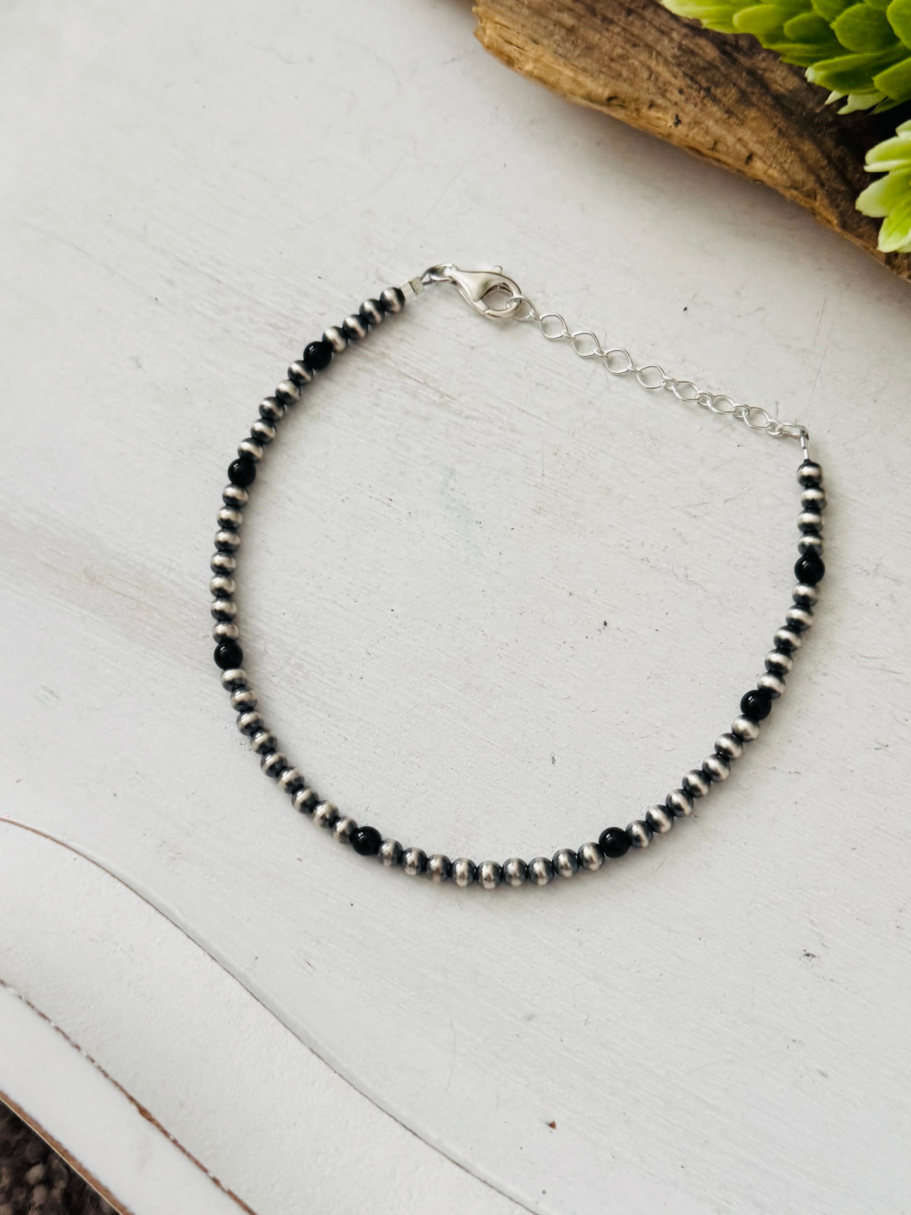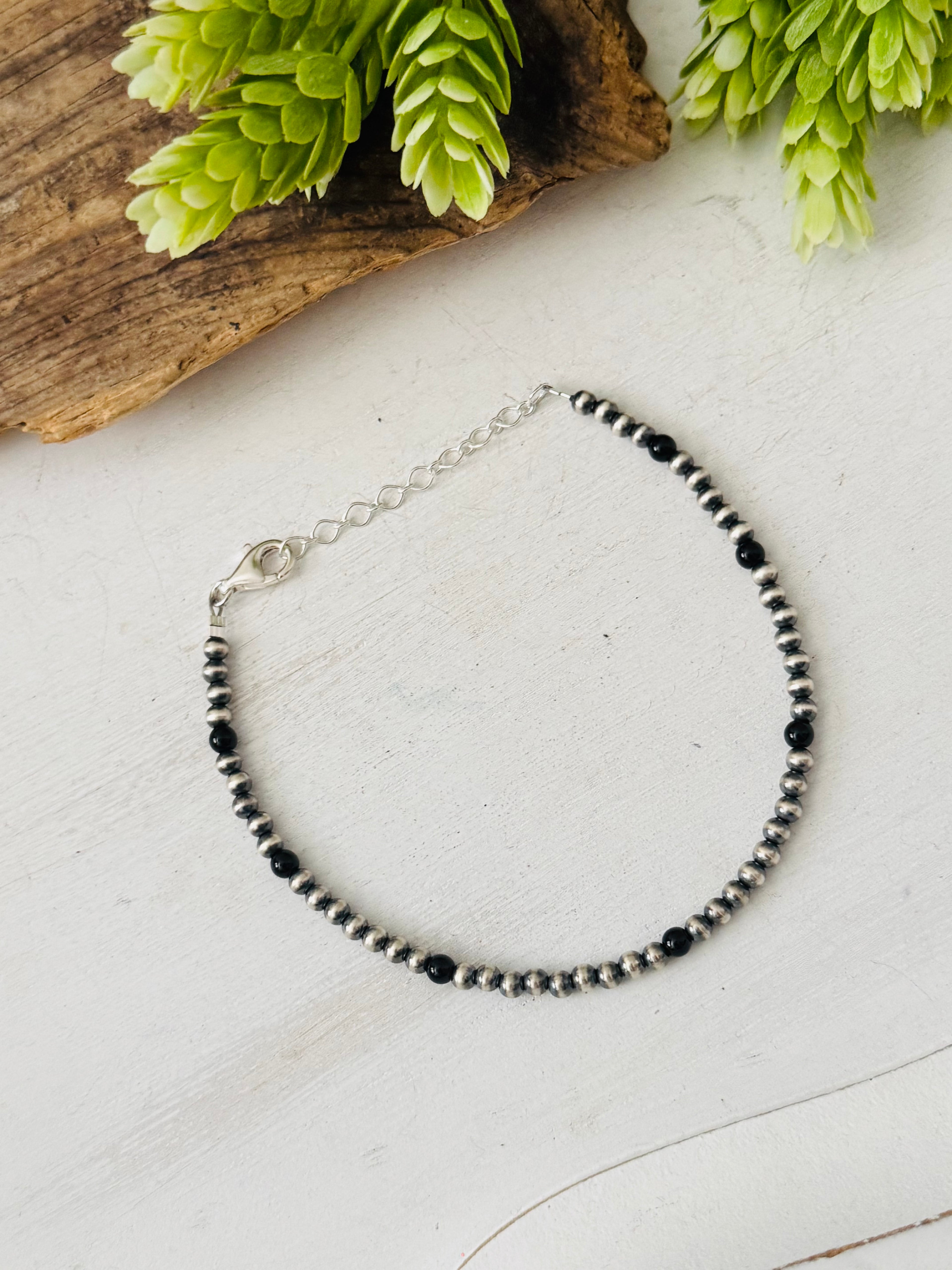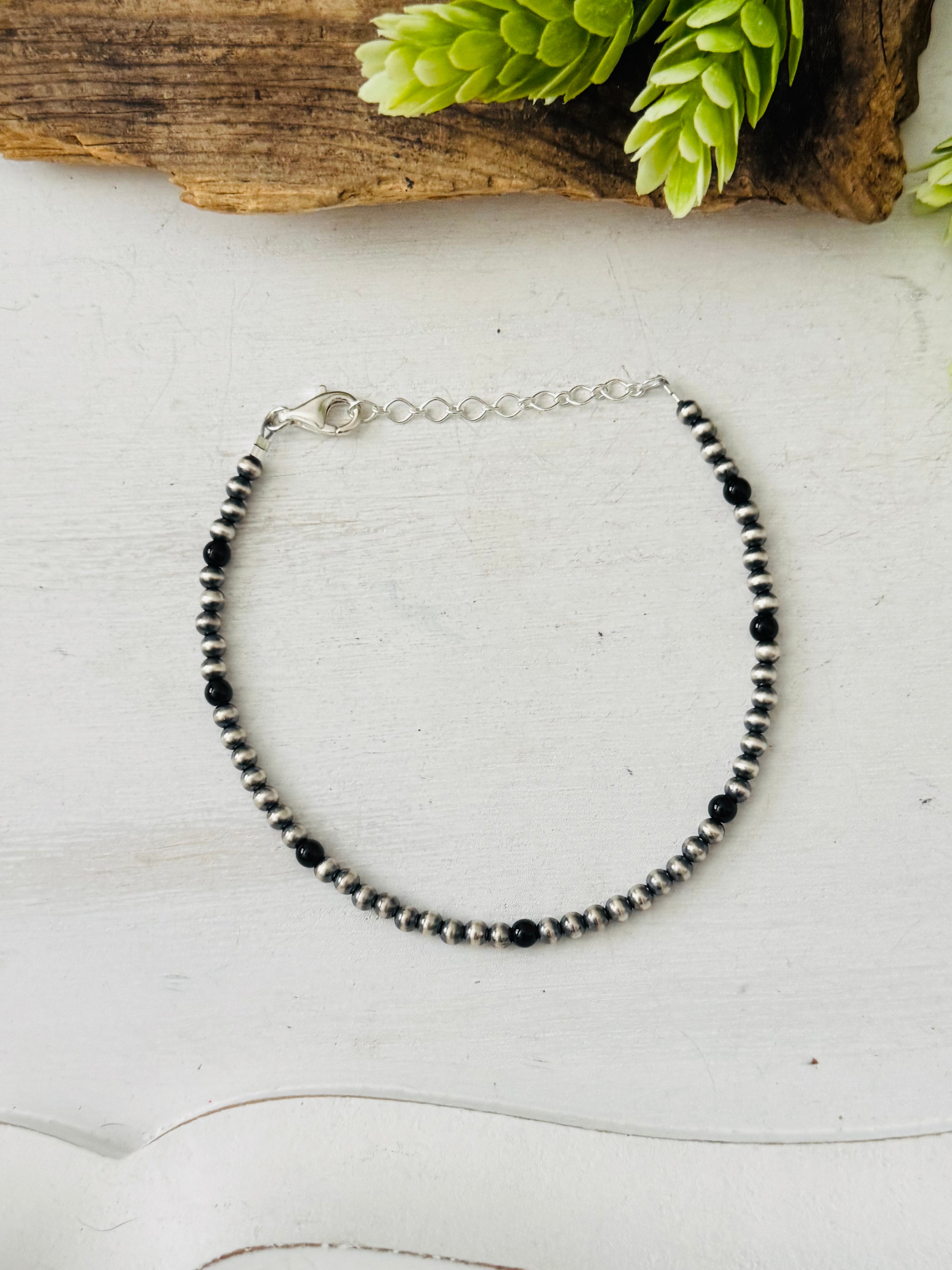 Navajo Made Onyx & Sterling Silver Strung Anklet