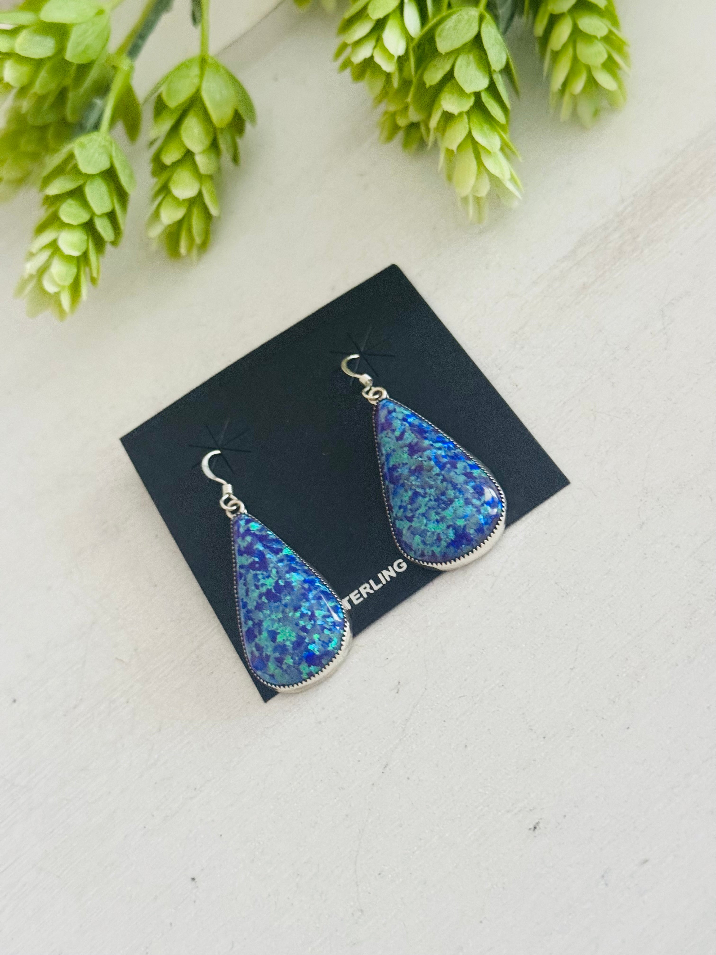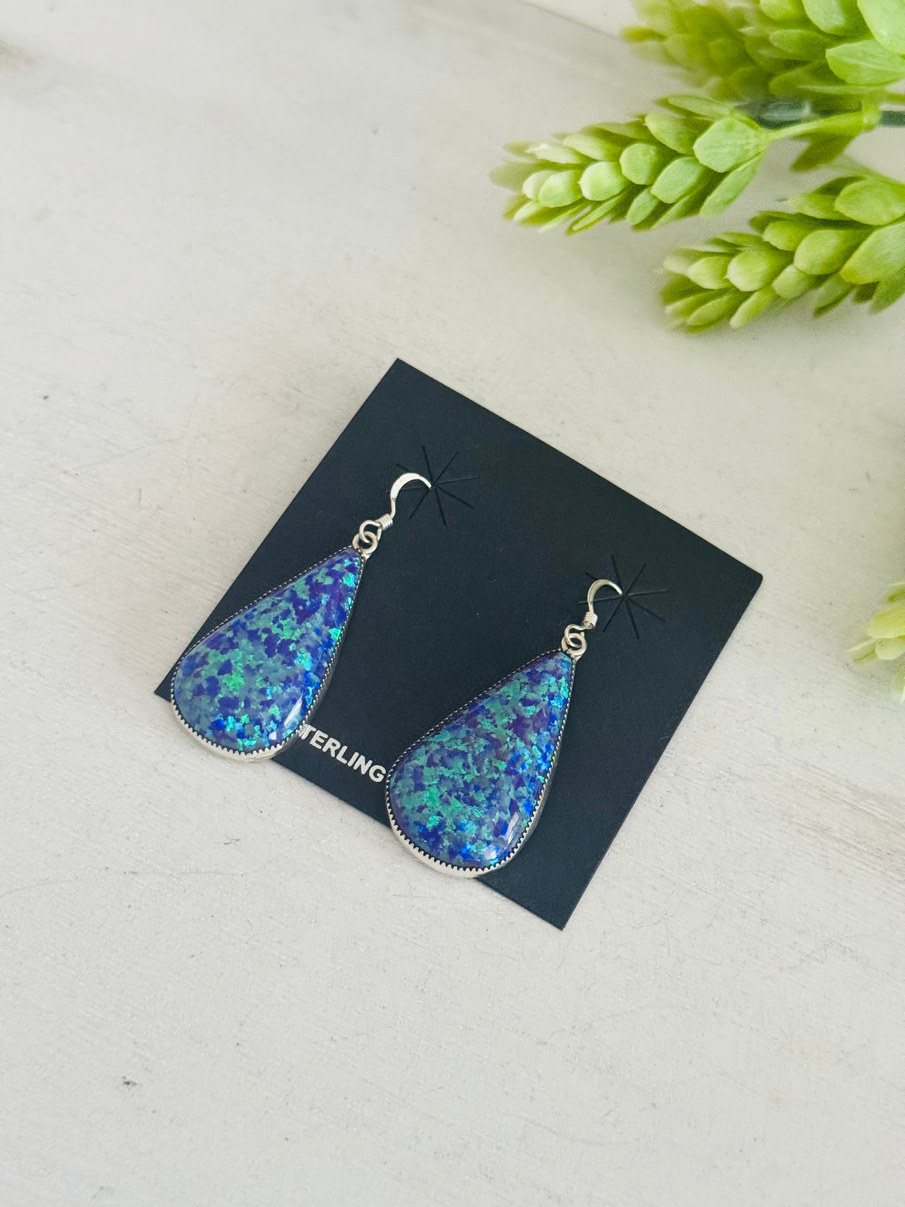 Navajo Made Opal (Man Made) & Sterling Silver Dangle Earrings