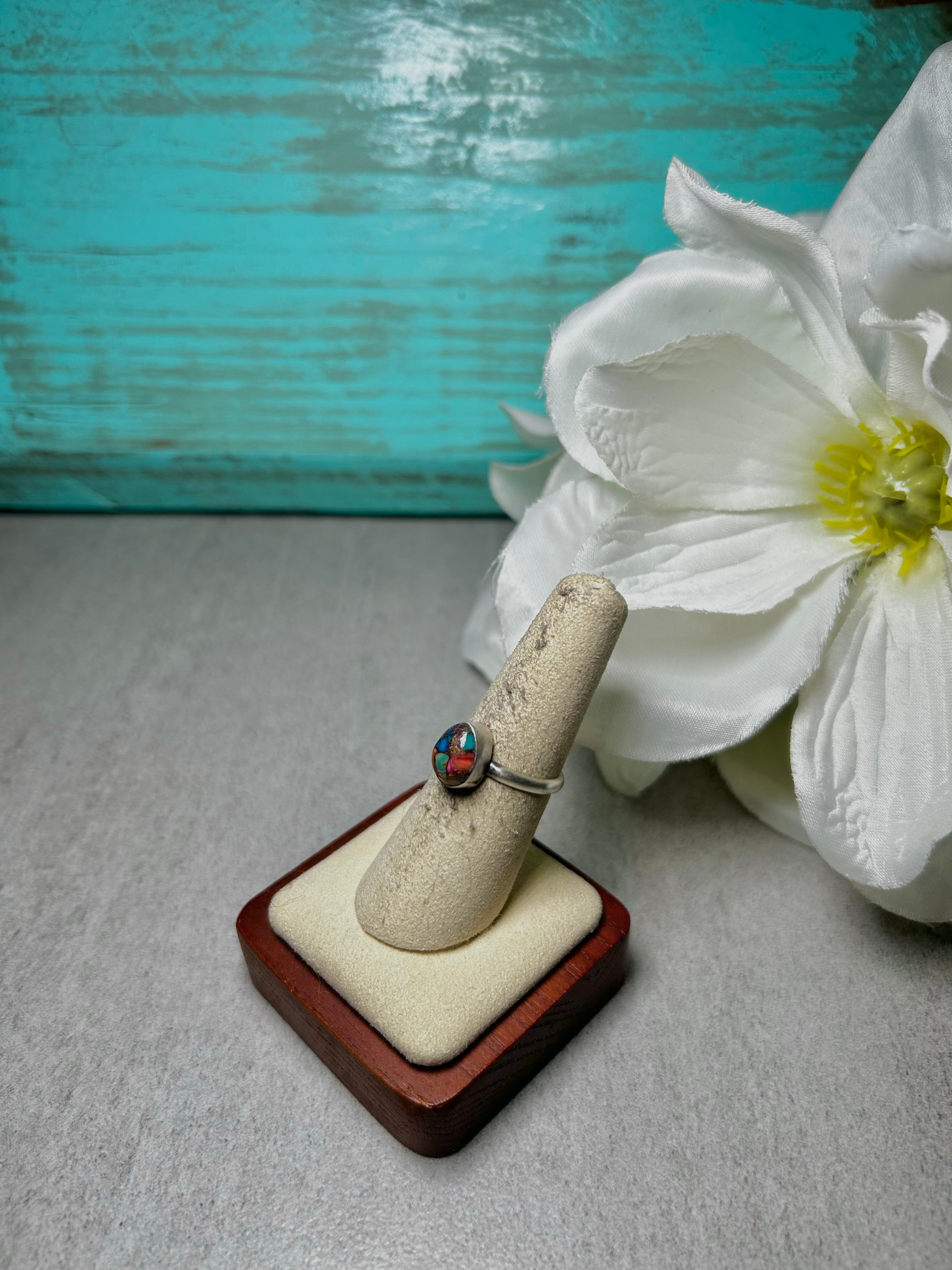Navajo Made Mohave Turquoise & Sterling Silver Ring Size 6.75