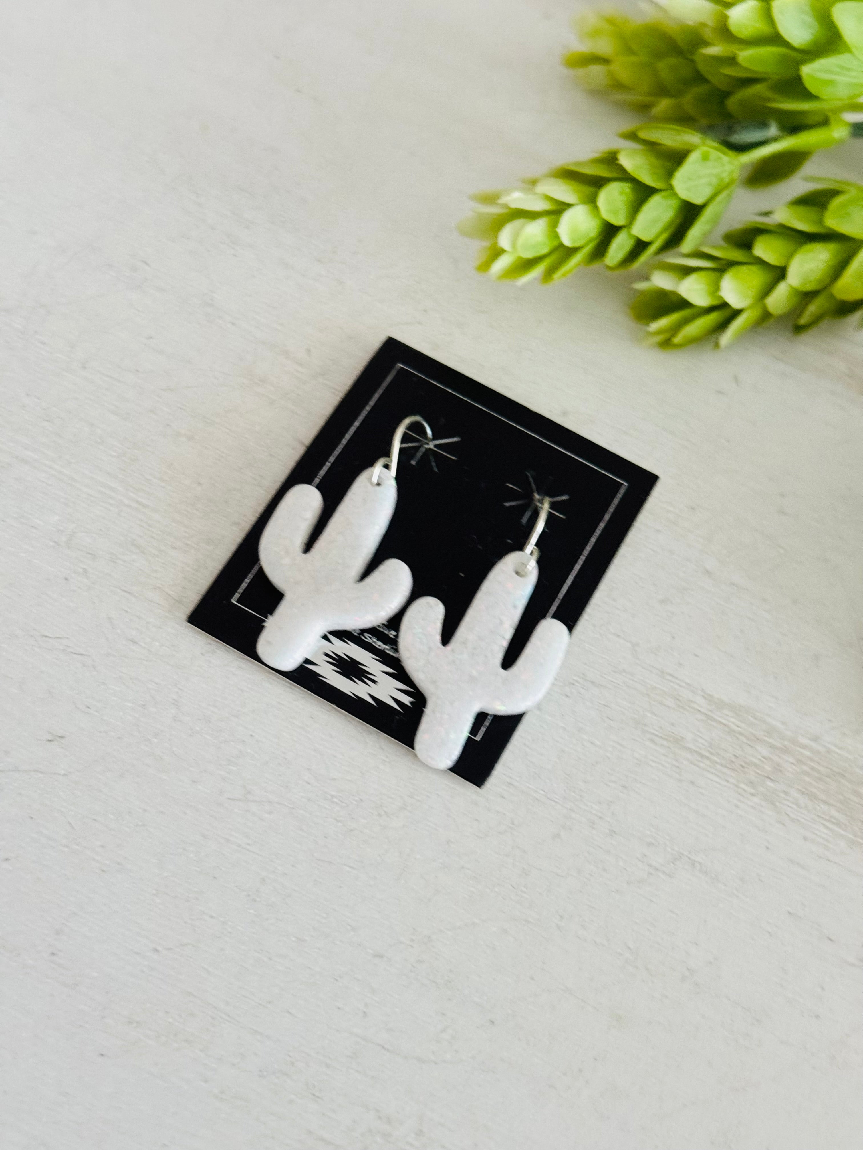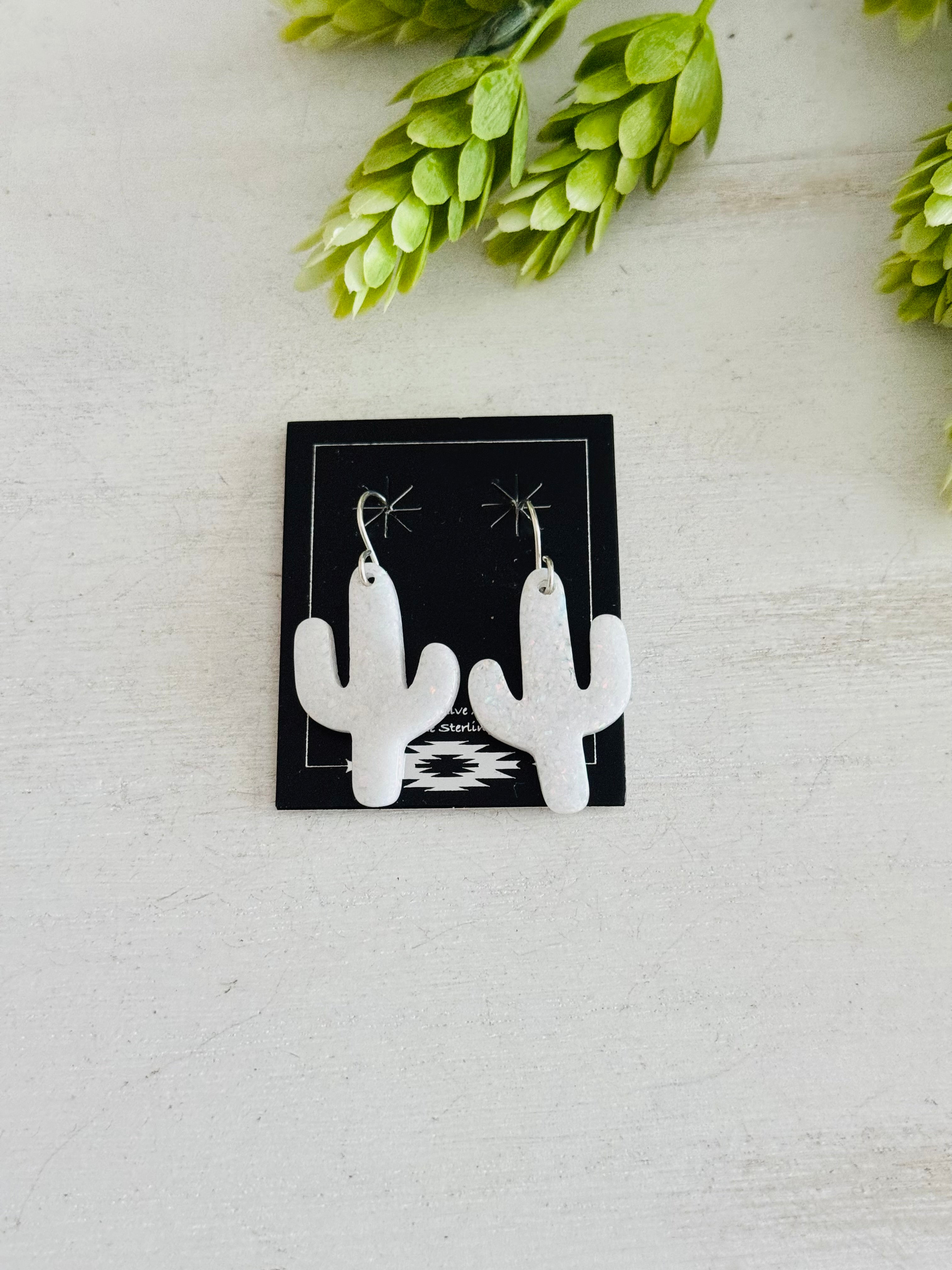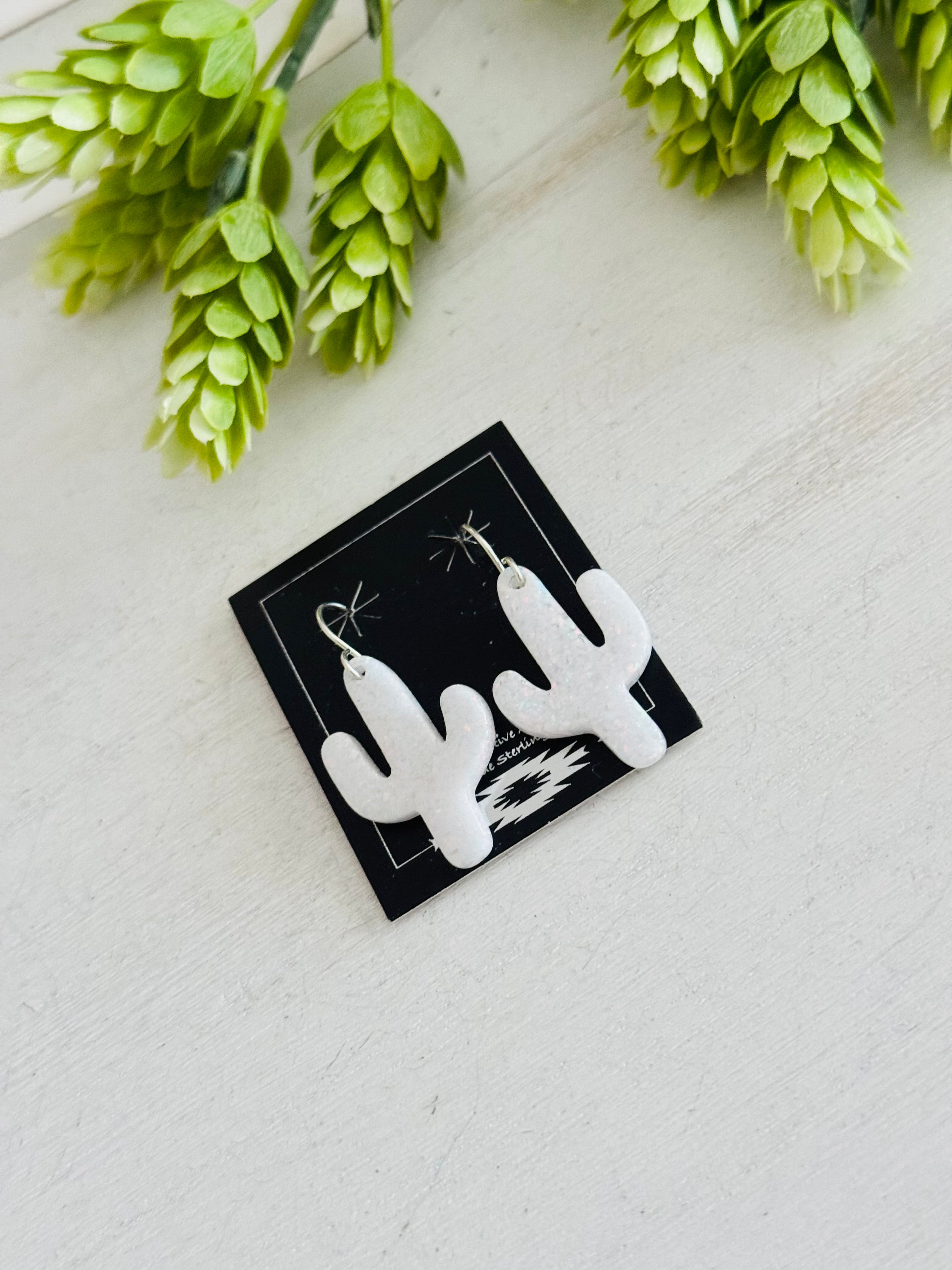 Navajo Made Opal & Sterling Silver Slab Cactus Dangle Earrings