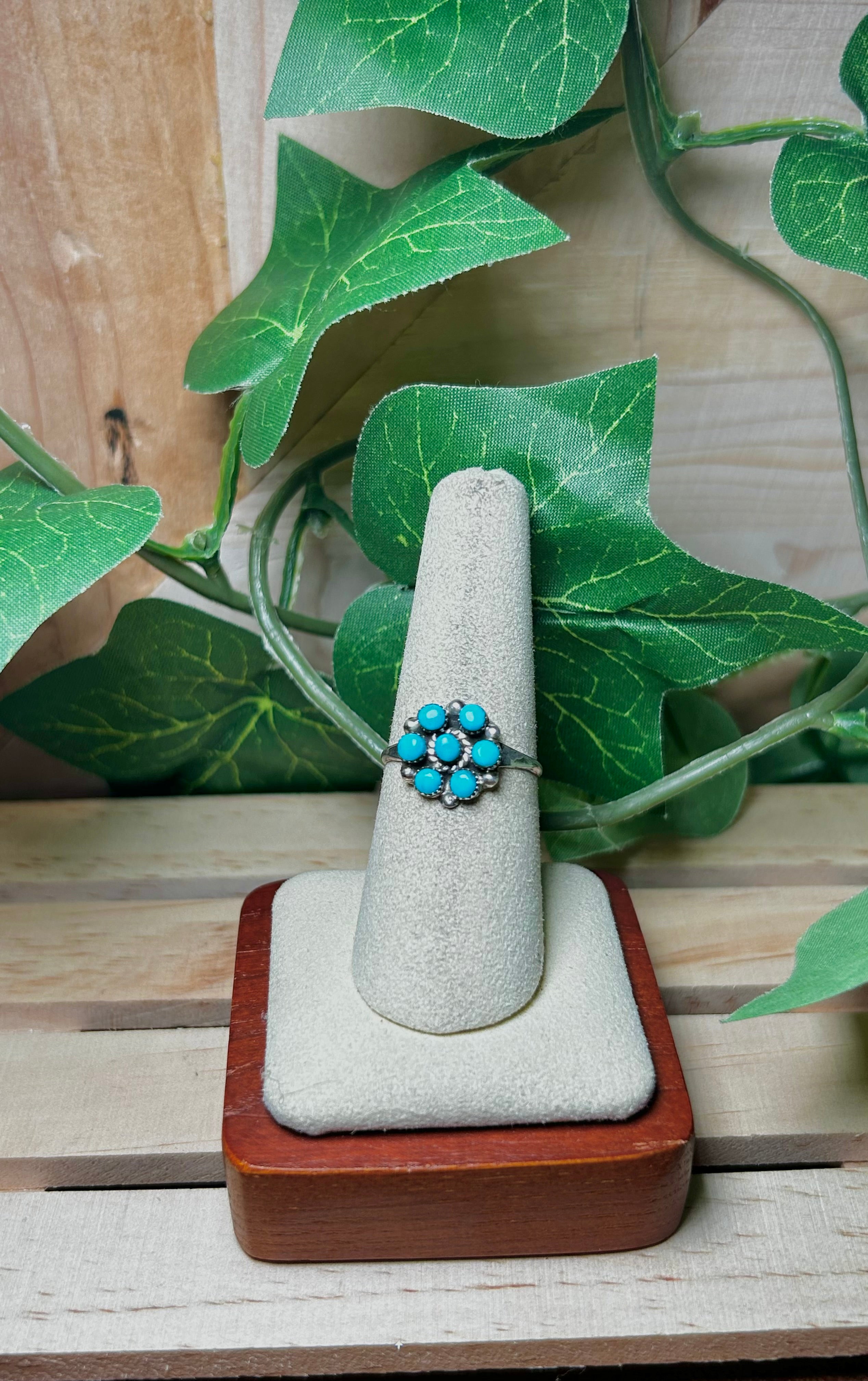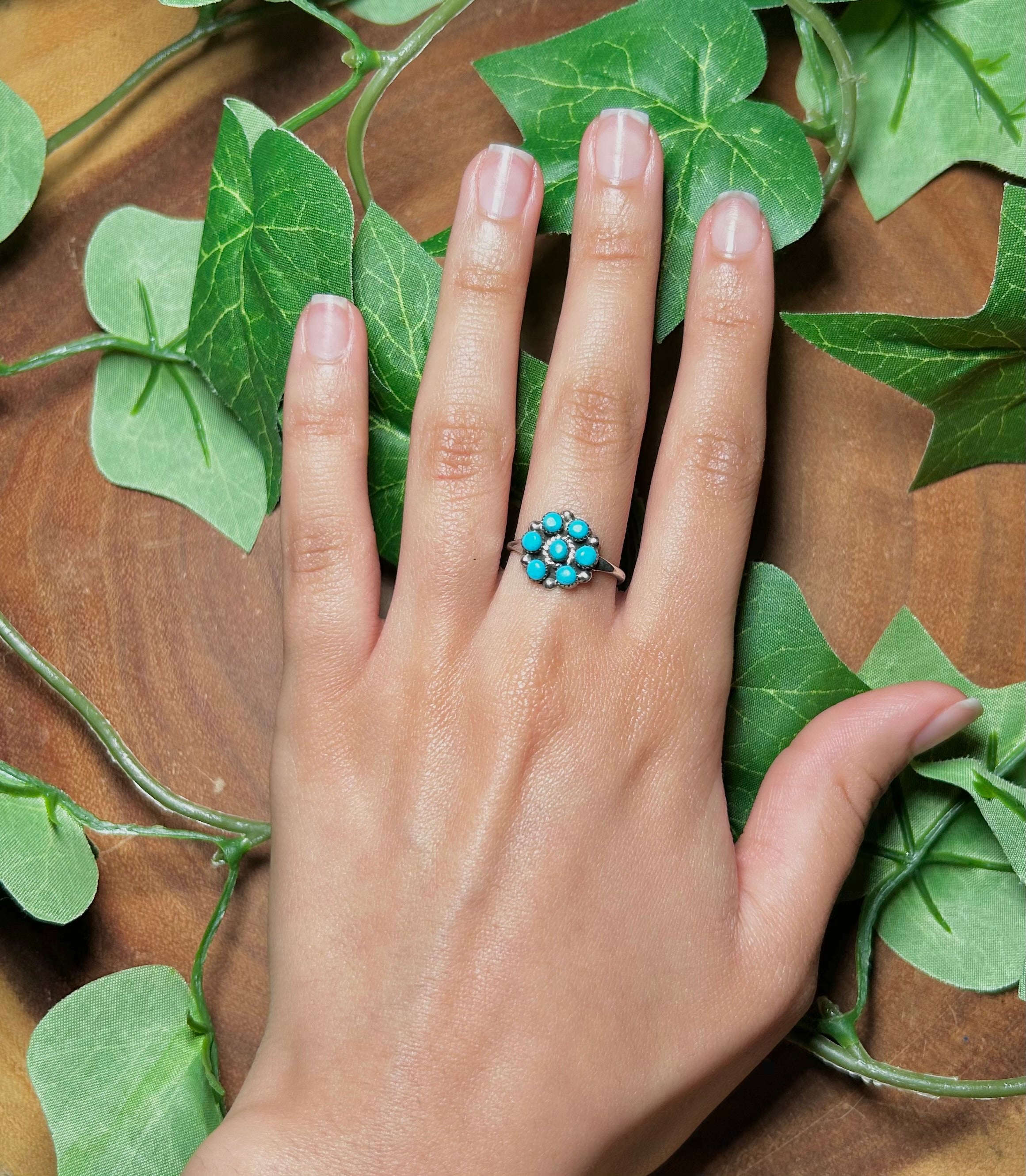 Zuni Made Kingman Turquoise & Sterling Sliver Cluster Ring