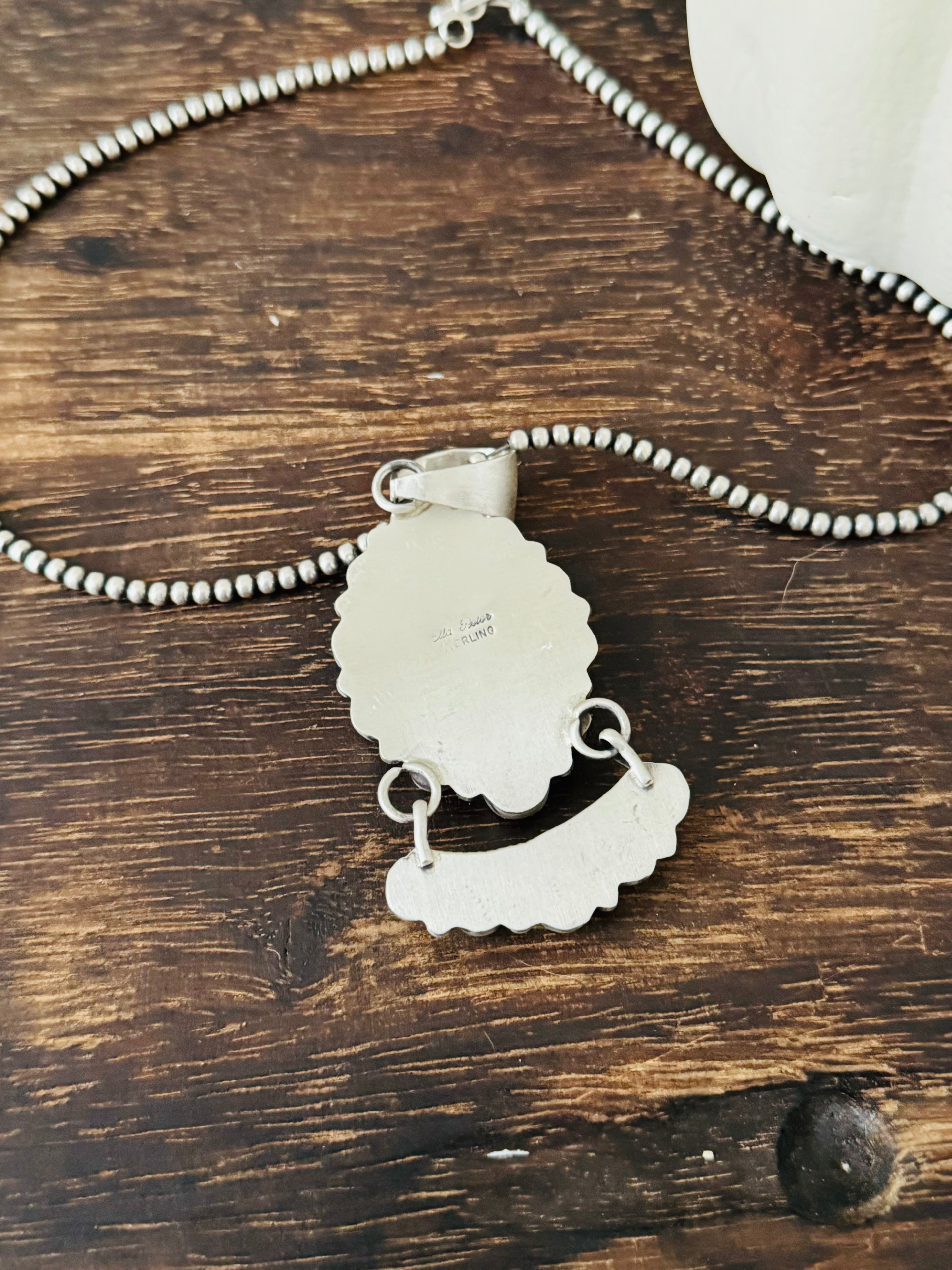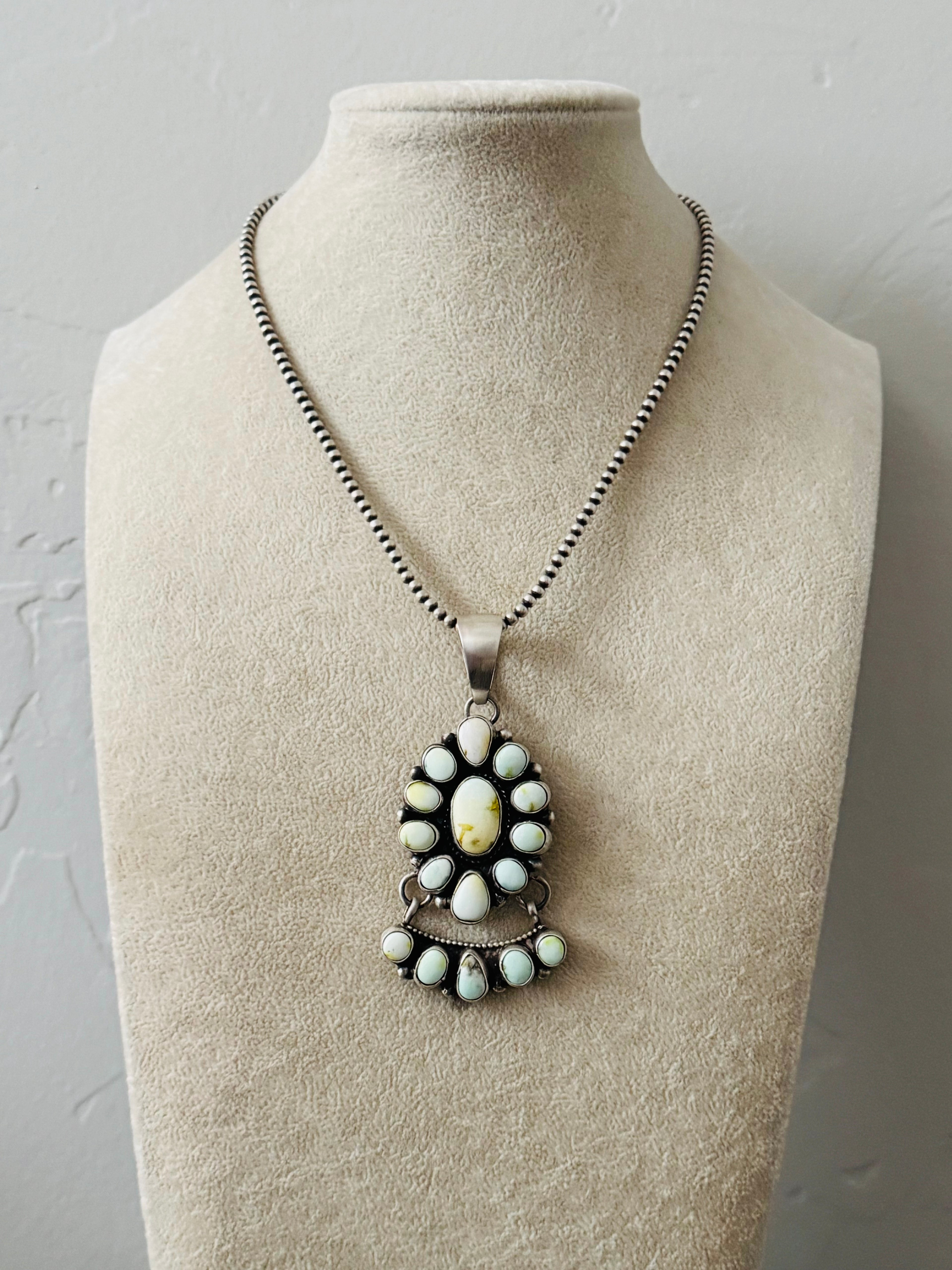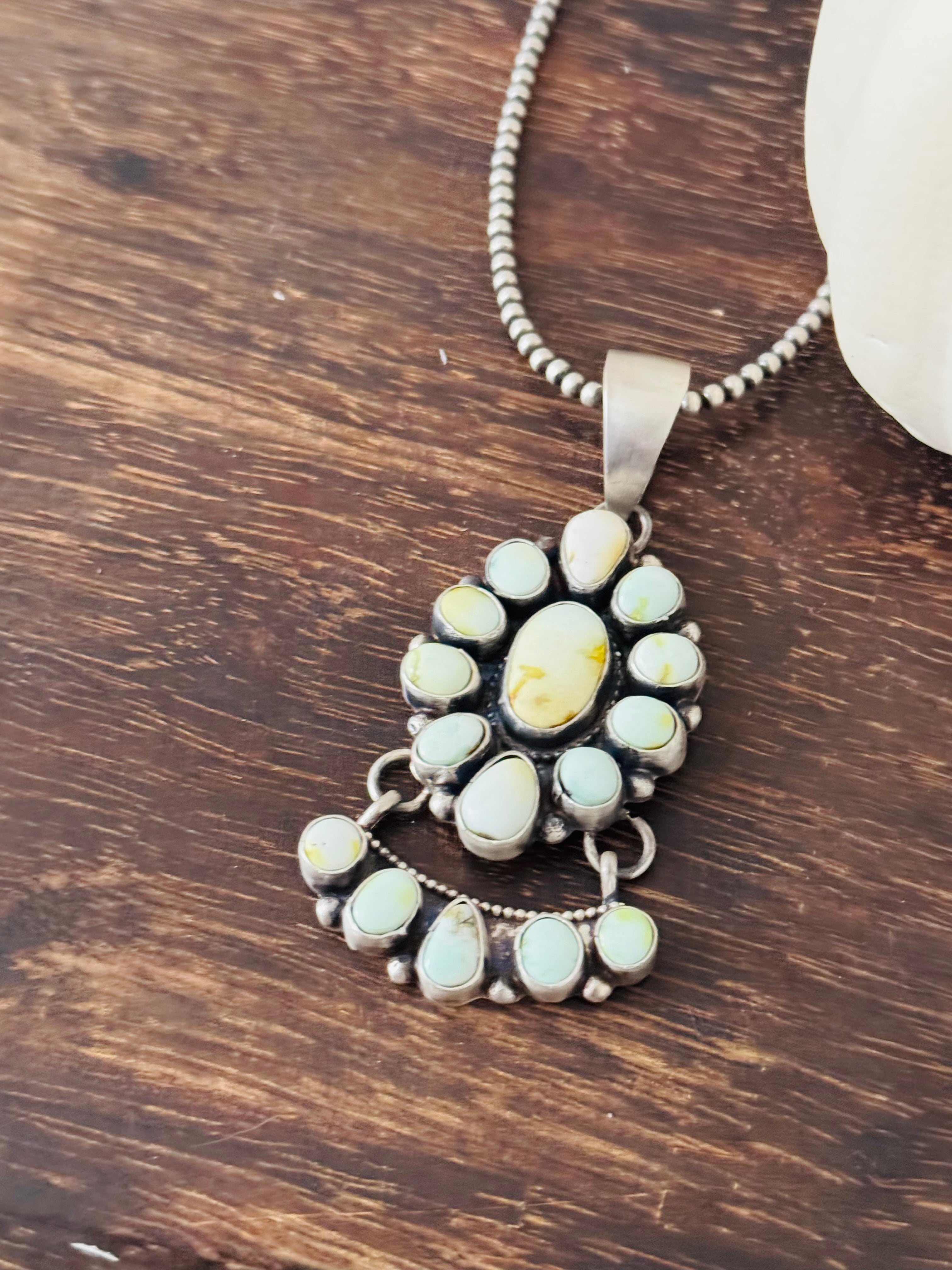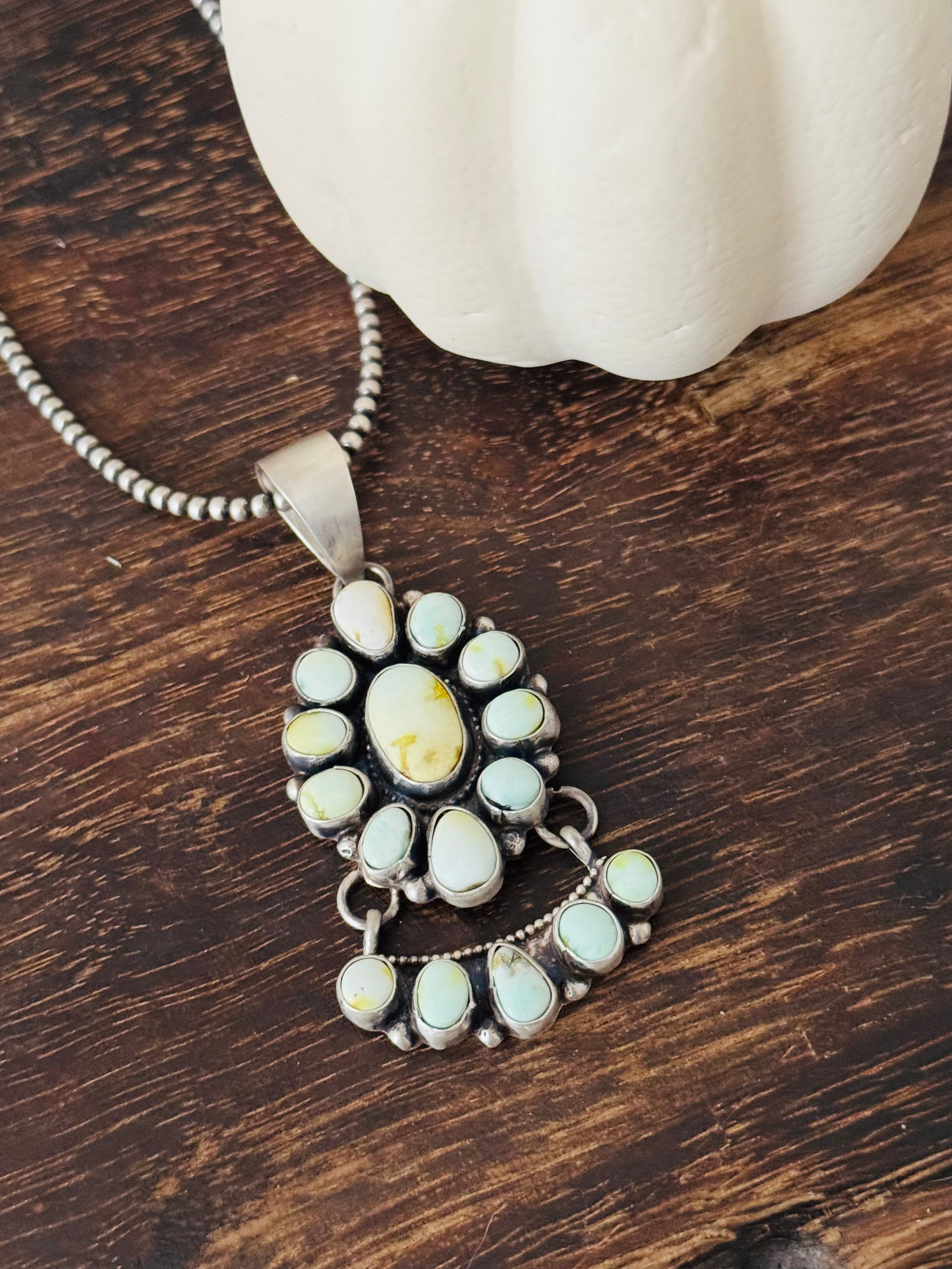 Ella Peters Palomino Variscite & Sterling Silver Cluster Pendant. It measures 3 1/4 inches long and 1 5/8 inches wide. Pendant Only! Signed by the artist and stamped sterling silver.