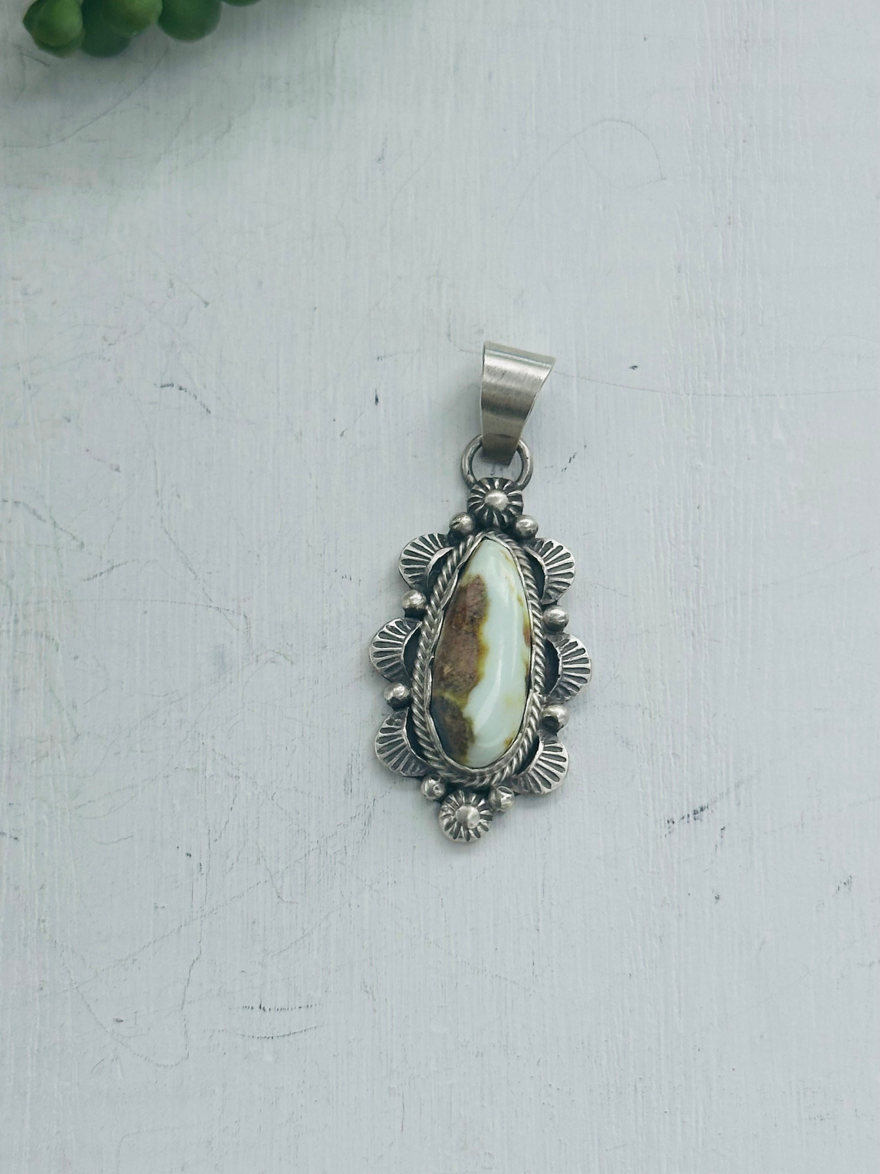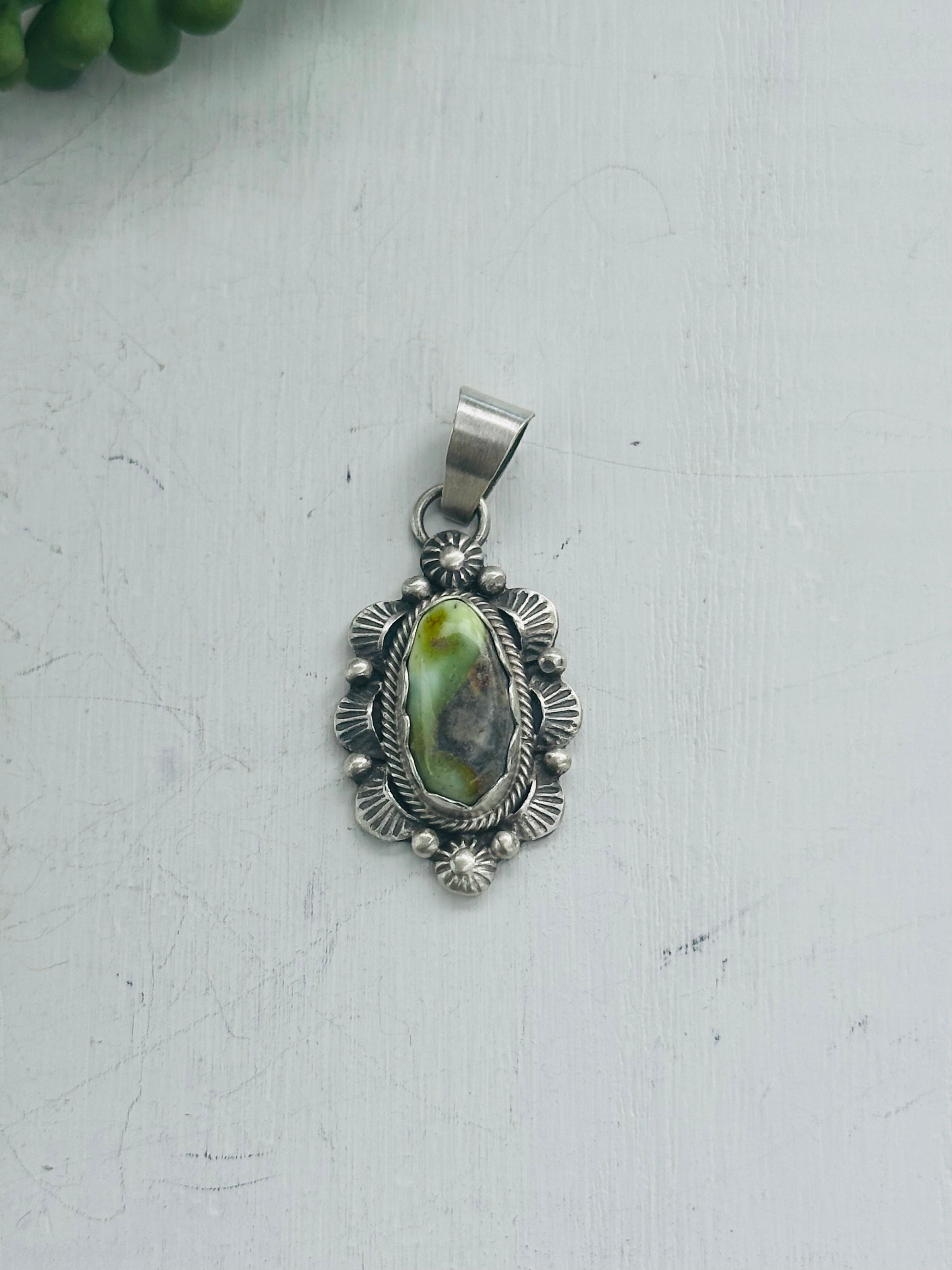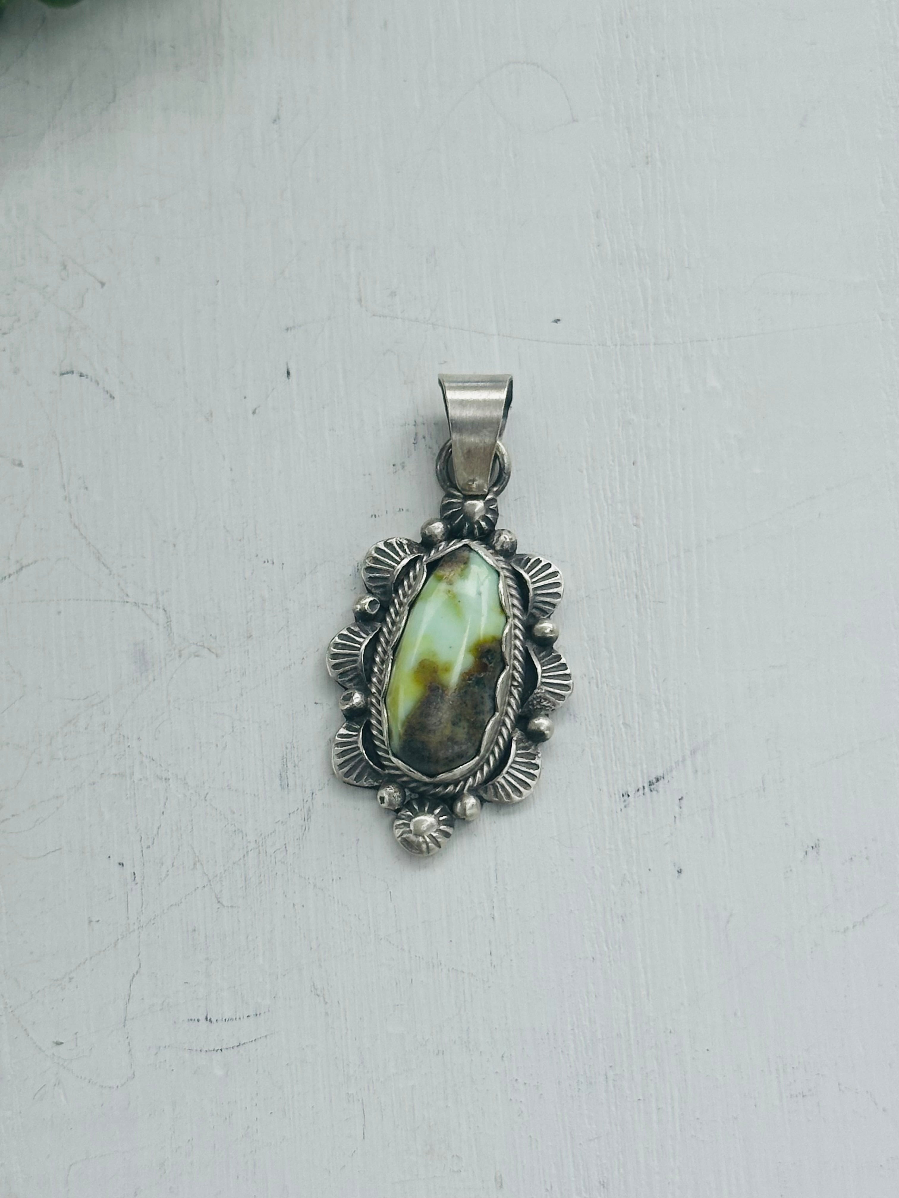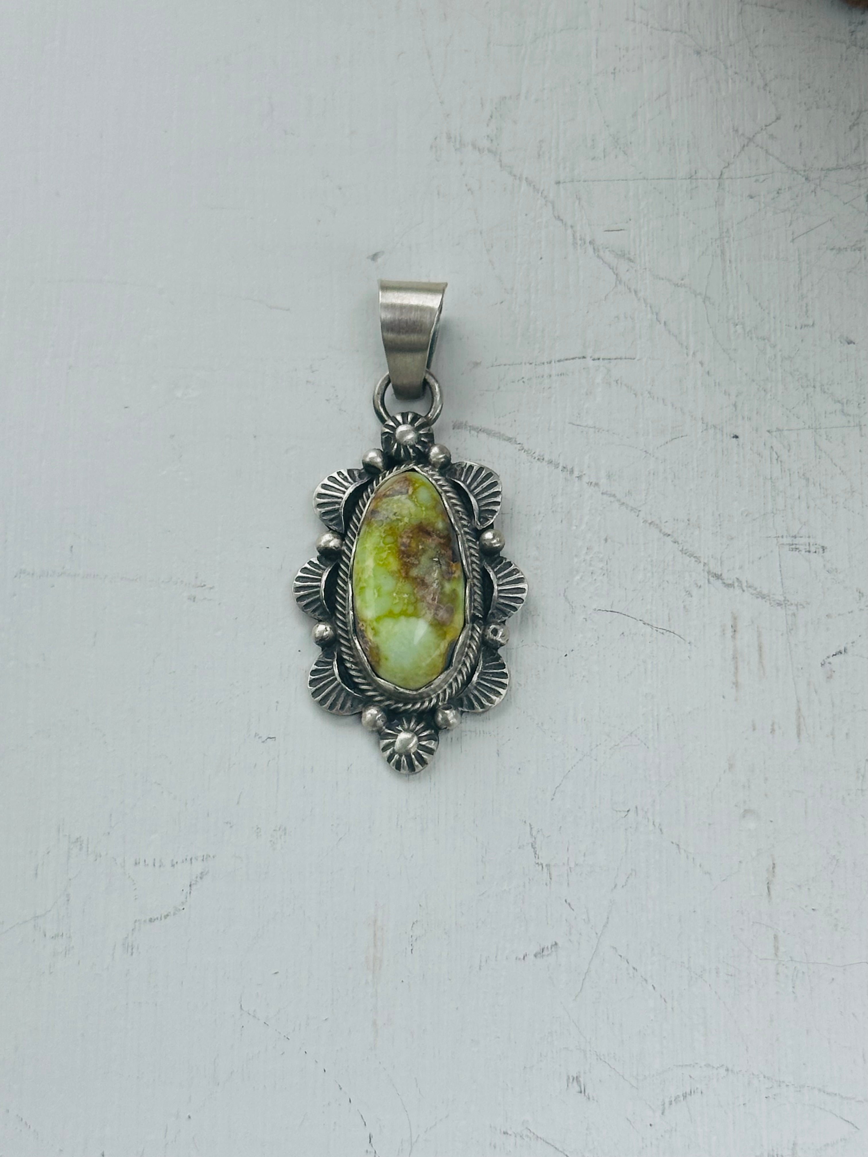 Beautiful Necklace. Ester Sam Palomino Variscite & Sterling Silver Pendant. It measures 1 5/8 inches long and 3/4 of an inch wide. Signed by the artist and stamped sterling silver.