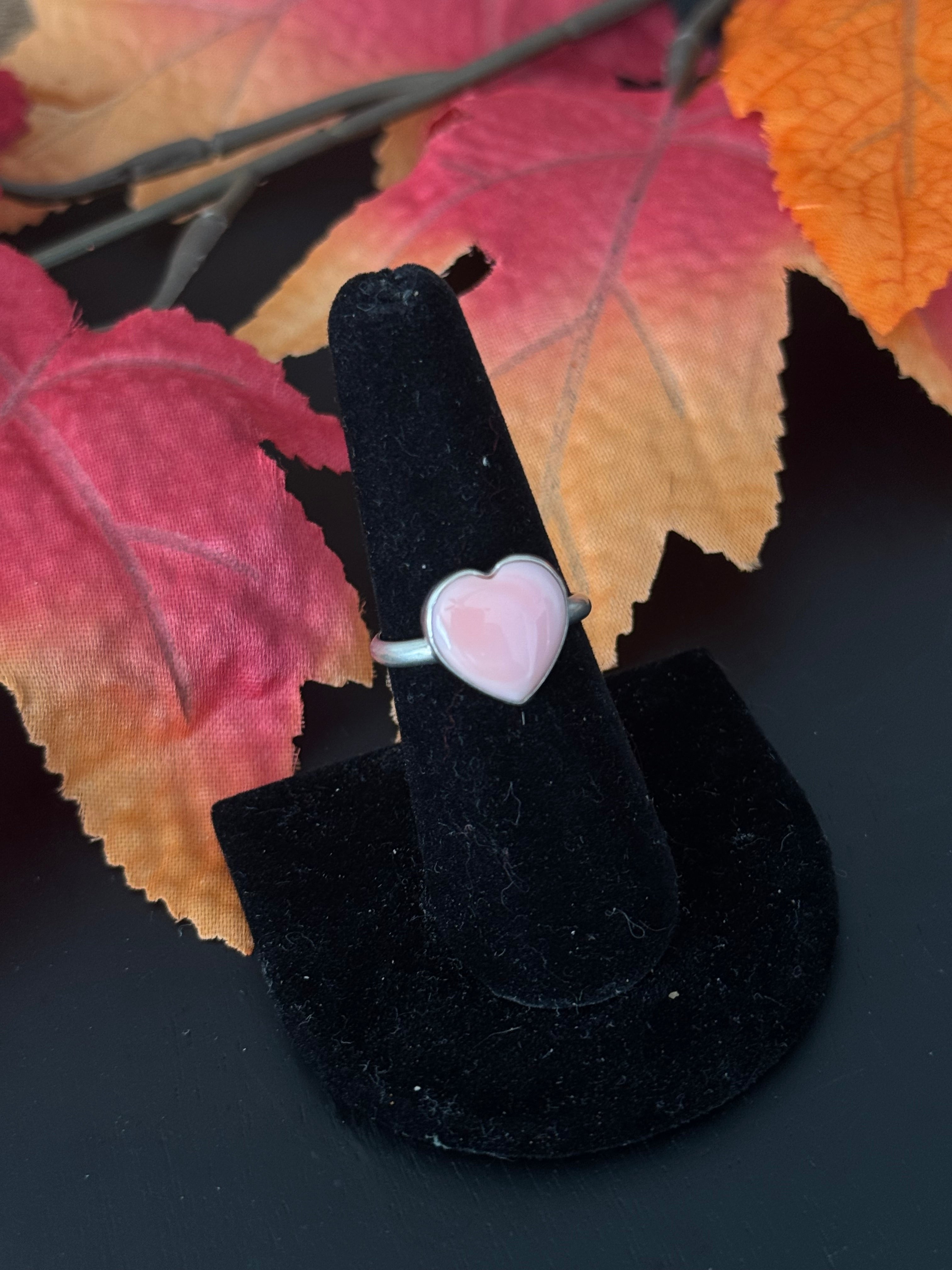 Beautiful ring. Navajo Made Pink Conch & Sterling Silver Adjustable Heart Ring. It measures 1/2 of an inch round. Stamped sterling silver and signed. Stones will differ due to natural stones.