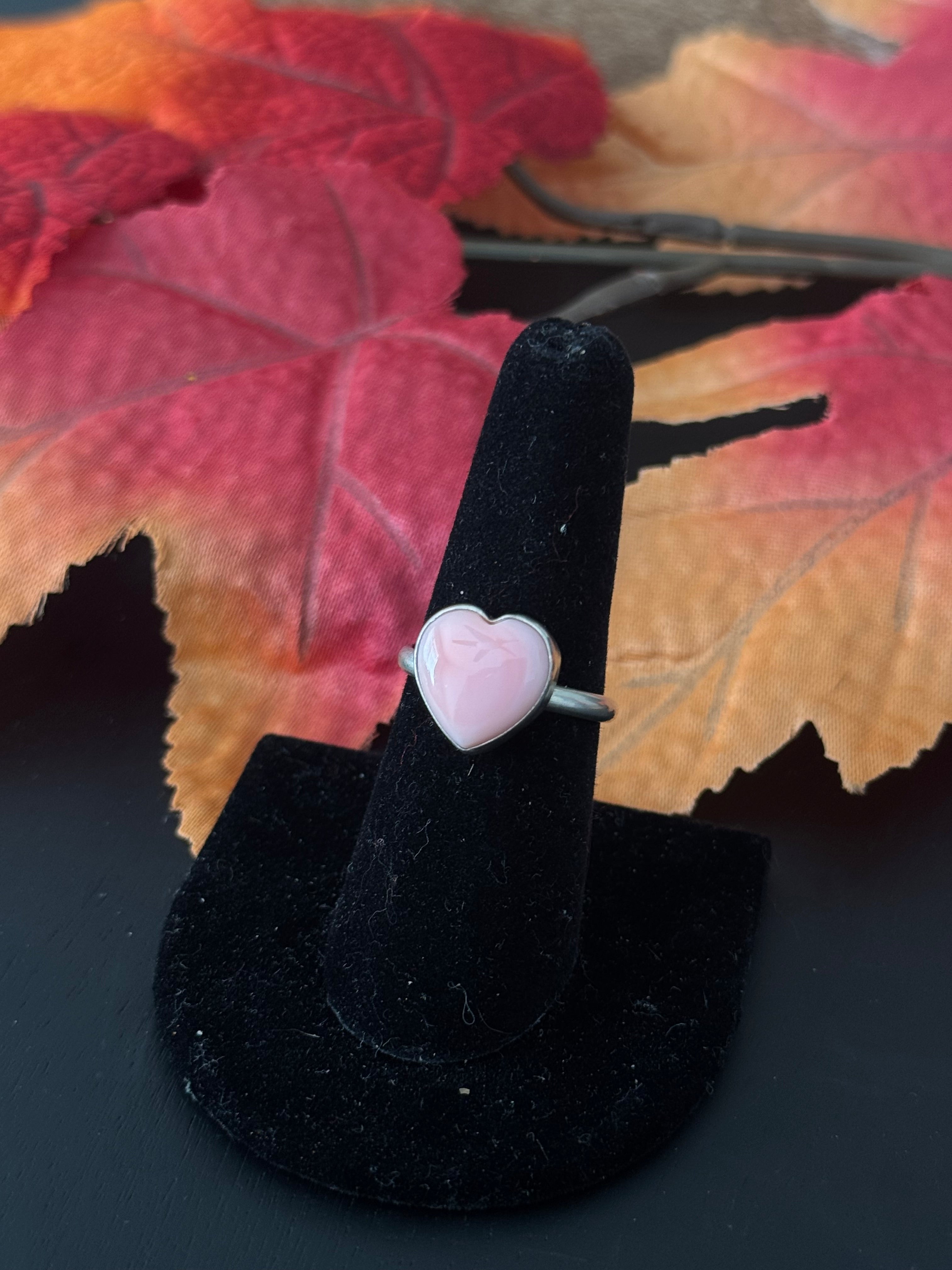 Navajo Made Pink Conch & Sterling Silver Adjustable Heart Ring
