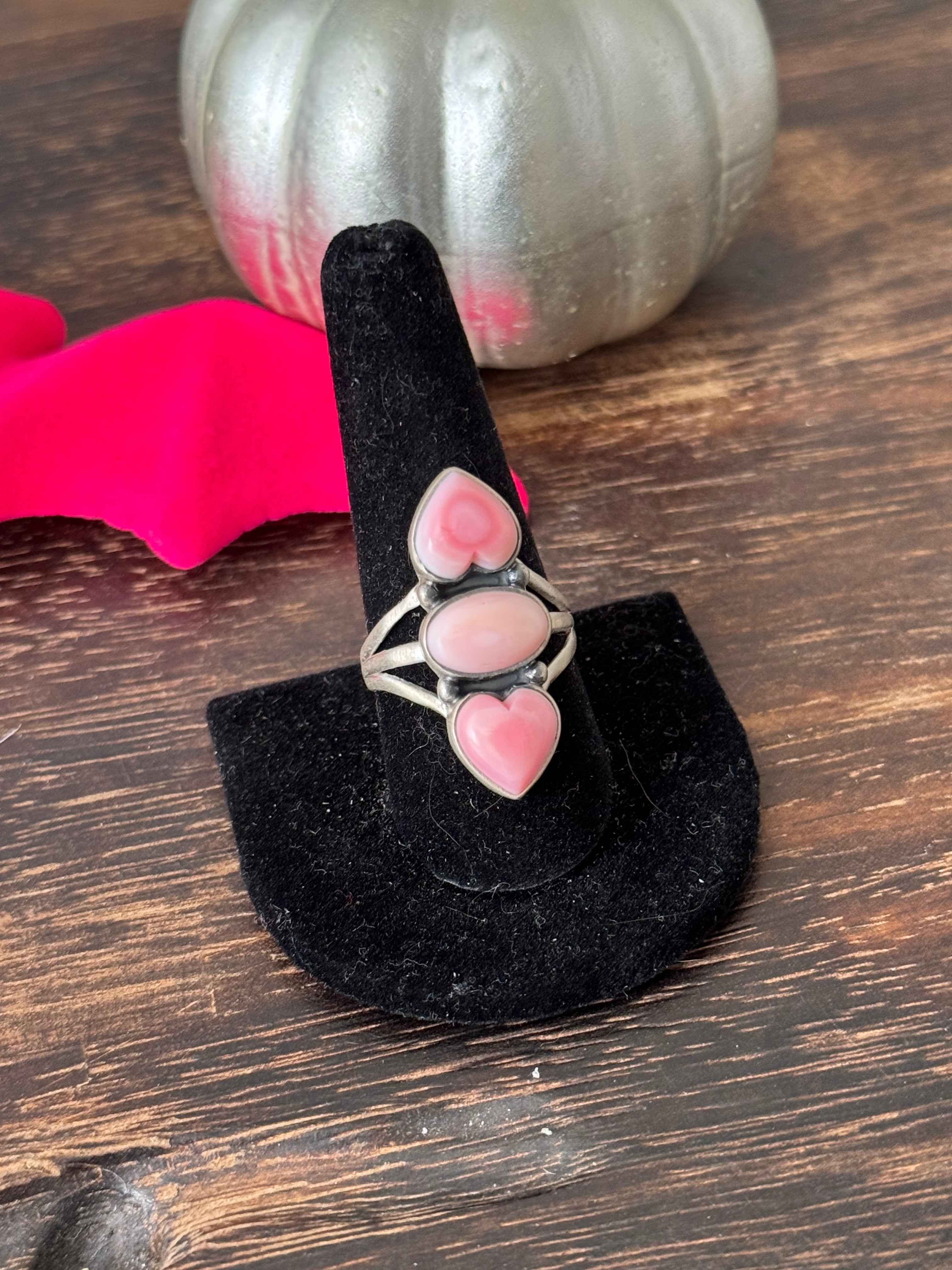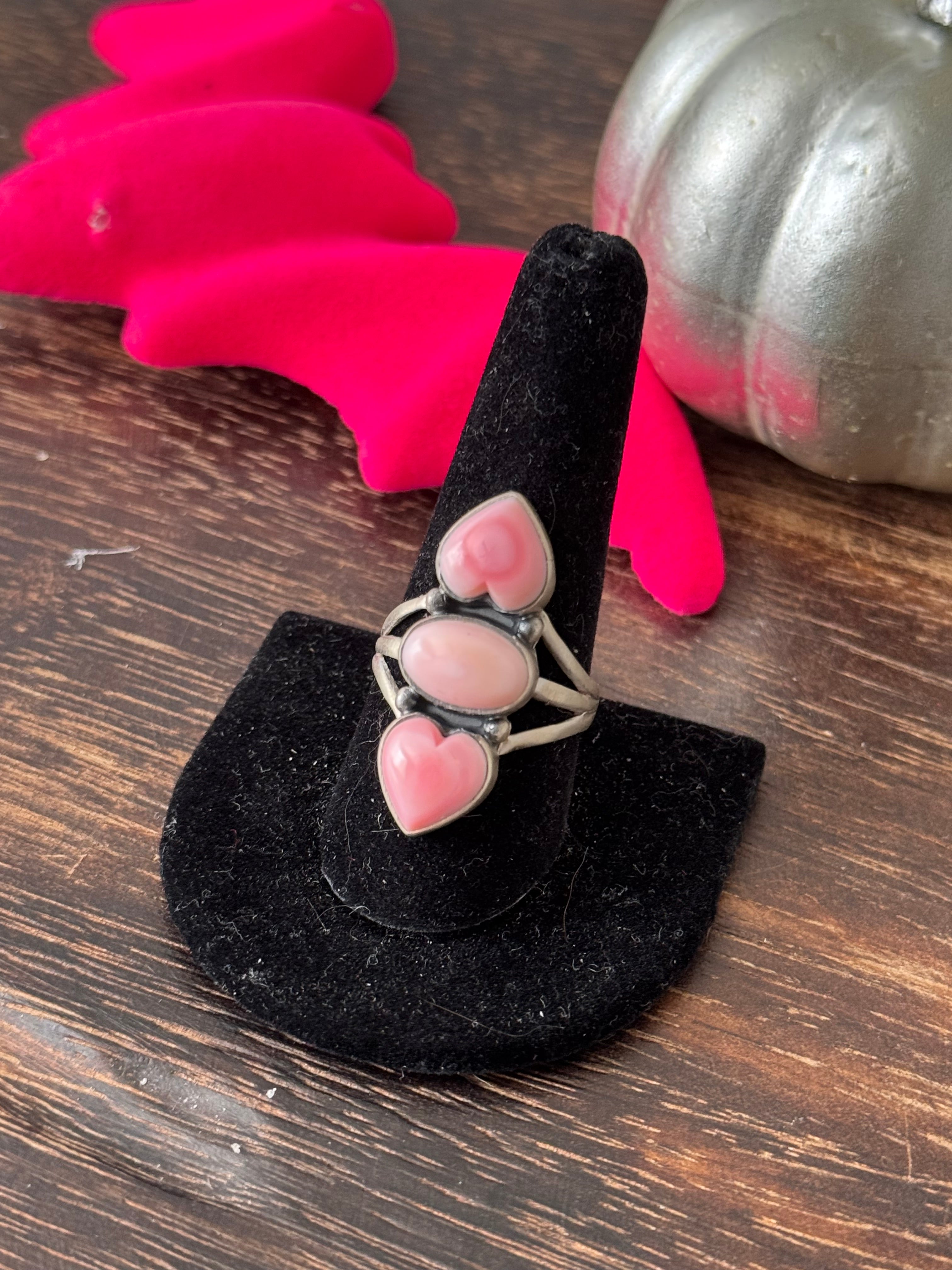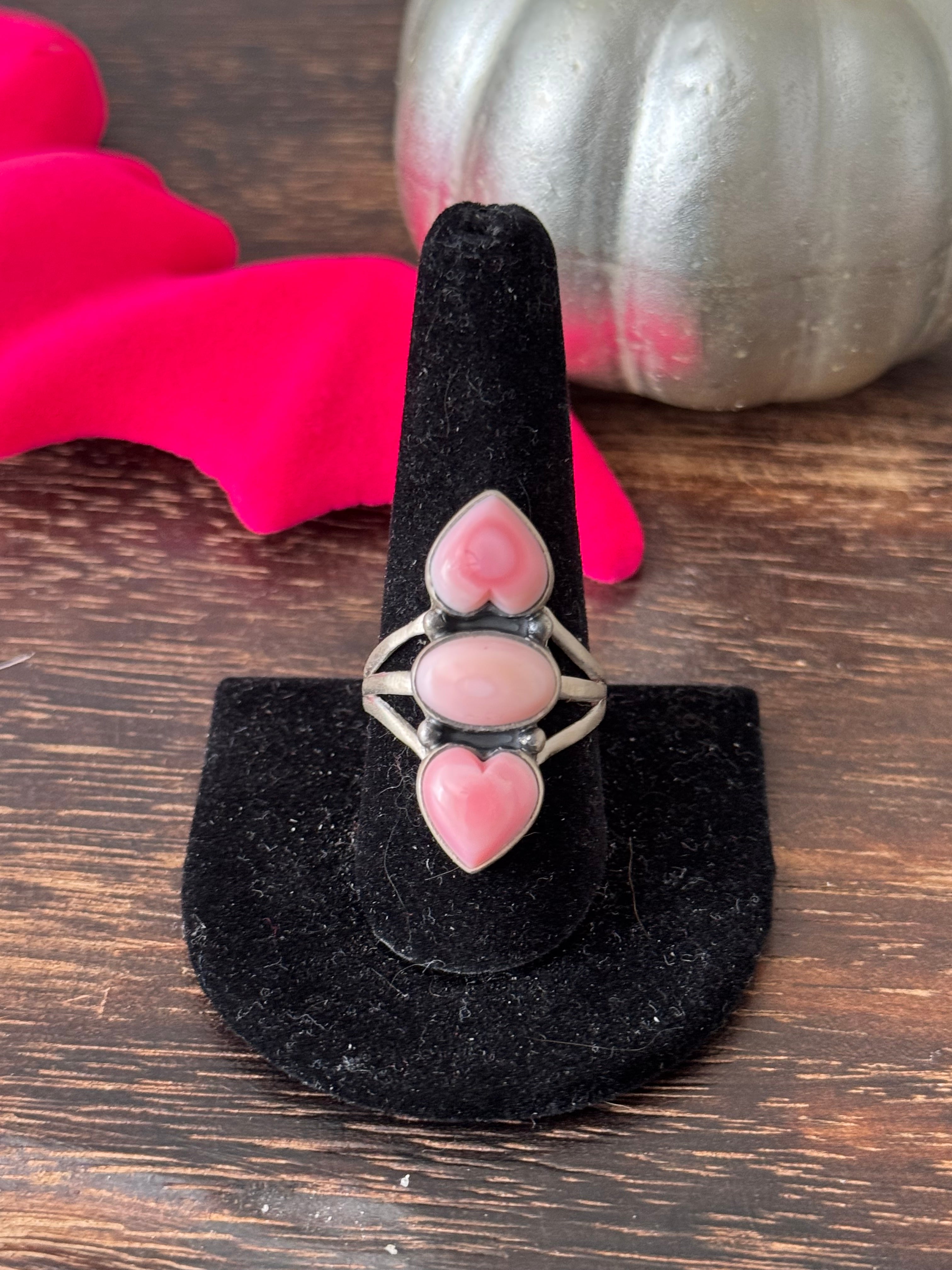 Navajo Made Pink Conch & Sterling Silver Heart Ring