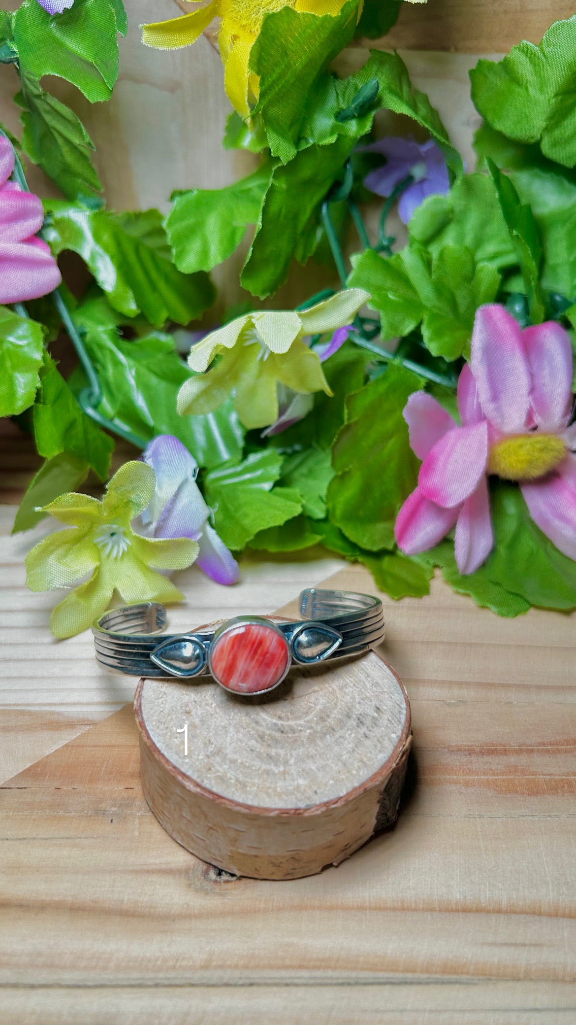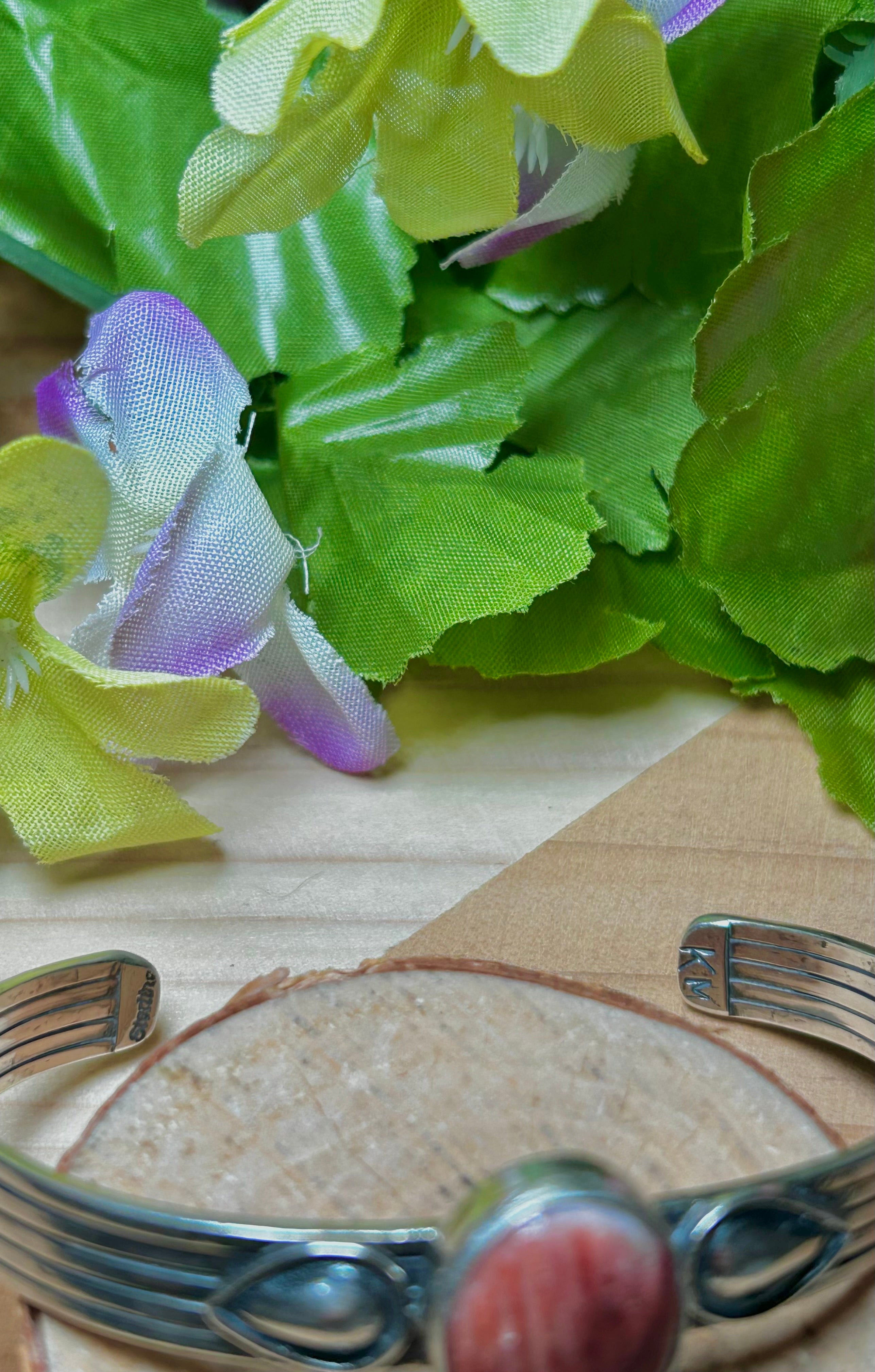 Navajo Made Spiny Oyster & Sterling Silver Cuff Bracelet