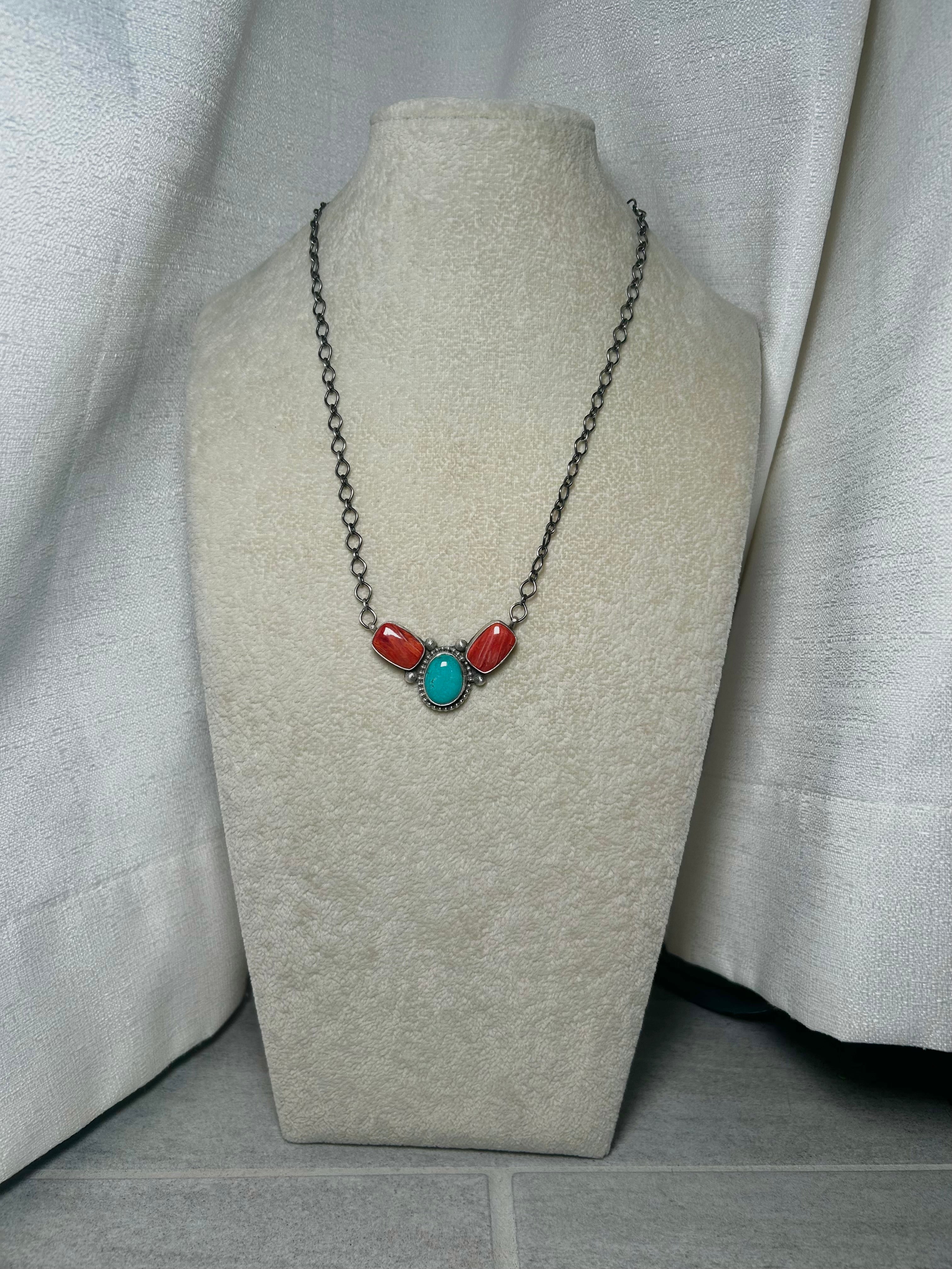 Navajo Made Multi Stone & Sterling Silver Necklace