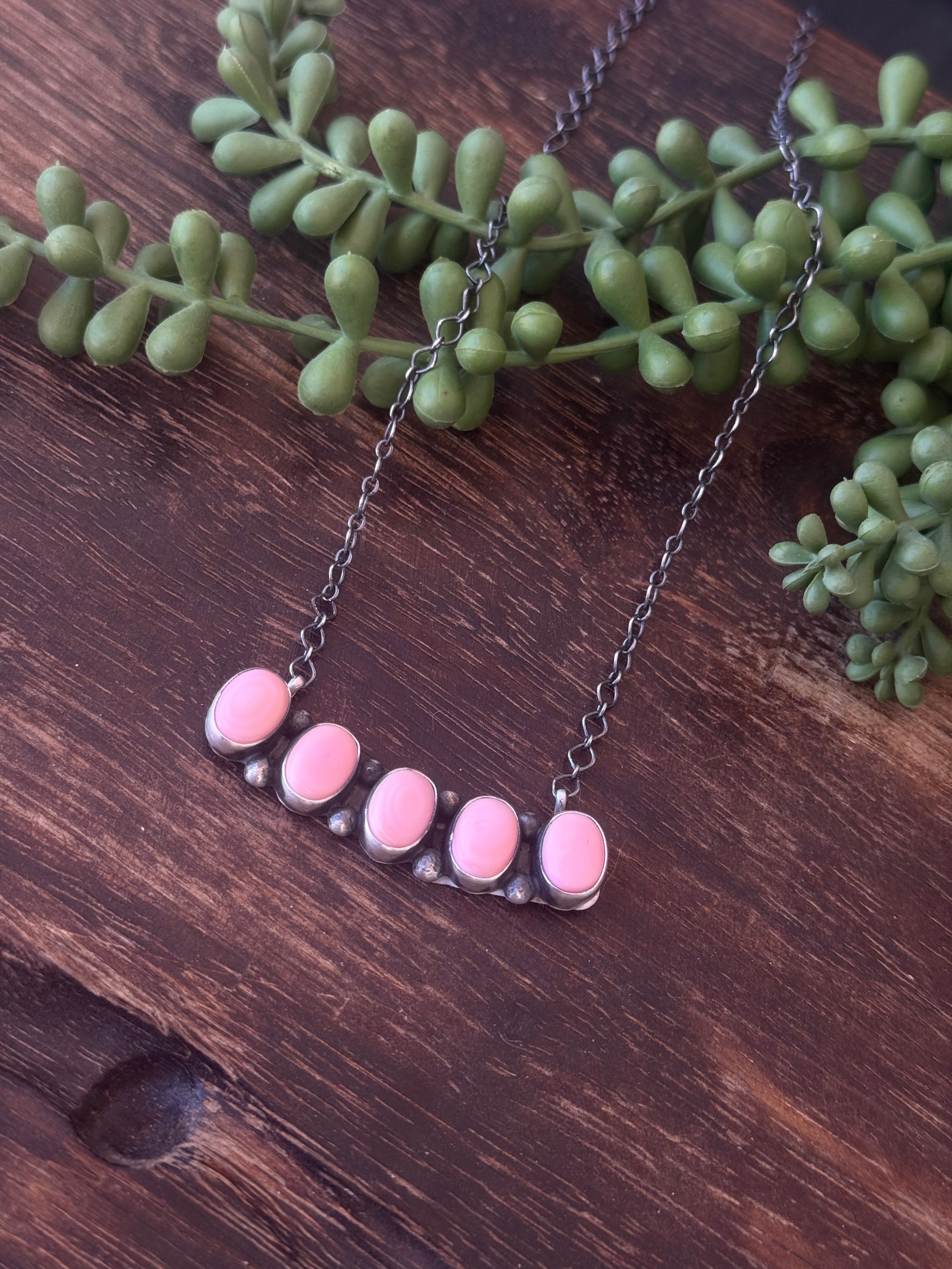 Eli Skeets Pink Conch & Sterling Silver Cluster Necklace