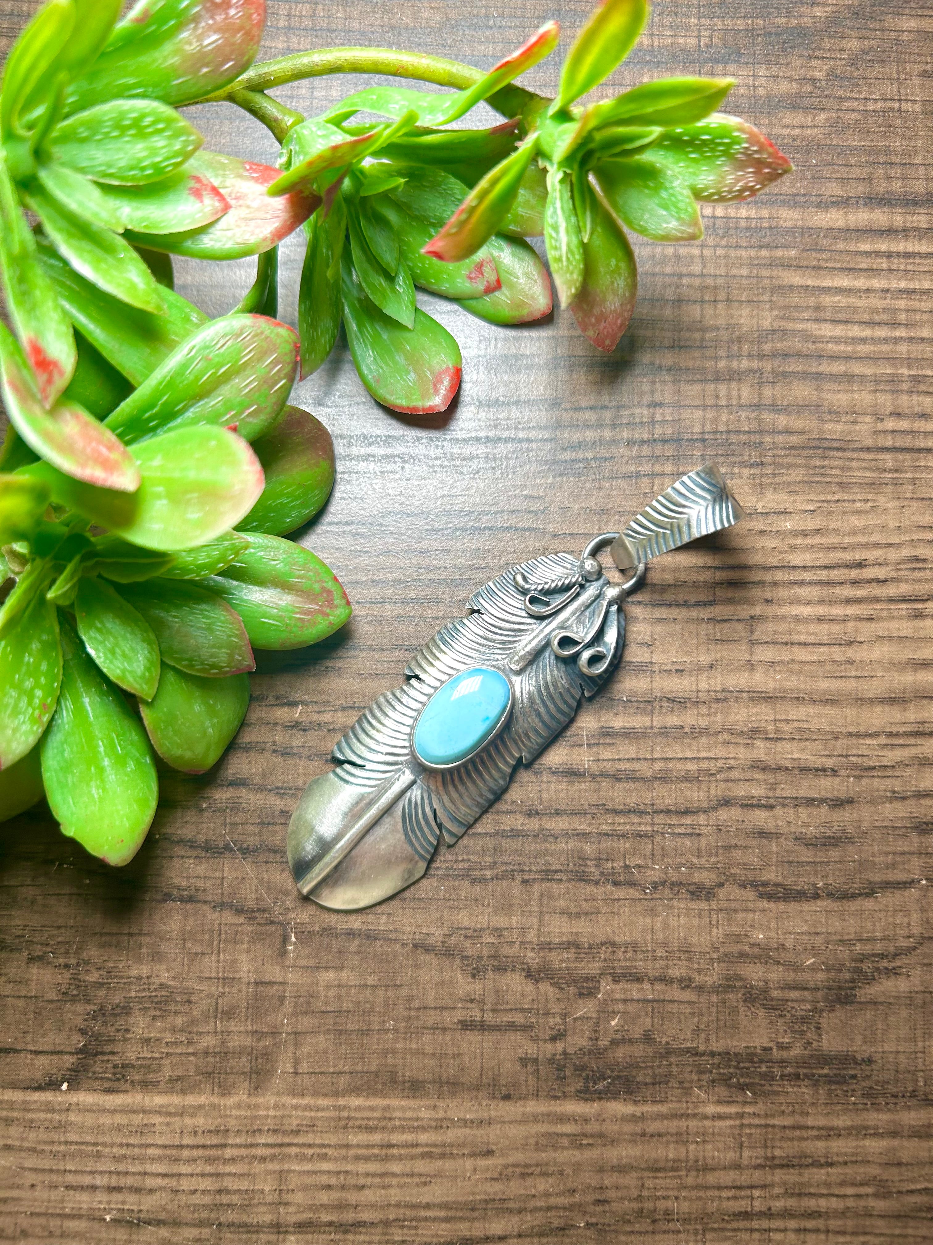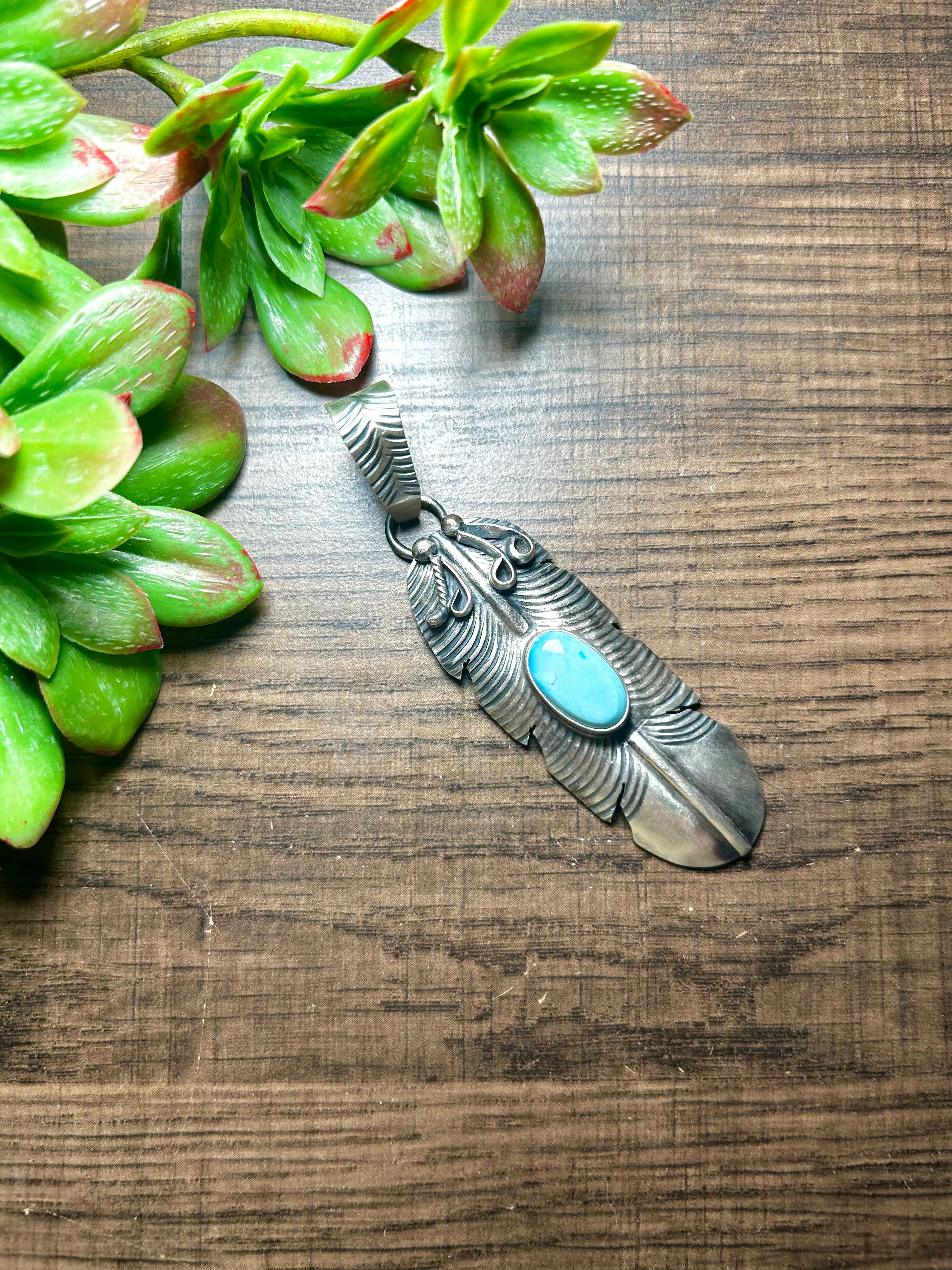 Kobe Martinez Golden Hill & Sterling Silver Pendant. It measures 3 3/8 inches long and 7/8 of an inch wide. Pendant Only! Signed by the artist and stamped sterling silver.